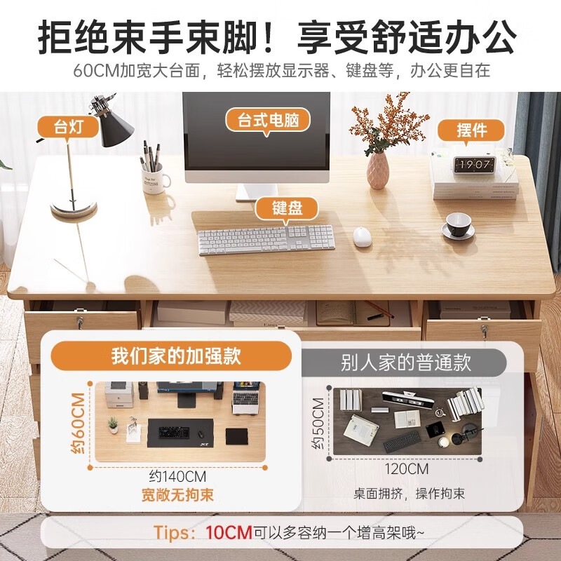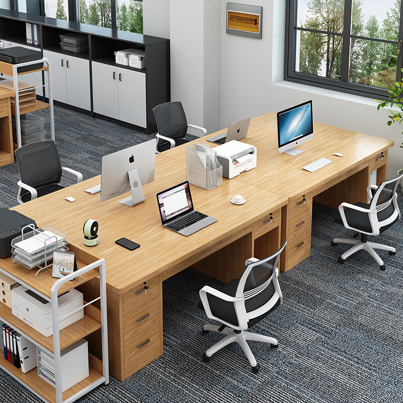 Desk staff station simple modern office desk and chair combination staff double four-person computer desk home desk five drawers and one cabinet | Pastoral oak color 140cm Take a photo of the self-assembly - send drawings and tools