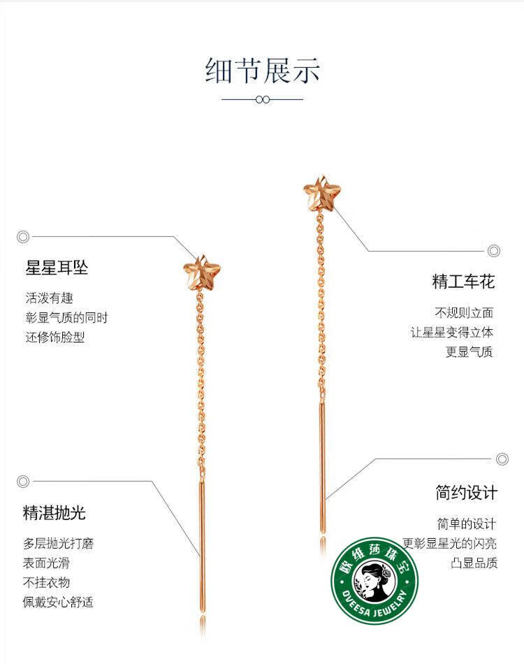 Gold stone ear wire color gold 18k gold 18K rose gold temperament K gold star yellow l gold earrings earrings earrings for women exquisite rose gold ear wire pair