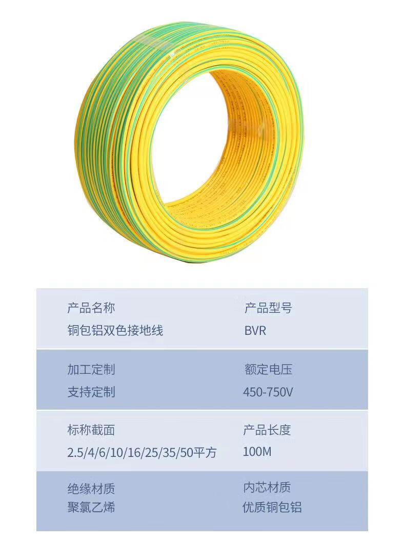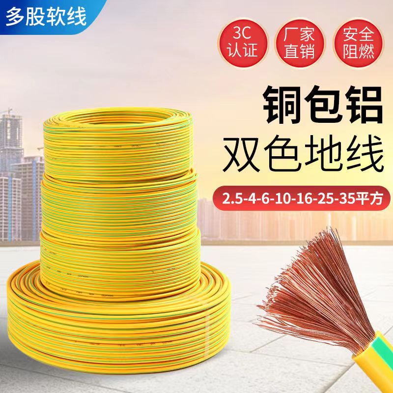 黄绿双色接地线多股软电线铜包铝芯2.5-95平方双色接地线接地线 2.5平方毫米 100m