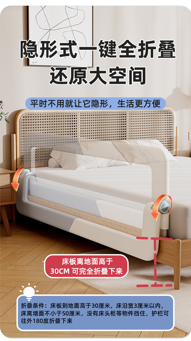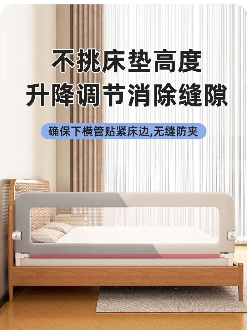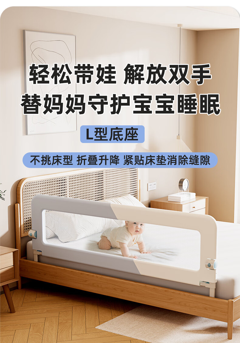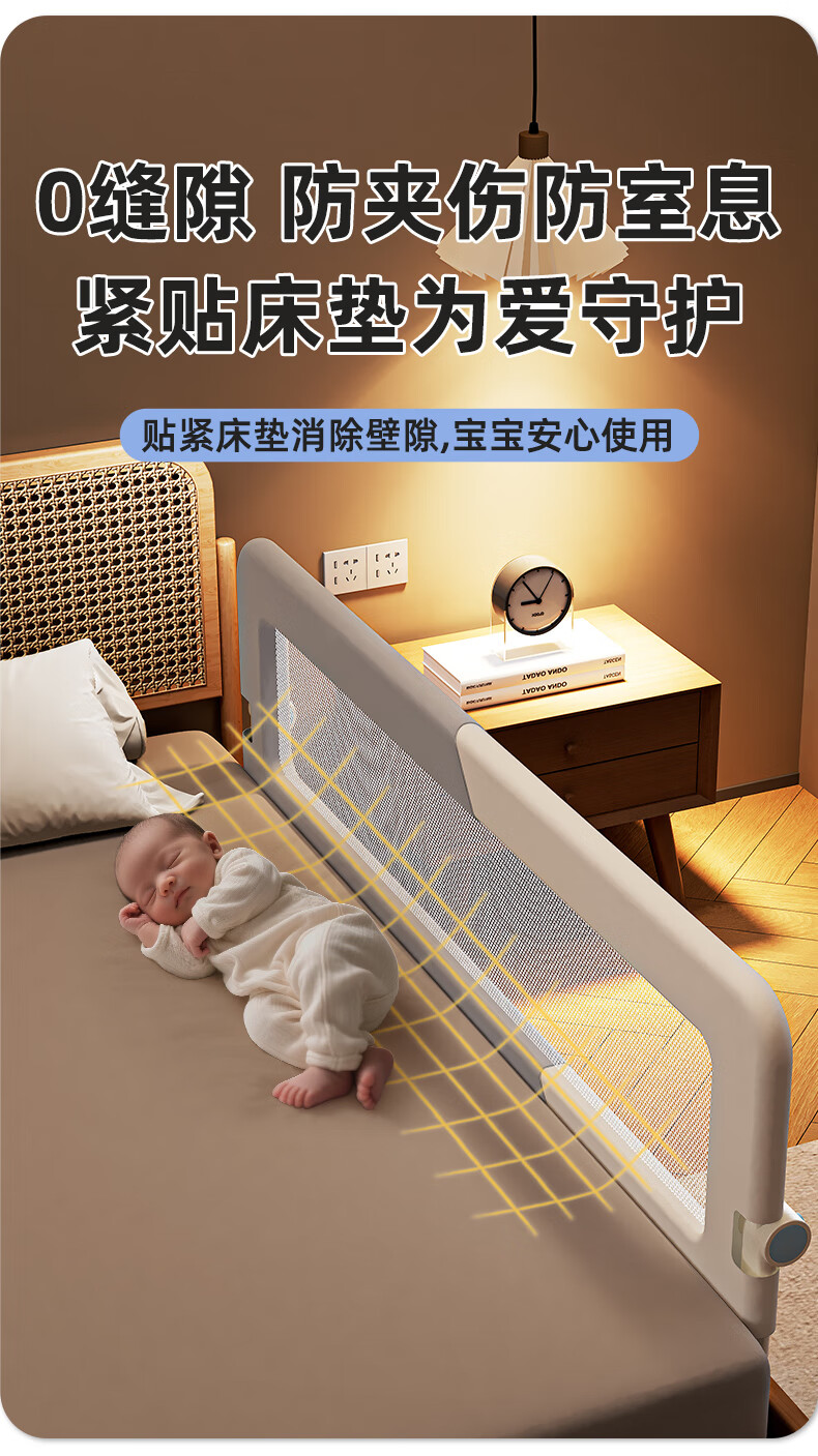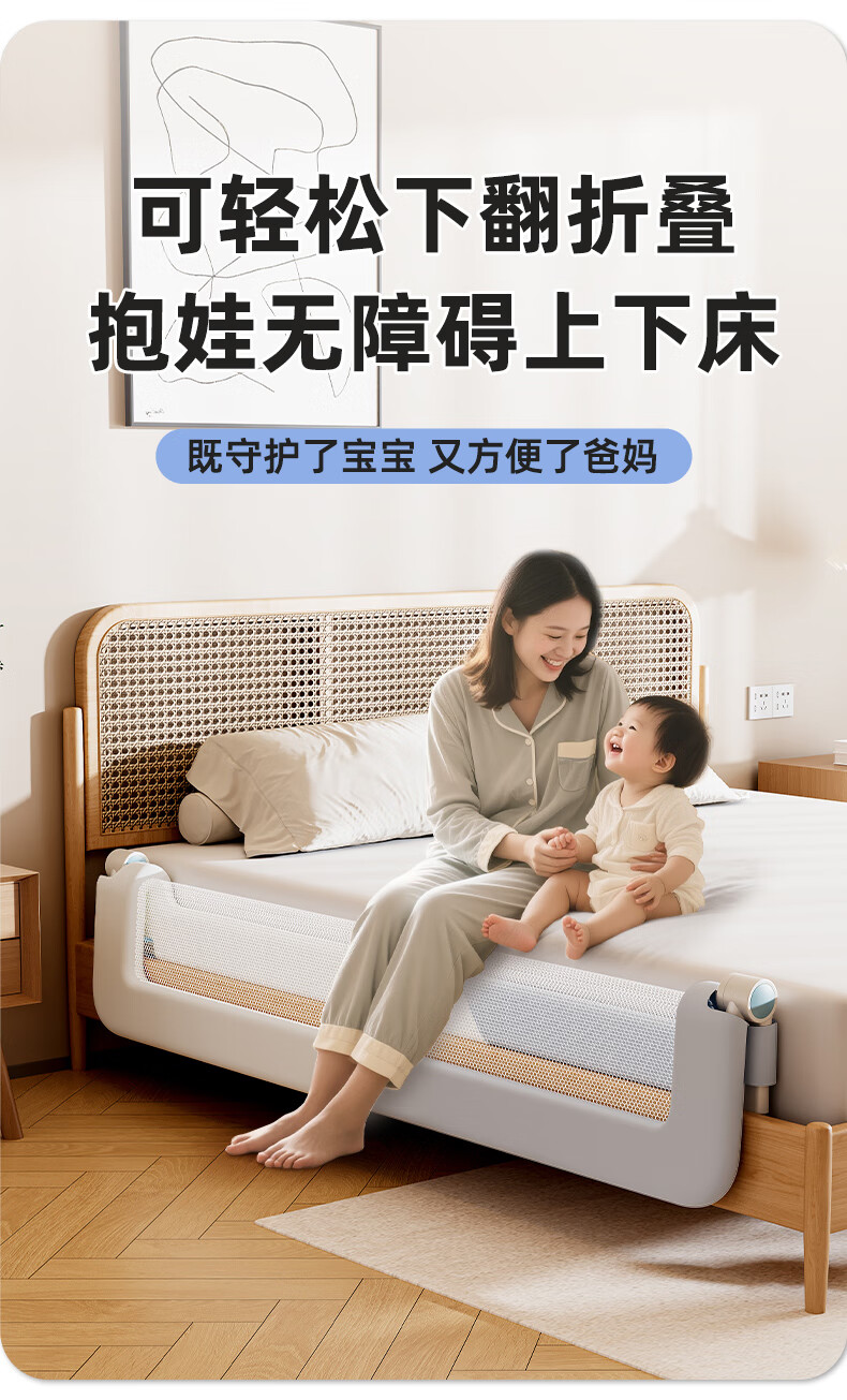 Yogoyi bed fence baby guardrail foldable baby crib fence safety guardrail to prevent falling off one side of the bed 1.2 meters gray and white oblique stitching invisible full folding seamless anti-pinch