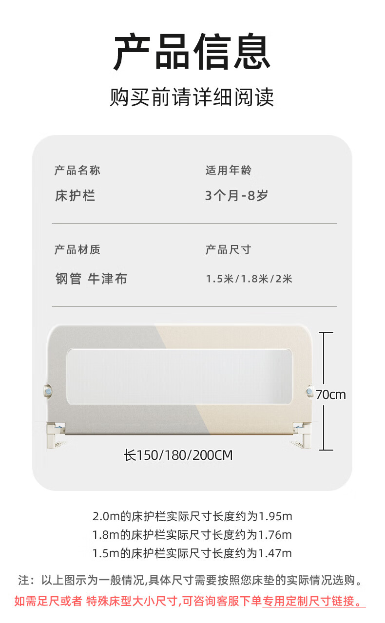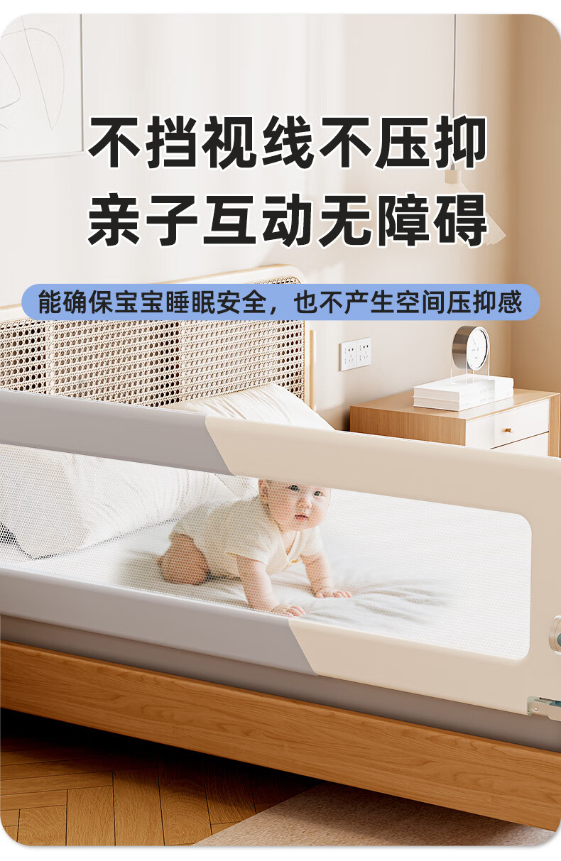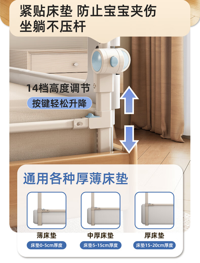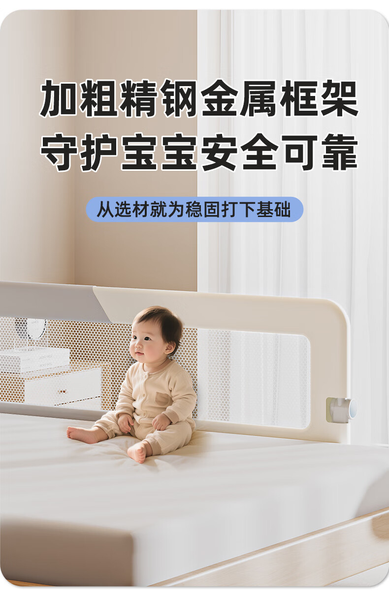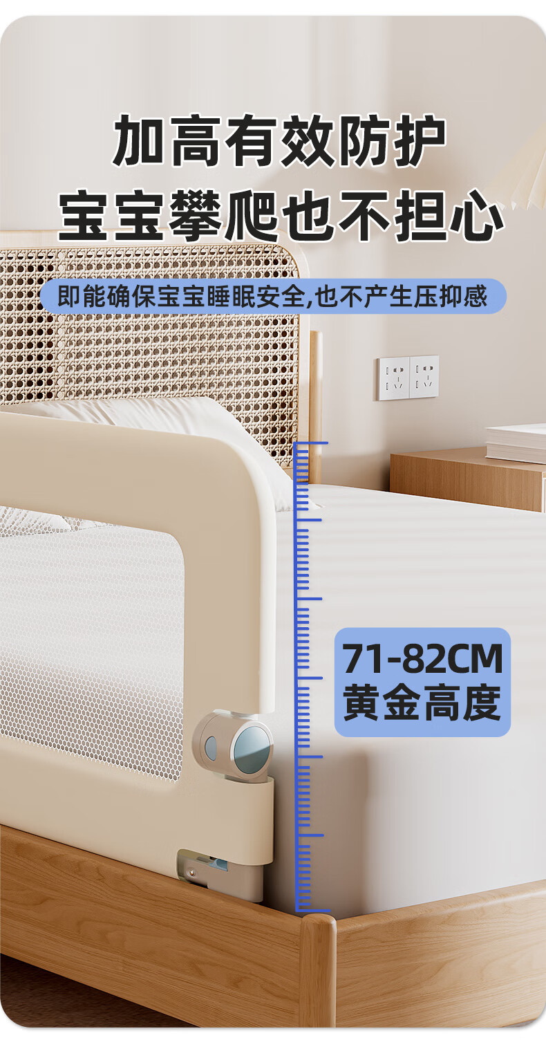 Yogoyi bed fence baby guardrail foldable baby crib fence safety guardrail to prevent falling off one side of the bed 1.2 meters gray and white oblique stitching invisible full folding seamless anti-pinch