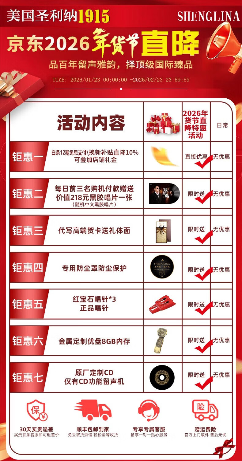 SHENGLINA American solid wood gramophone retro vinyl record player nostalgic national old-fashioned antique large speaker living room audio European record player walnut color gilt wood speaker + subwoofer