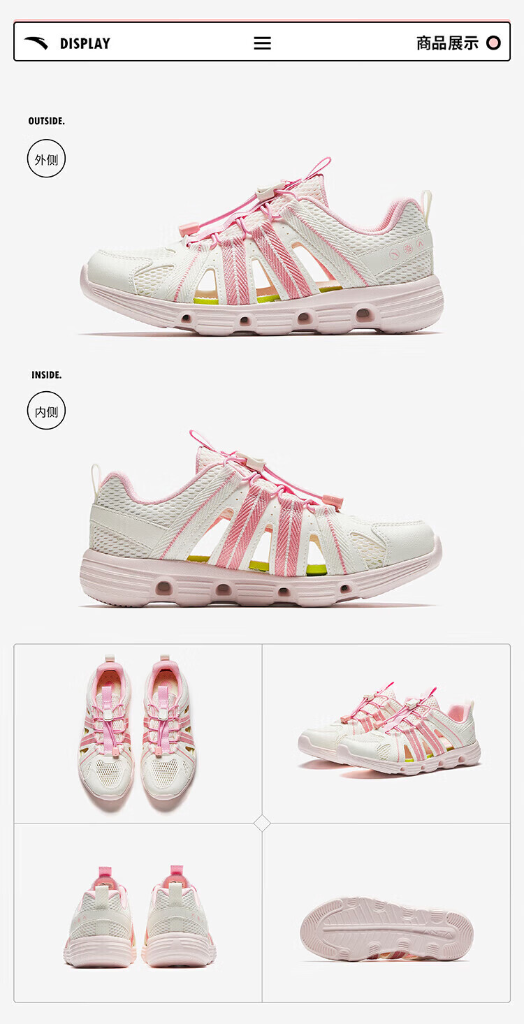ANTA Children's Sandals, Girls' Shoes, 2025 Summer New Slip-on River Shoes, Outdoor Beach Shoes, Ivory White/Blush Pink-5 33