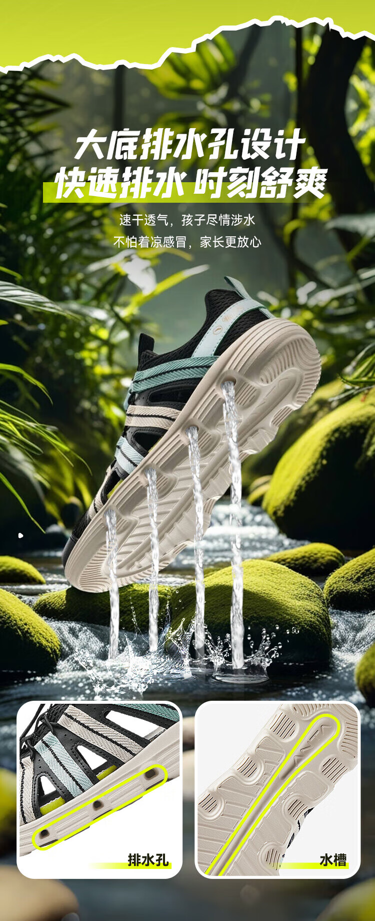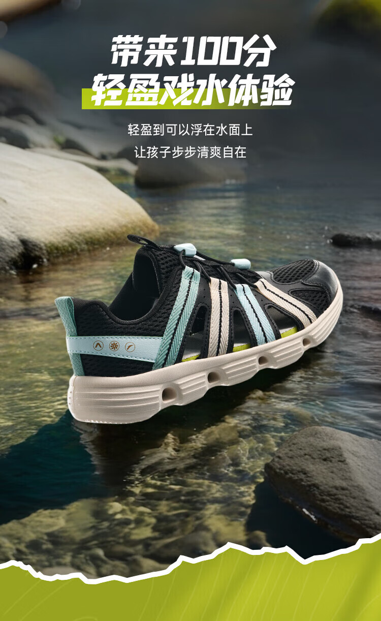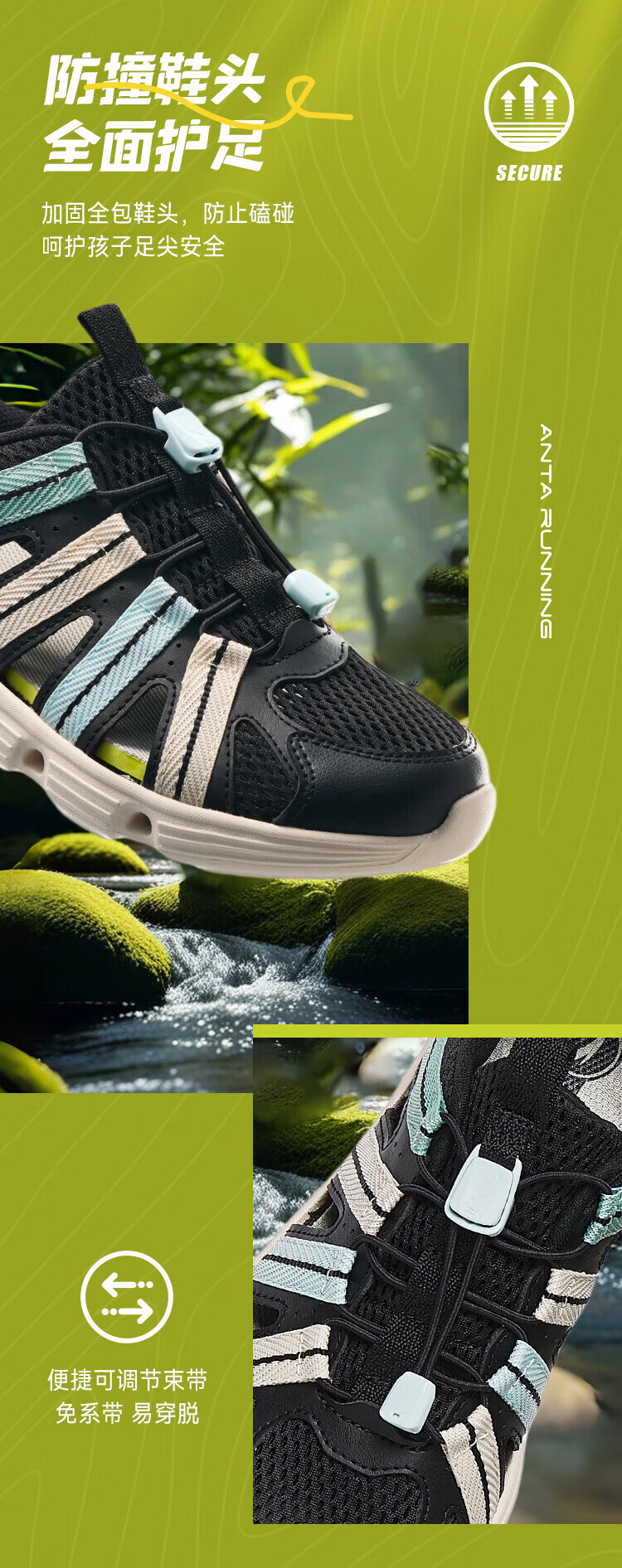 ANTA children's sandals, boys' shoes, 2025 summer new outdoor water and land tracing shoes, toe-toe anti-collision beach shoes, black/ice crystal green-2 33 size