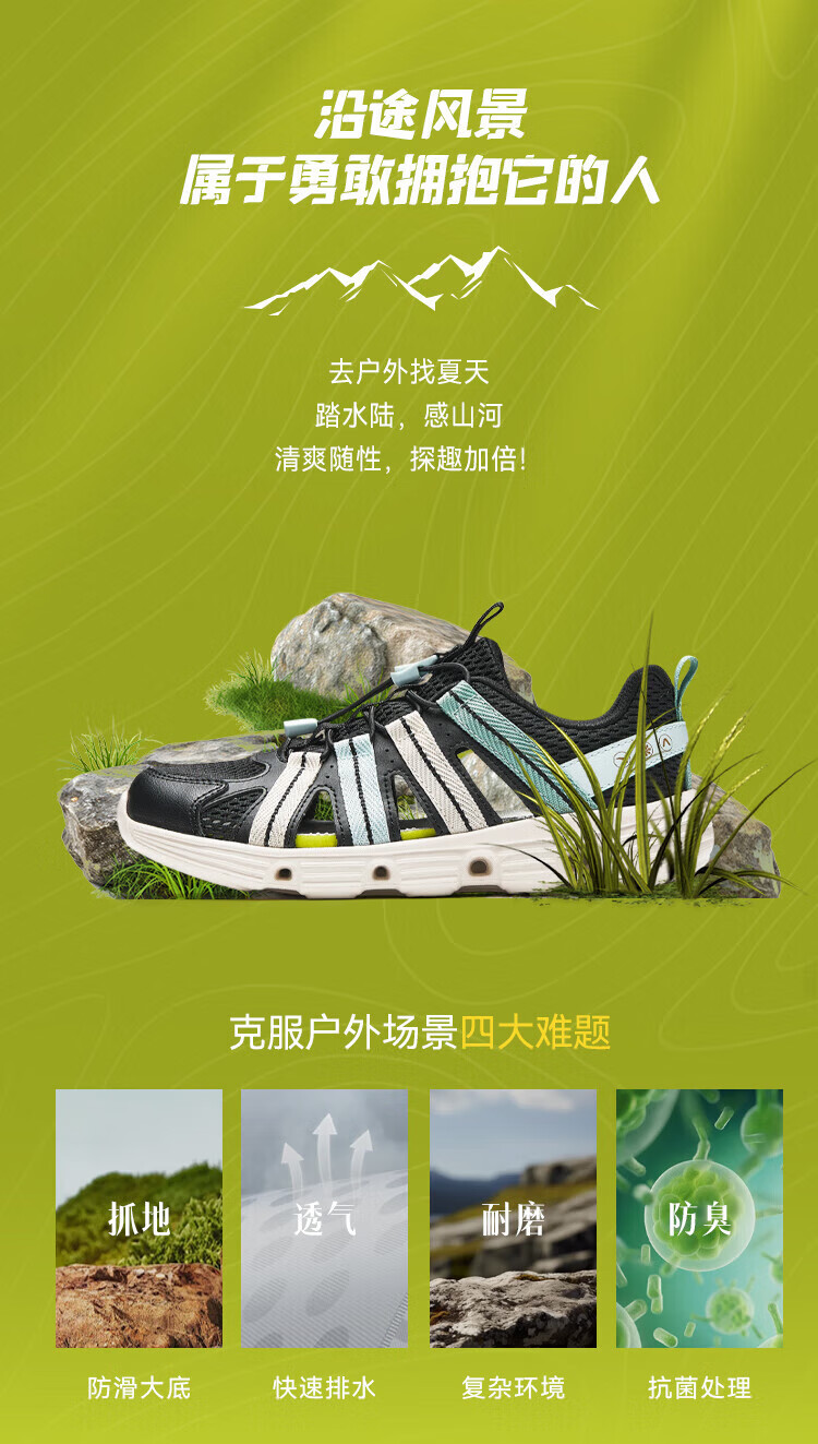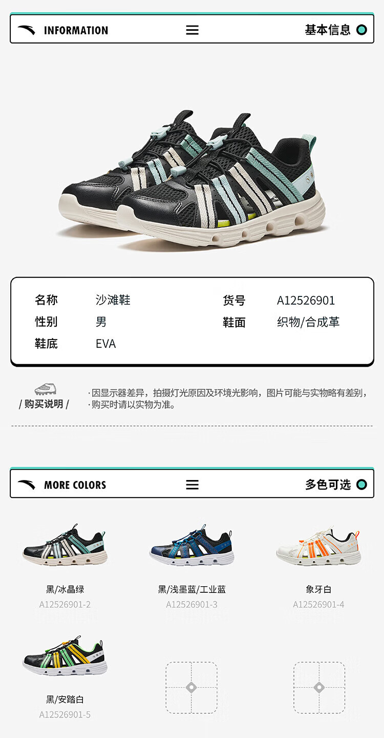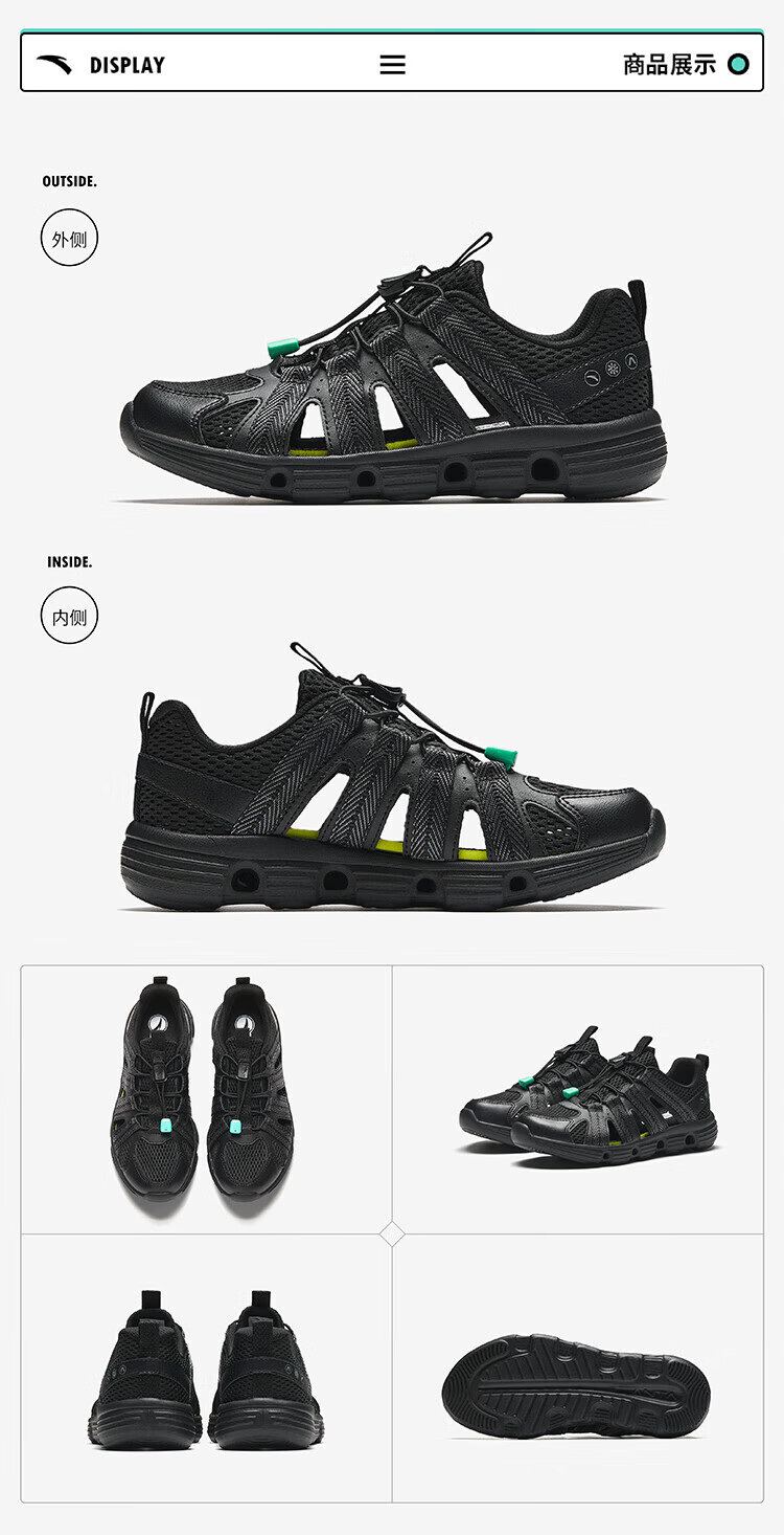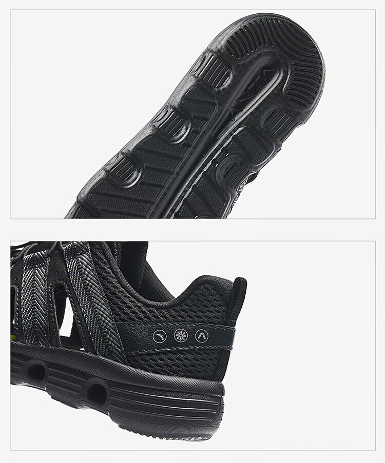 ANTA children's sandals, boys' shoes, 2025 summer new outdoor water and land tracing shoes, toe-toe anti-collision beach shoes, black/ice crystal green-2 33 size