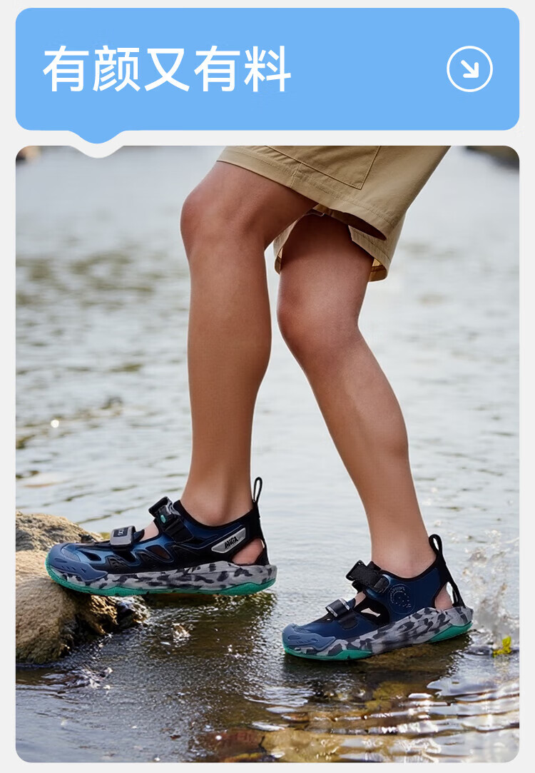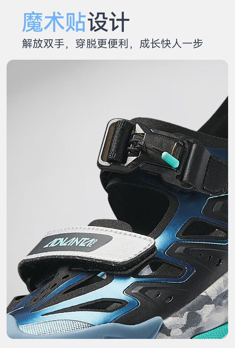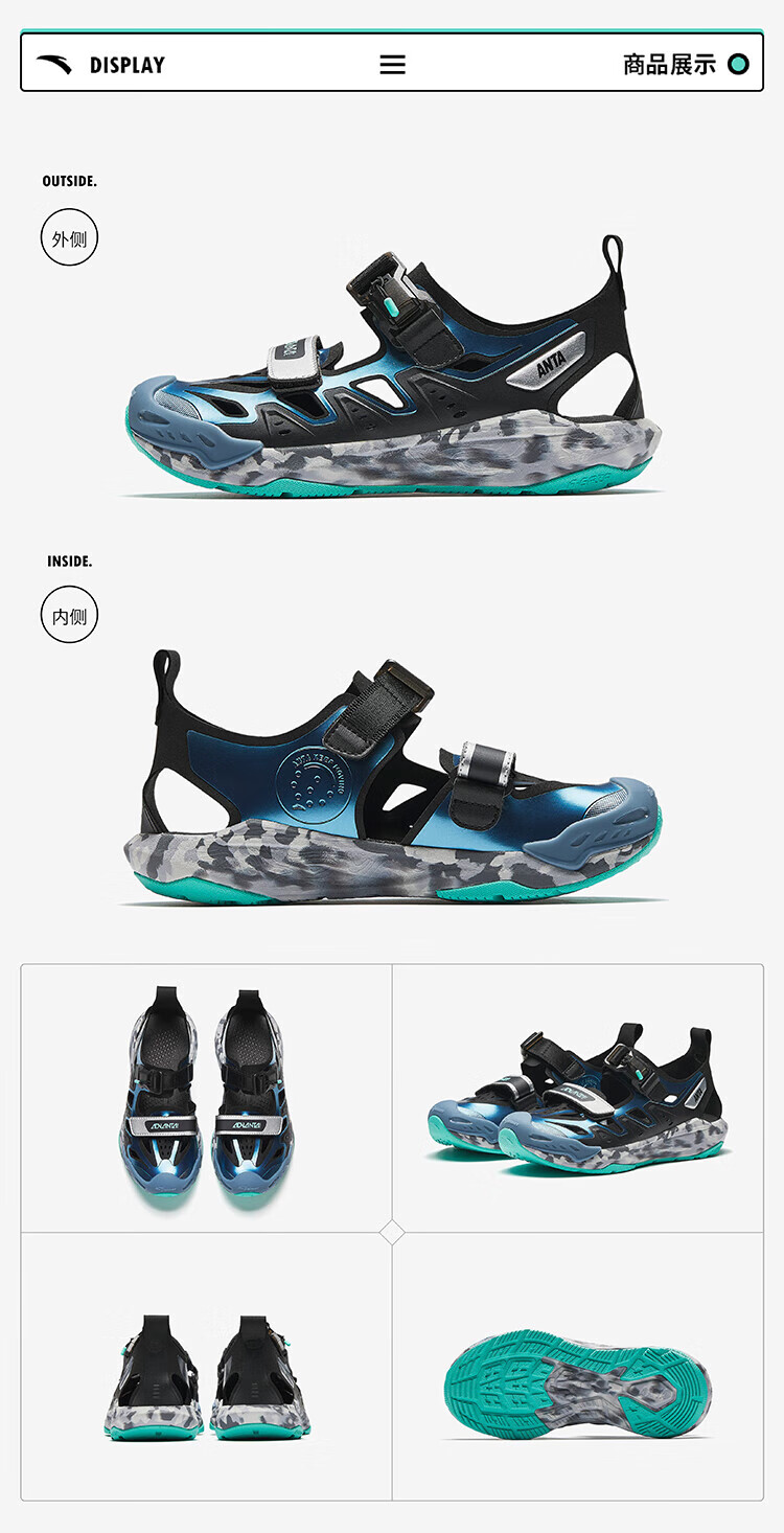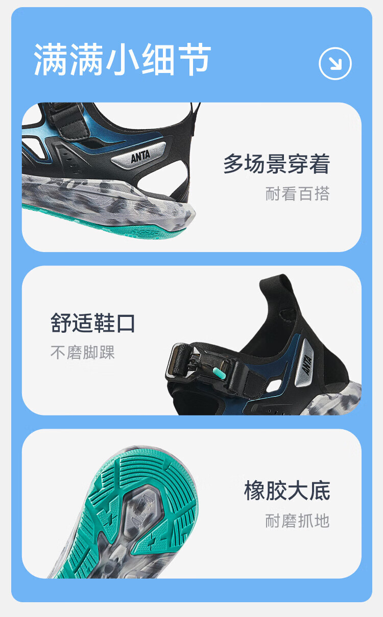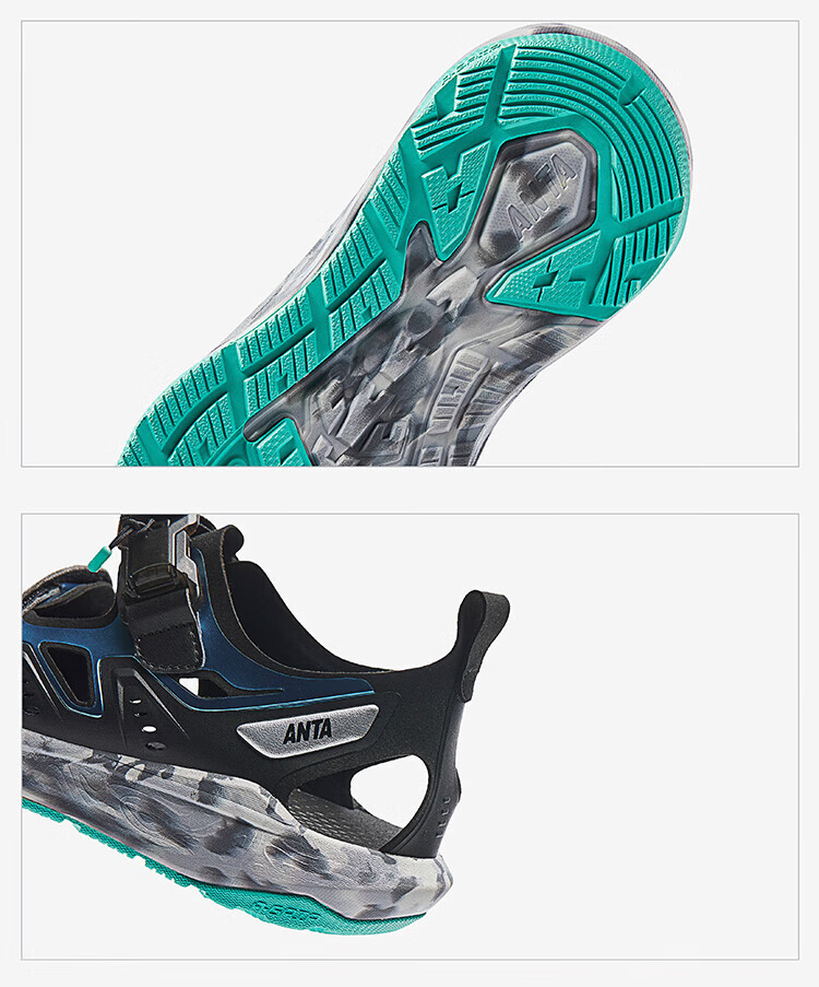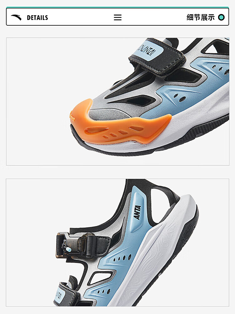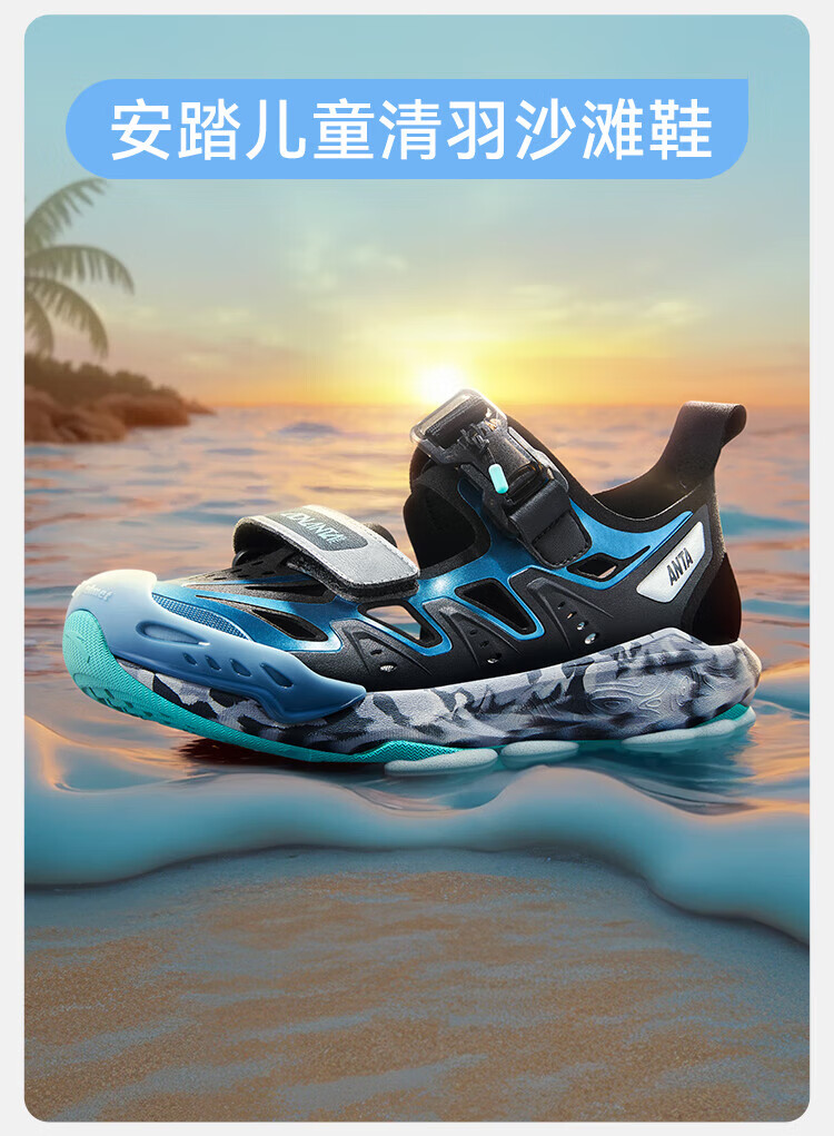 ANTA children's sandals, boys' shoes, 25-year summer Qingyu Baotou outdoor comfortable student beach shoes, water-soluble blue/black/Anta white-1 38