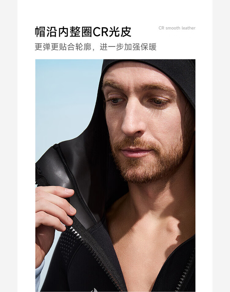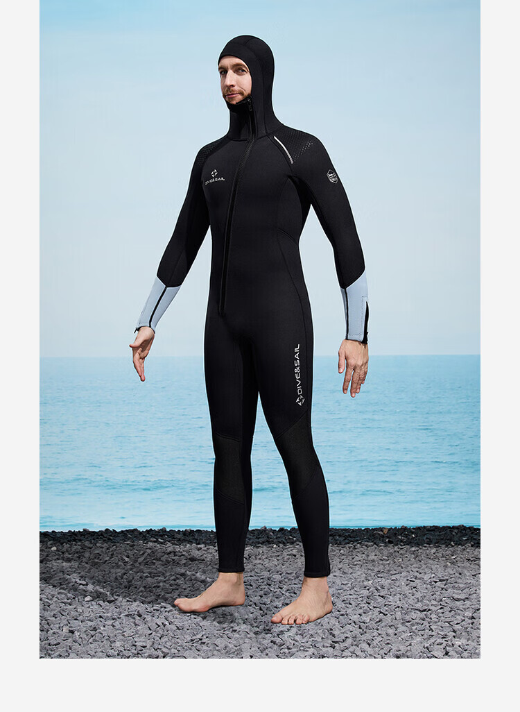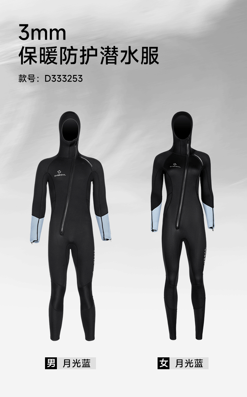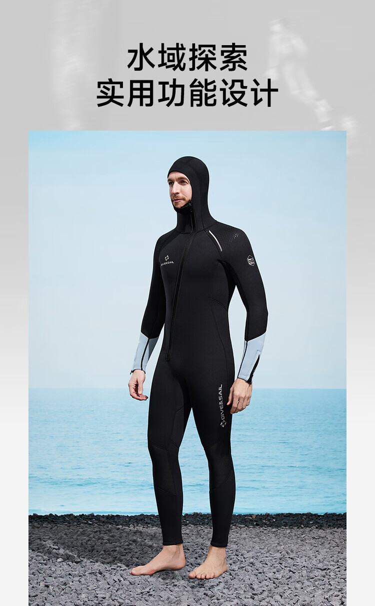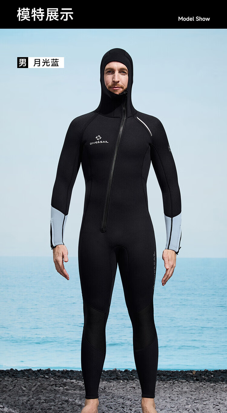 VVIR EER3mm hooded wetsuit high elastic CR men's long-sleeved warm one-piece sun protection waterproof snorkeling surfing cold wet suit 3mm 253 men's front opening moonlight blue warm and cold protection L 3mm