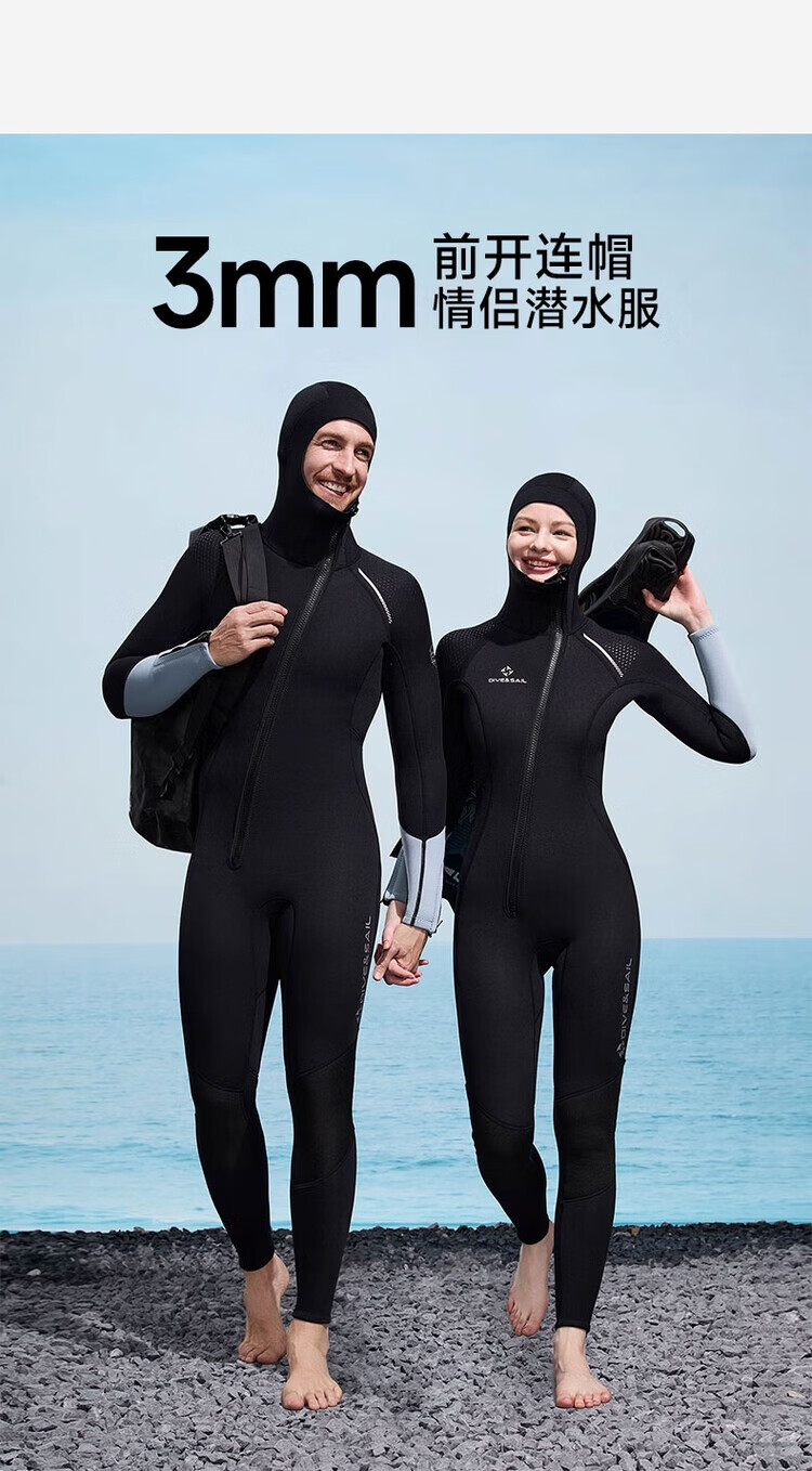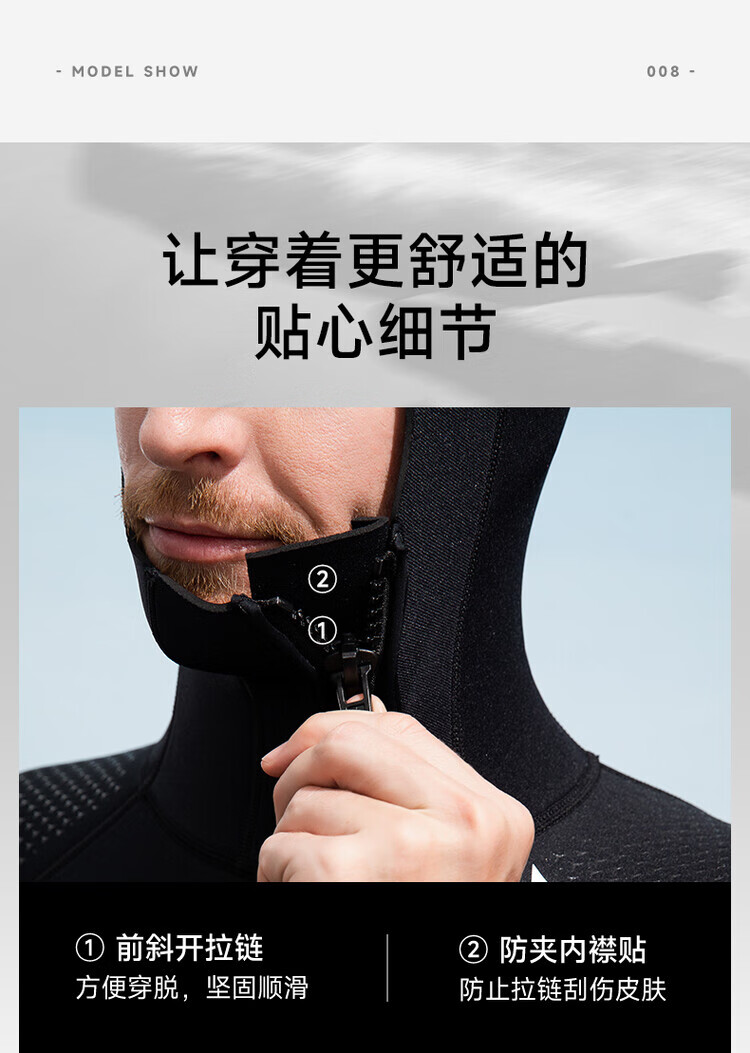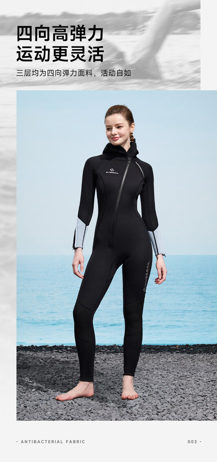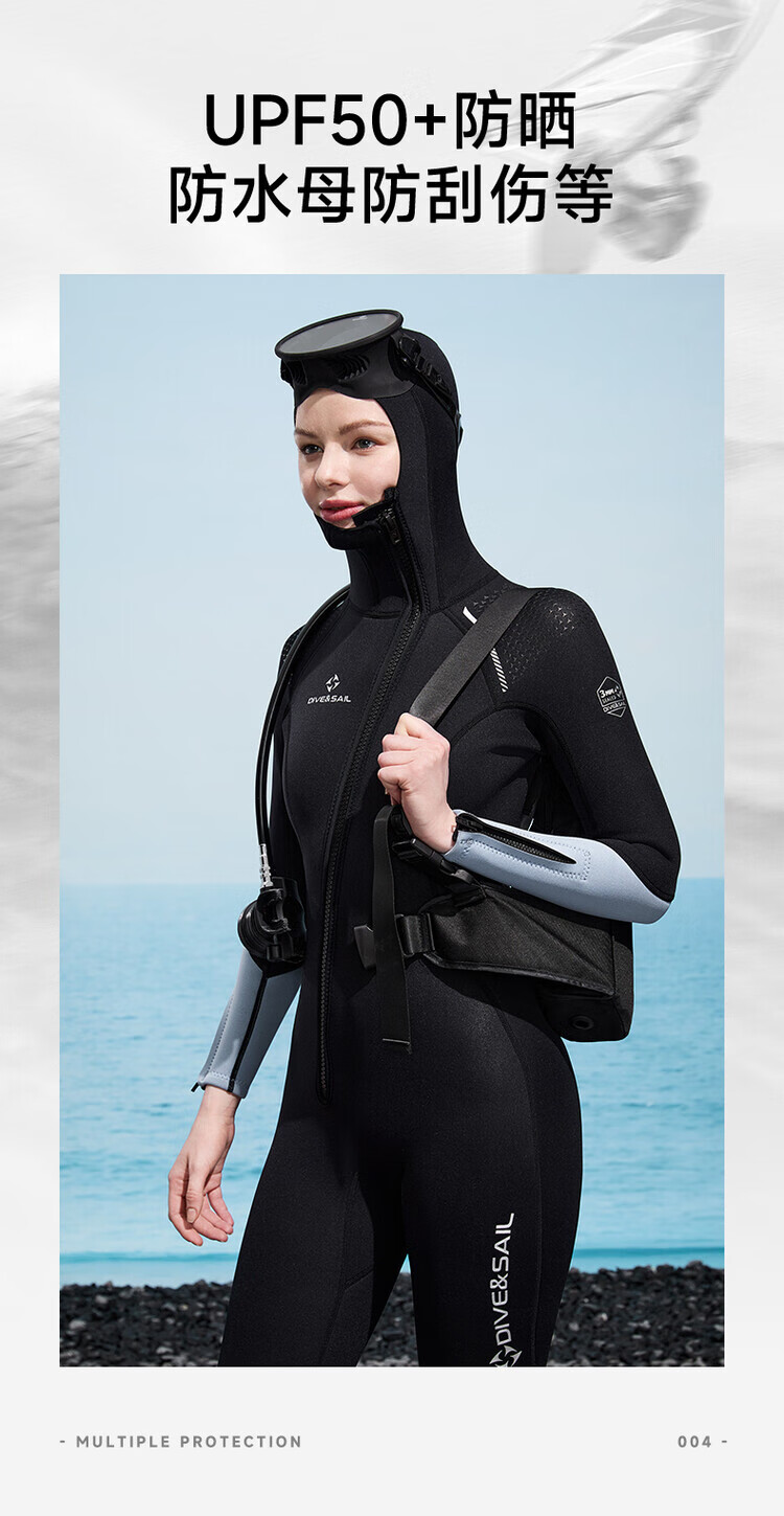 VVIR EER3mm hooded wetsuit high elastic CR men's long-sleeved warm one-piece sun protection waterproof snorkeling surfing cold wet suit 3mm 253 men's front opening moonlight blue warm and cold protection L 3mm