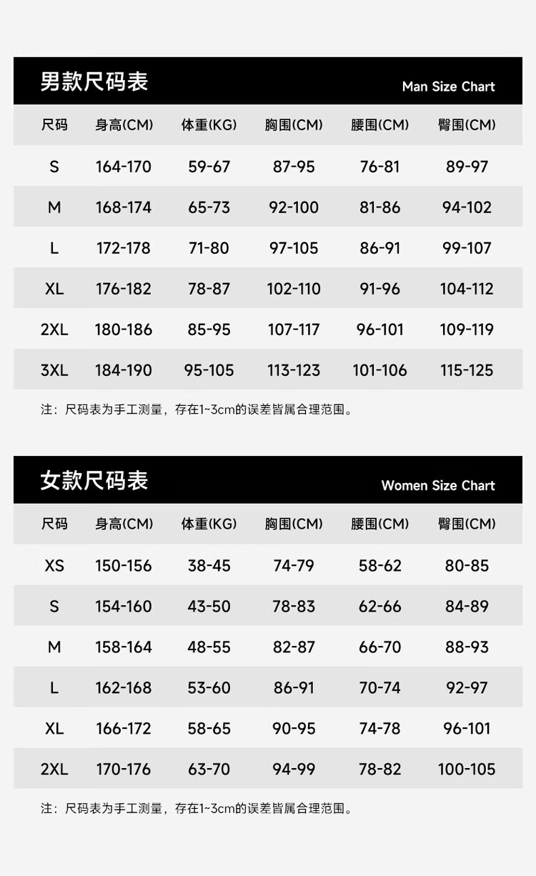 China (cm) 165 / 88-90 170 / 96-98 175 / 108-110 180 / 118-122 185 / 126-130