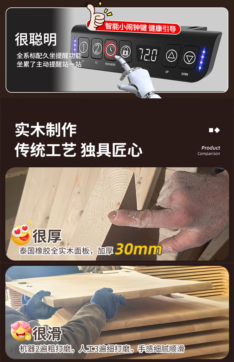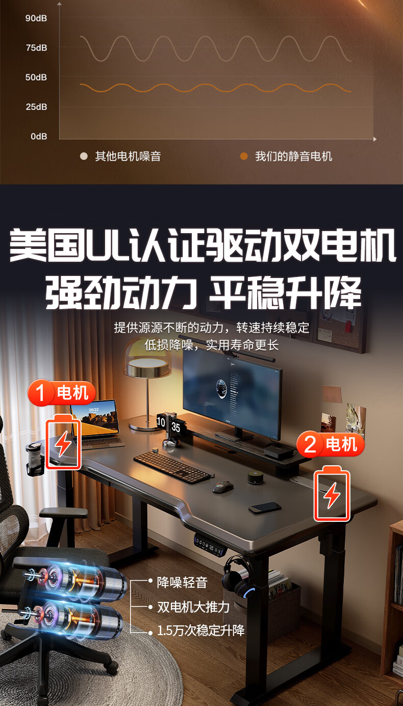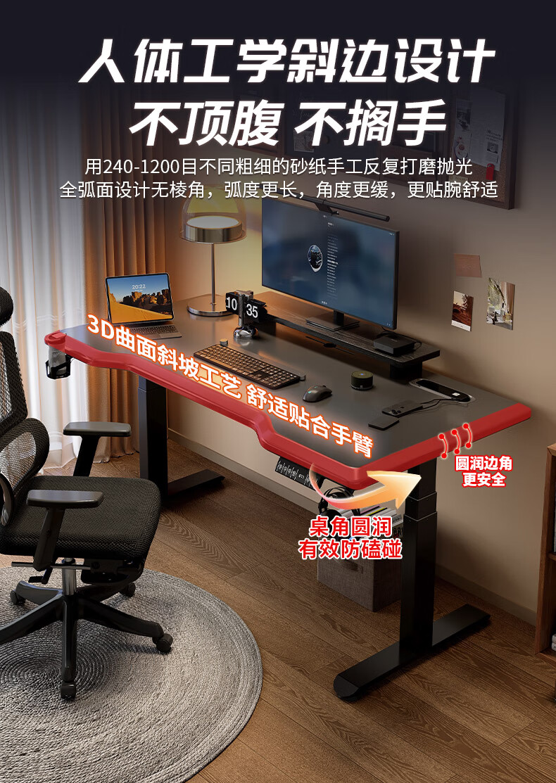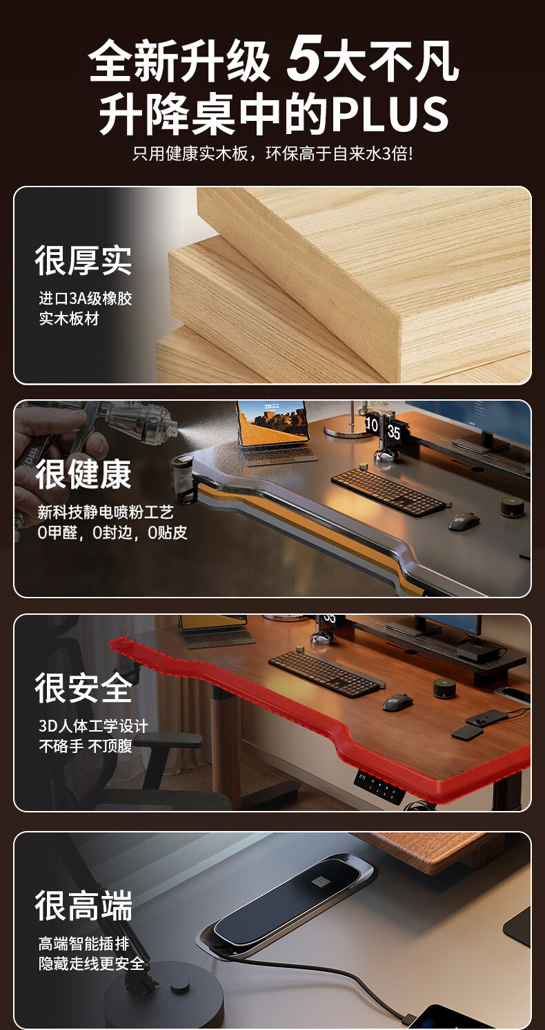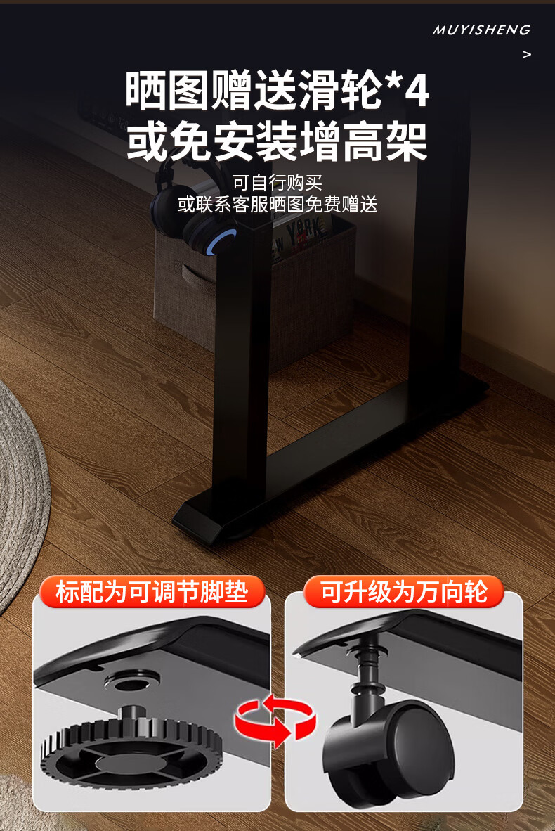 Mu Yisheng solid wood electric lift table 3cm computer desk desktop e-sports table office study desk liftable workbench hidden power strip dual motor 3cm walnut color 120*60 100% imported pure solid wood desktop