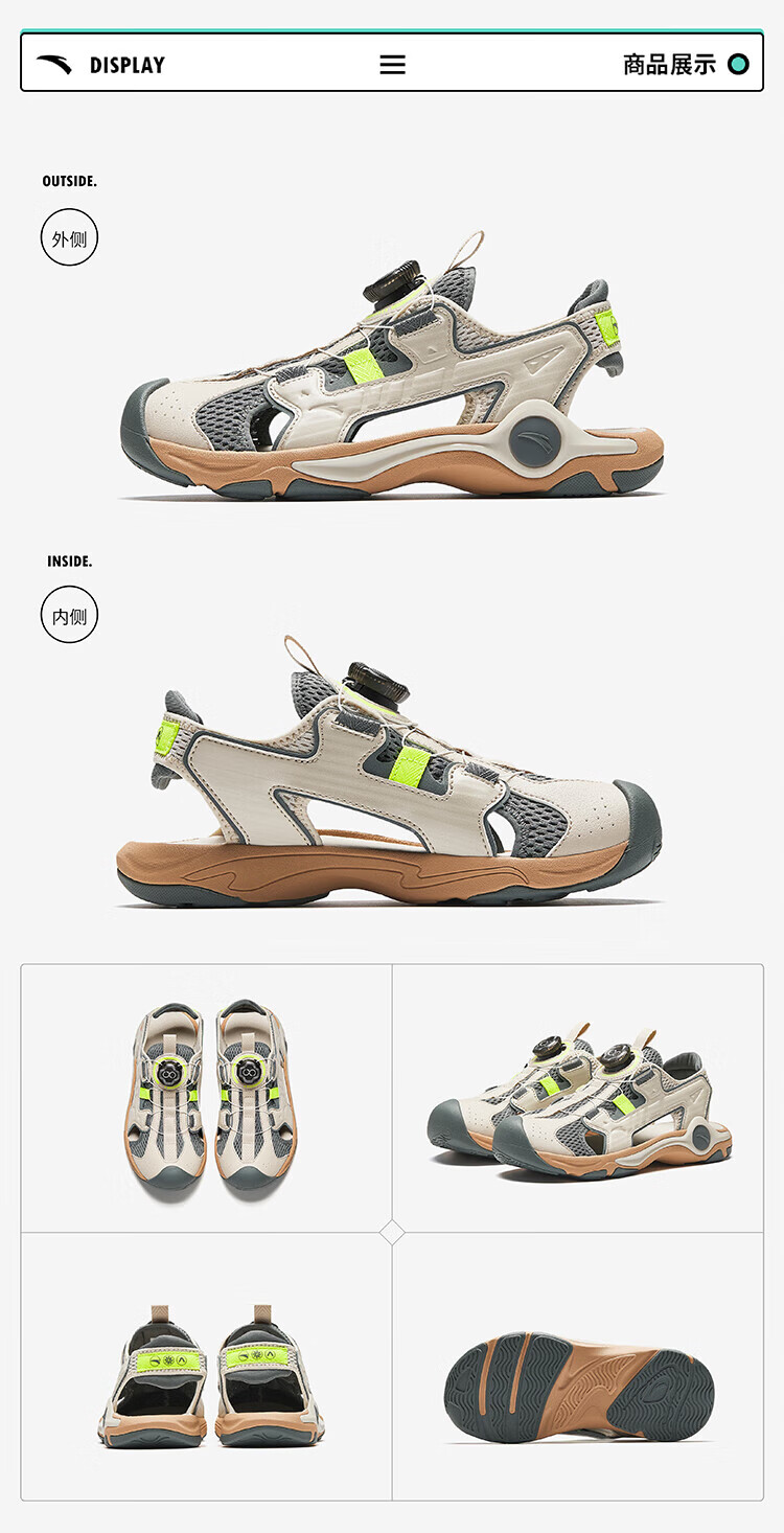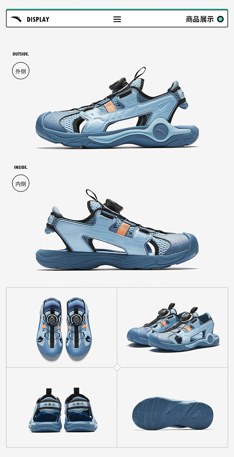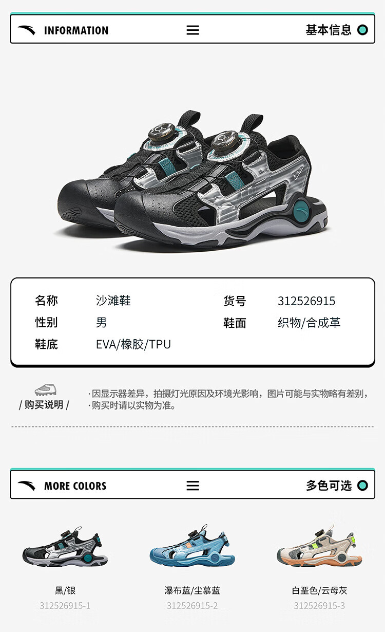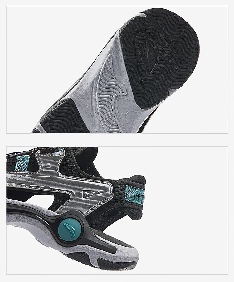 Anta children's sandals, boys' shoes, 25-year summer hard-core toe-toe outdoor knob buckle student beach shoes, black/silver-1 33