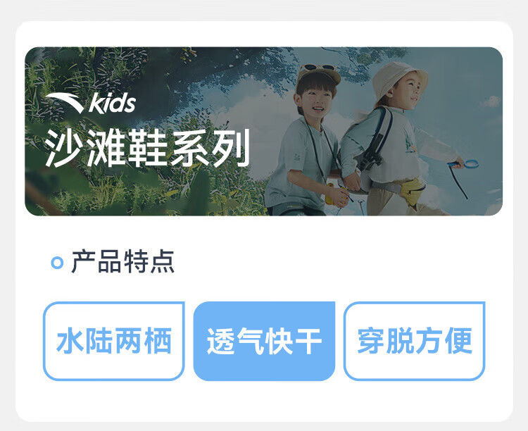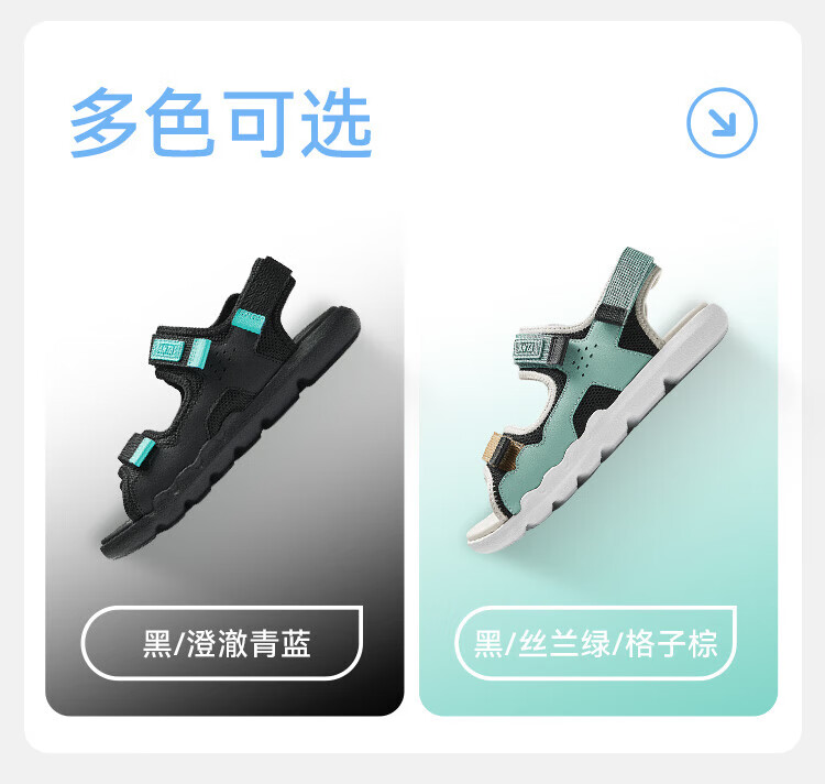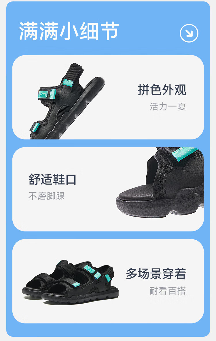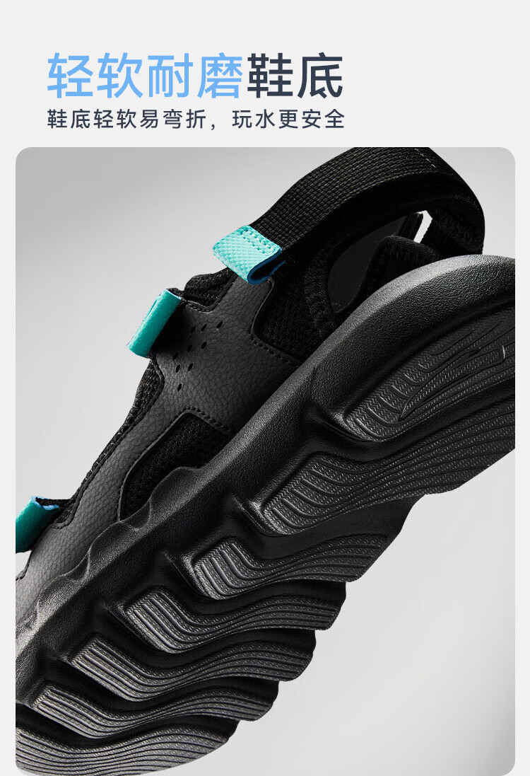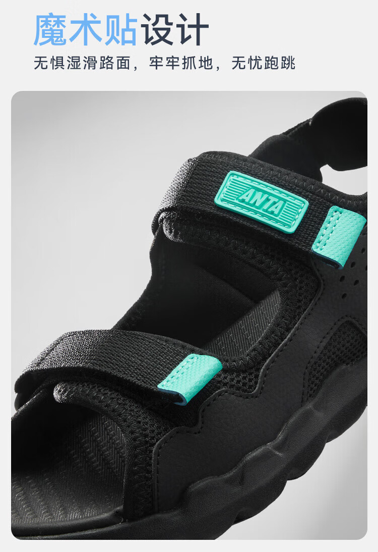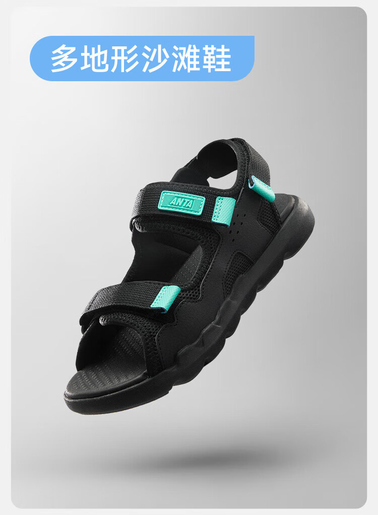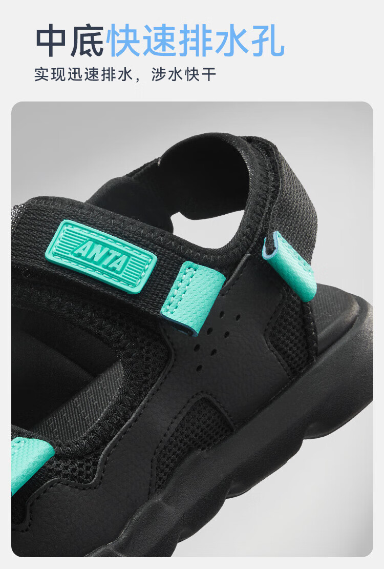 ANTA children's sandals, boys' shoes, 25-year summer comfortable outdoor student open-toe beach shoes, black/clear blue-1 34