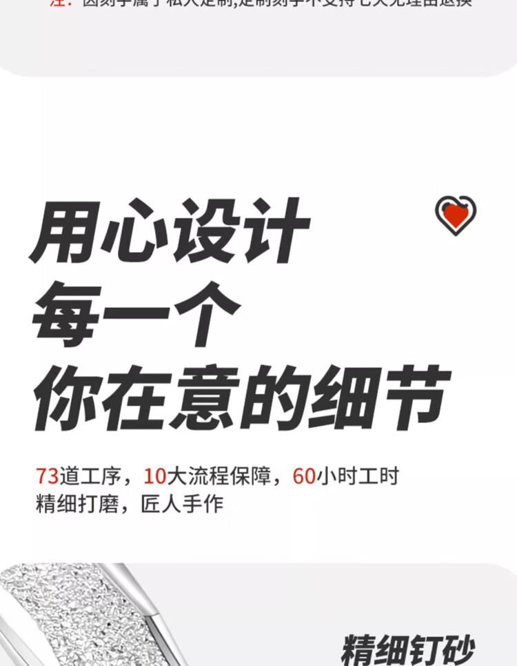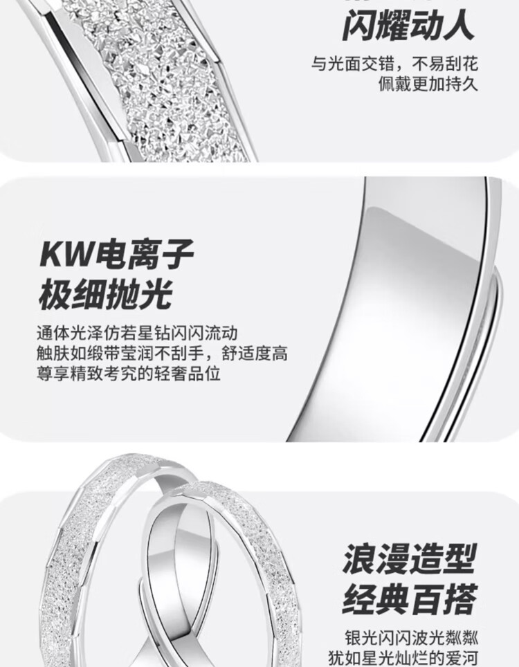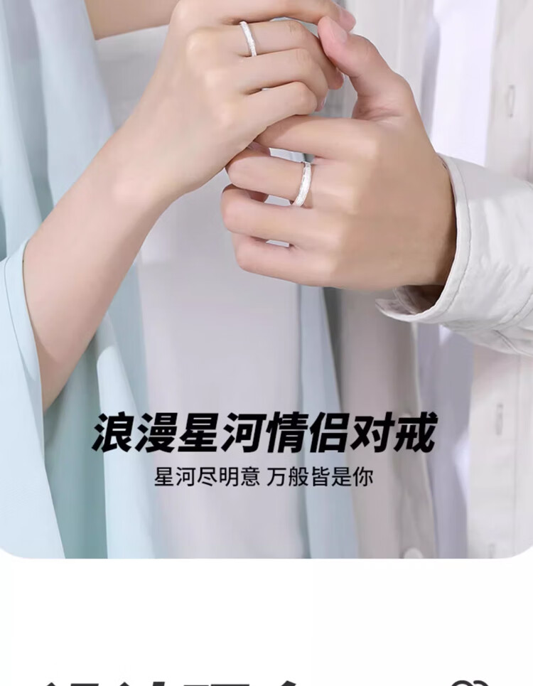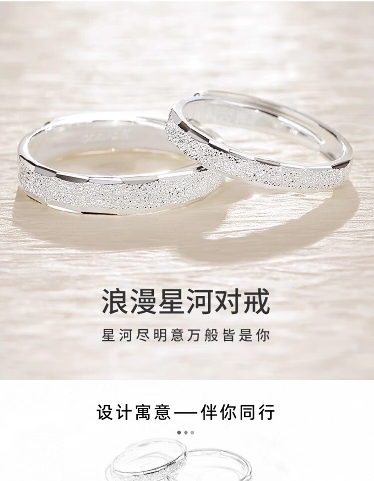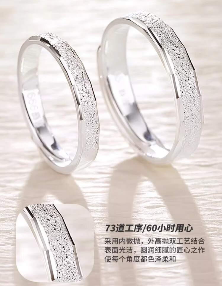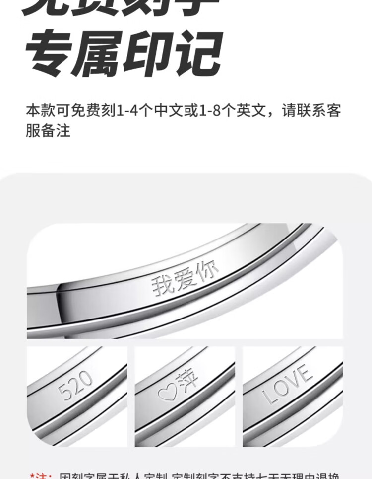 Mansheng Pure Silver Ring 999 Pure Silver Ring Couple's Ring Pair of Engraved Light Luxury Jewelry Men's and Women's Ring Proposal Gift Women's