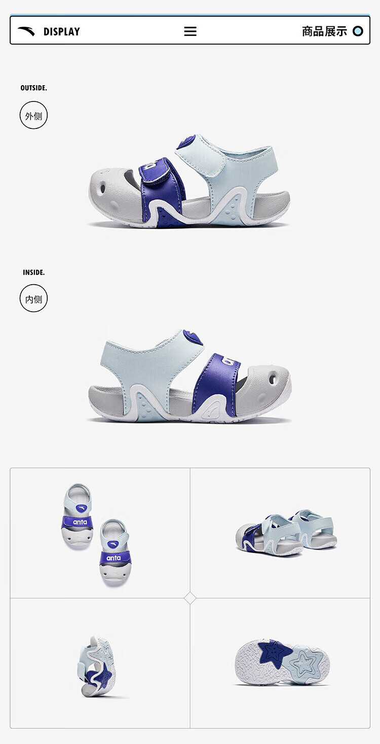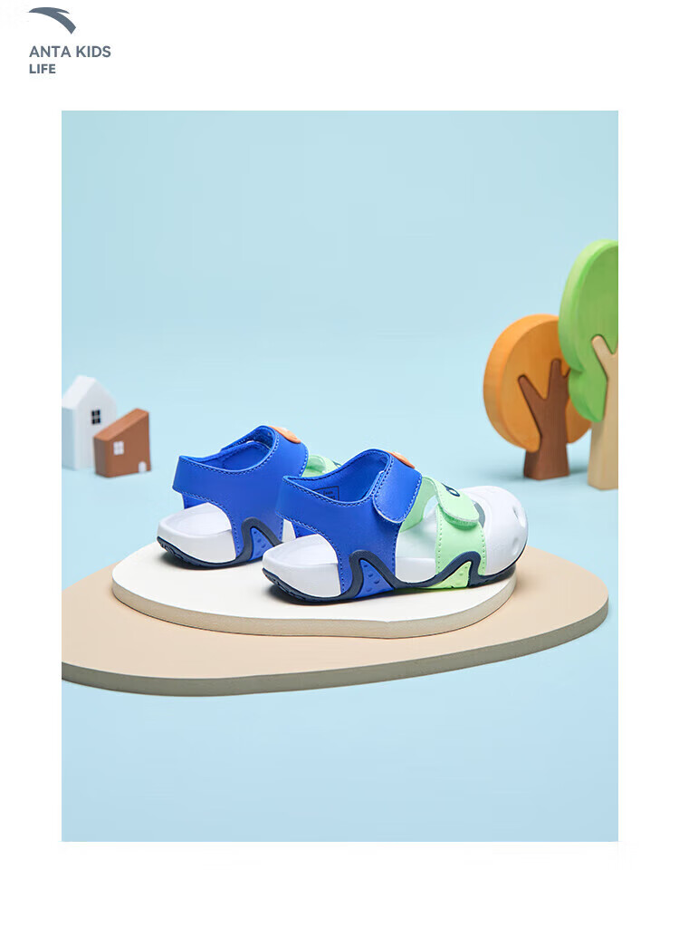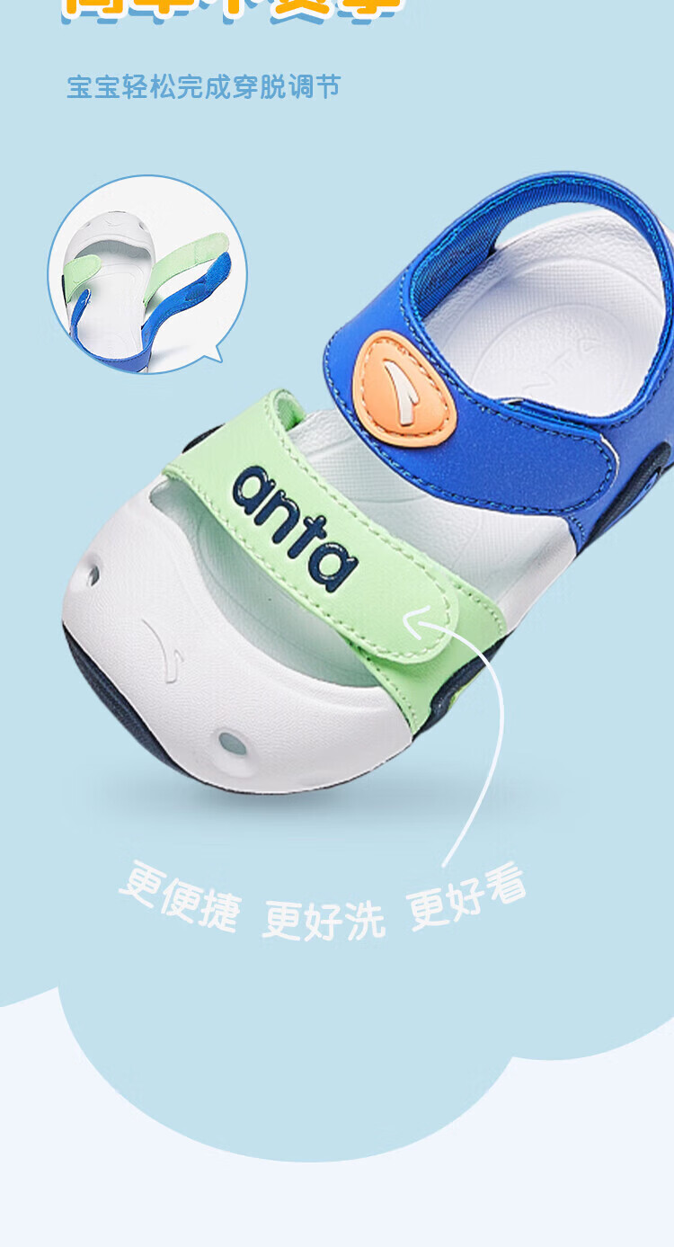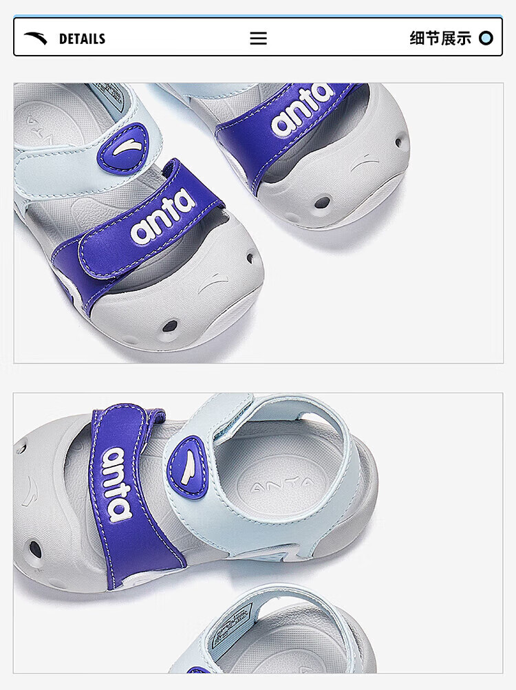 ANTA children's sandals for boys and girls, beach shoes for boys and girls, summer toe-caps, breathable, lightweight, soft-soled baby starfish toddler shoes, male, fantasy blue/tang purple-1 24