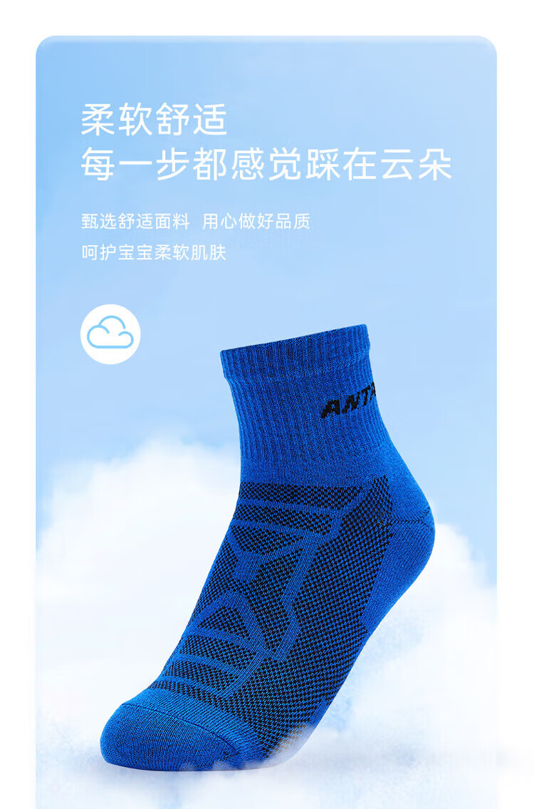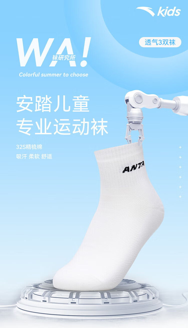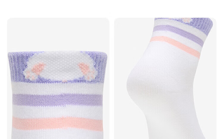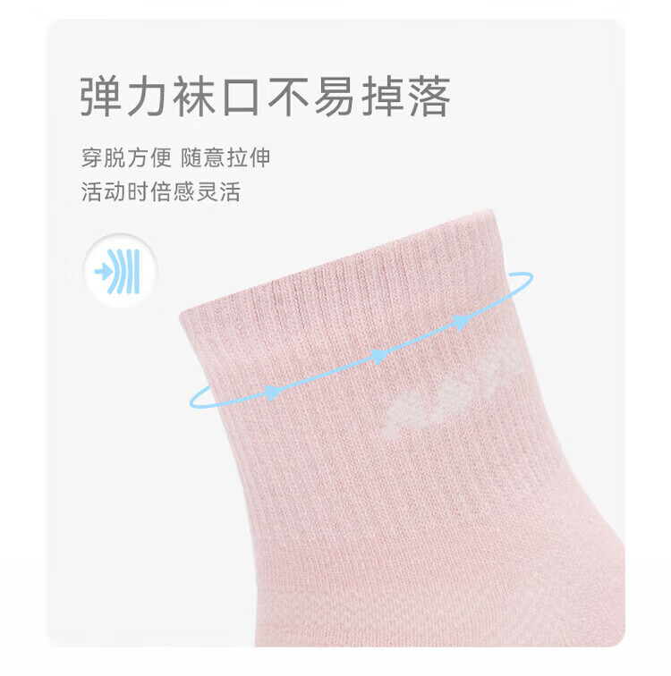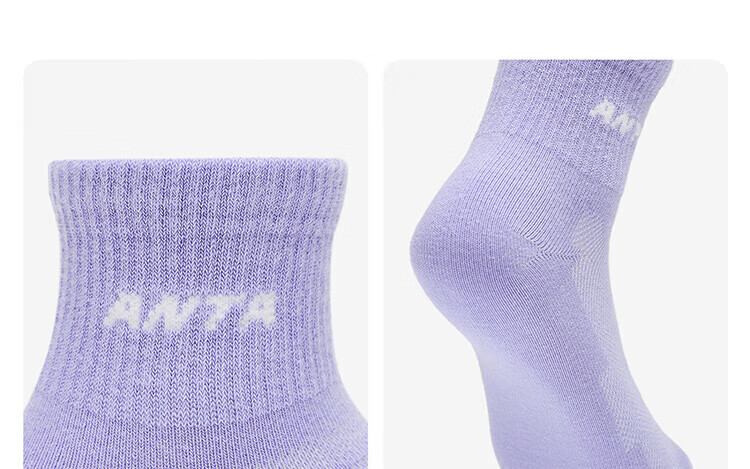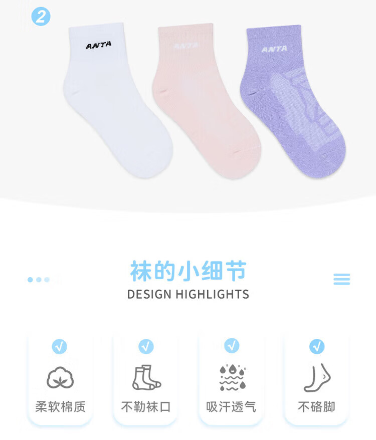 Anta three pairs of children's socks for boys and girls in spring and summer, skin-friendly, comfortable and breathable sports cotton socks for children, mid-calf socks, mid-calf socks for girls, white/purple/pink, 3 pairs, over 13 years old (2XL)