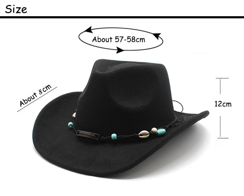 XINBUCKS Western Cowboy Hat Ethnic Style Top Hat Tibetan Style Casual Hat Jazz Hat Stage Props Felt Hat White Suitable for 55-58cm