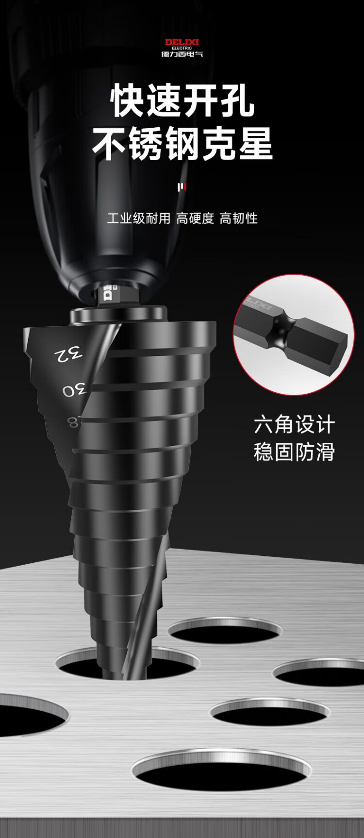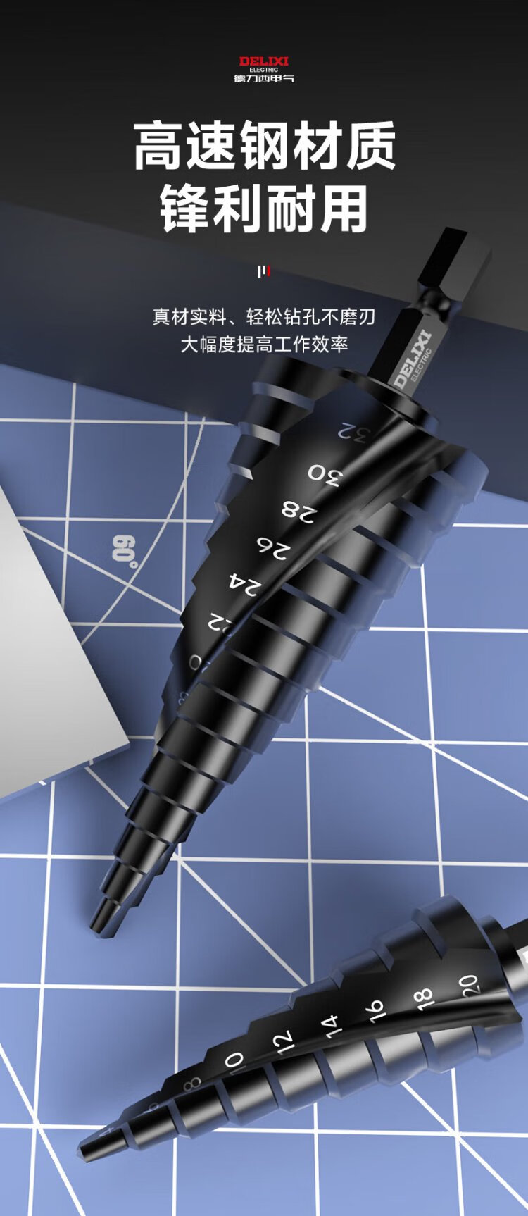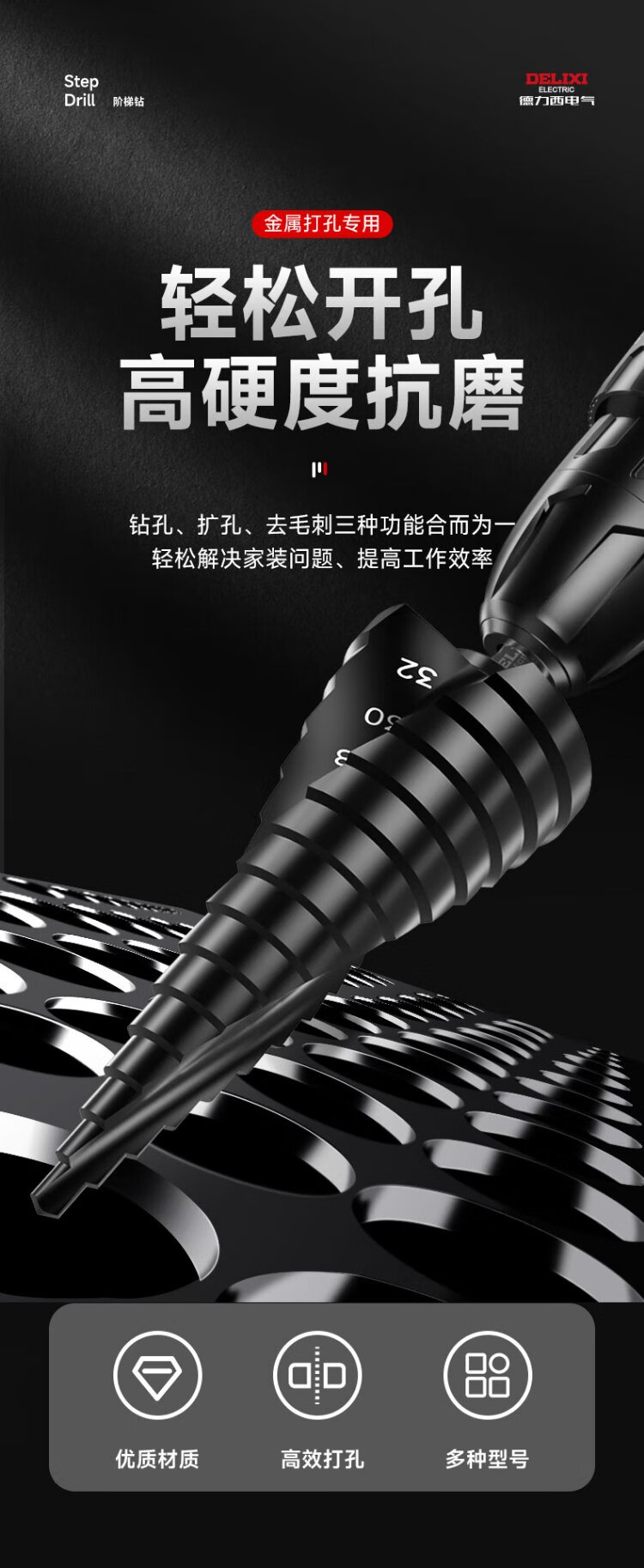 Delixi Electric Pagoda Drill Bit Industrial Grade High Hardness Iron Plate Aluminum Plate Woodworking Special Hole Expander Step Drill Bit Wear-Resistant Spiral Groove 4-20mm Iron Plate/Aluminum Plate/Aluminum Alloy