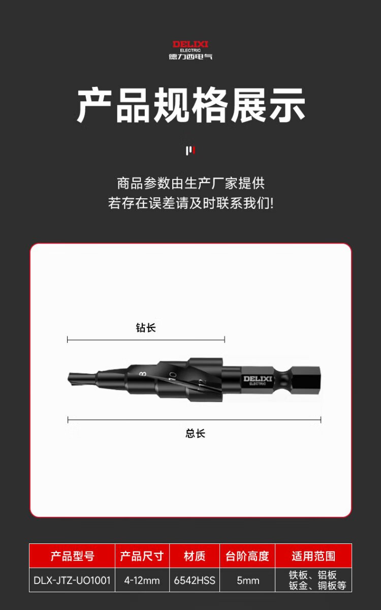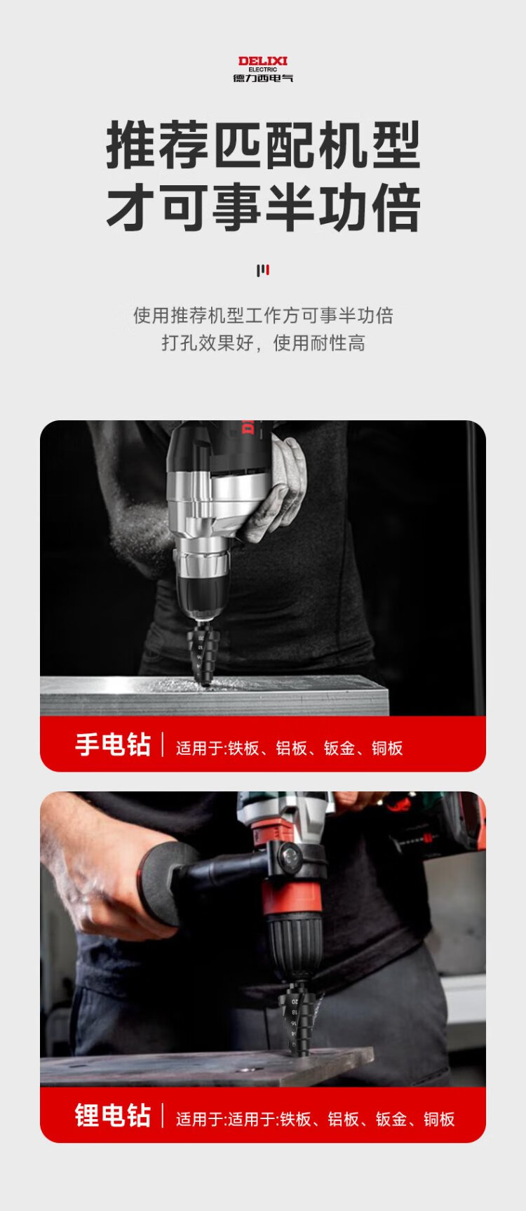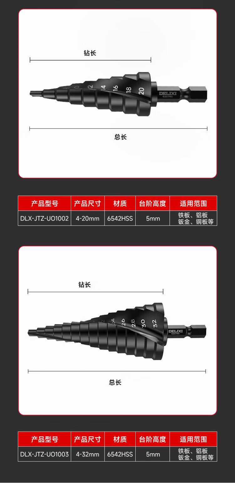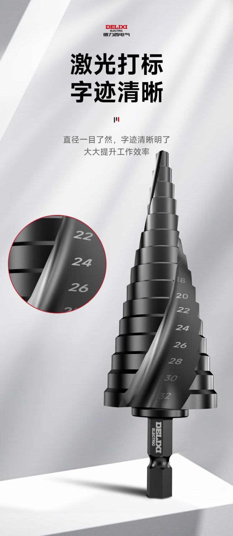 Delixi Electric Pagoda Drill Bit Industrial Grade High Hardness Iron Plate Aluminum Plate Woodworking Special Hole Expander Step Drill Bit Wear-Resistant Spiral Groove 4-20mm Iron Plate/Aluminum Plate/Aluminum Alloy