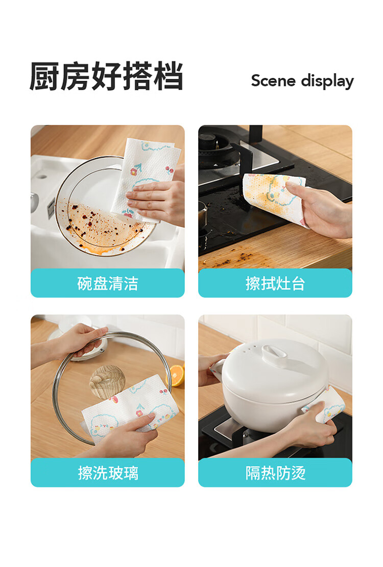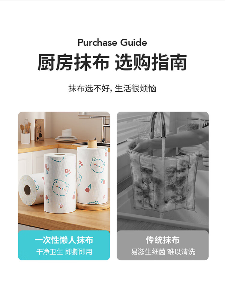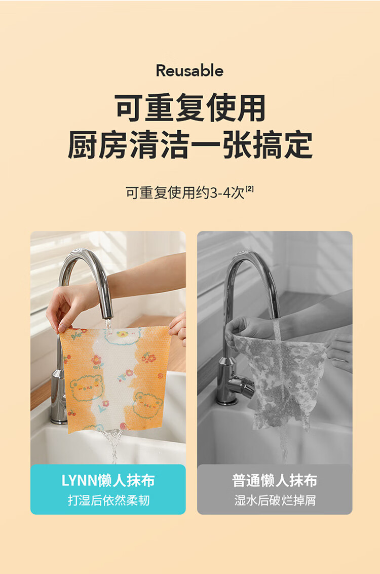 LYNN disposable lazy rag kitchen towel, wet and dry use, oil-absorbing and water-absorbing dish cleaning cloth, dish towel, strong water-absorbing rag, 70 sections*2/total 140 cigarettes