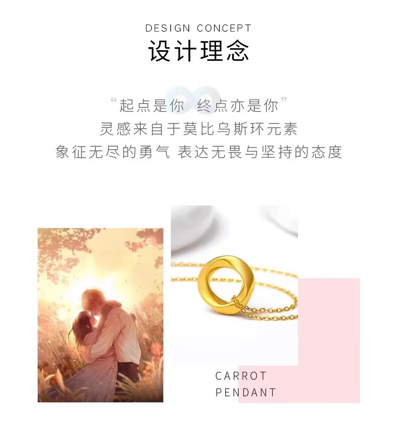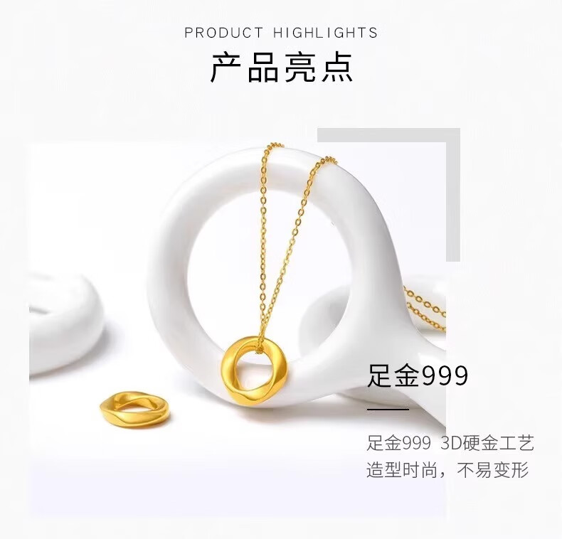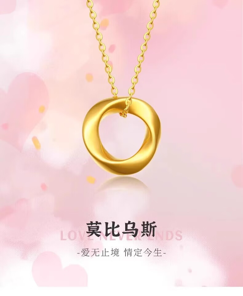 Dewey Van gold-wrapped silver 999 pure gold Möbius ring pendant gold peace buckle necklace women's clavicle chain as a gift for friends Möbius pendant (thick gold layer)