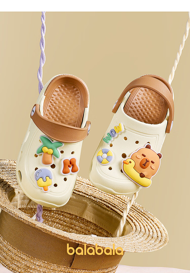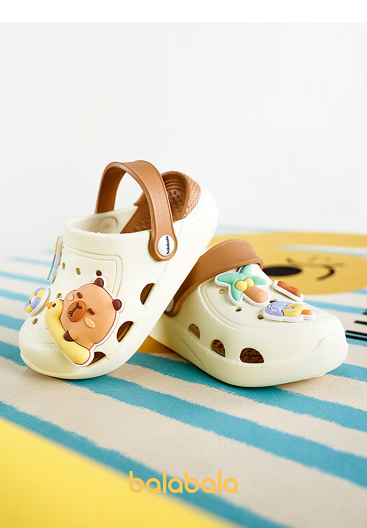 Balabala Children's Shoes Children's Crocs Cartoon Sandals Non-Slip Boys Girls Shoes 2025 Summer New Khaki Capybara 26