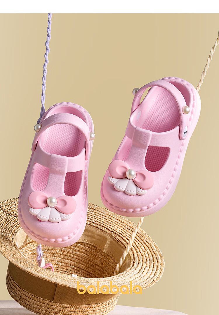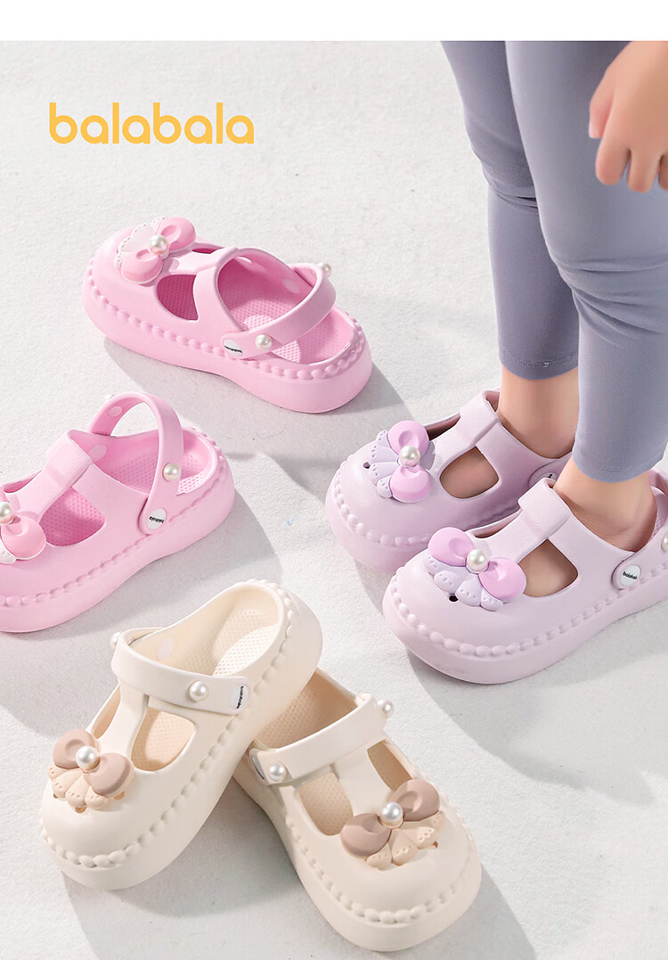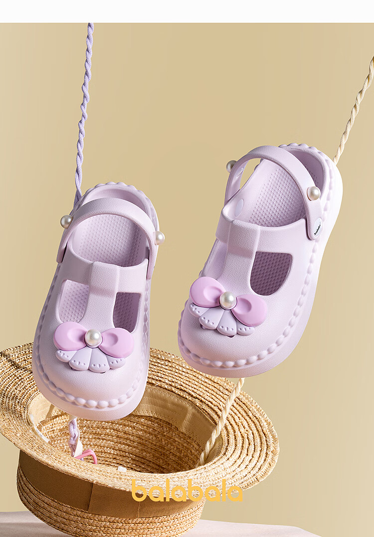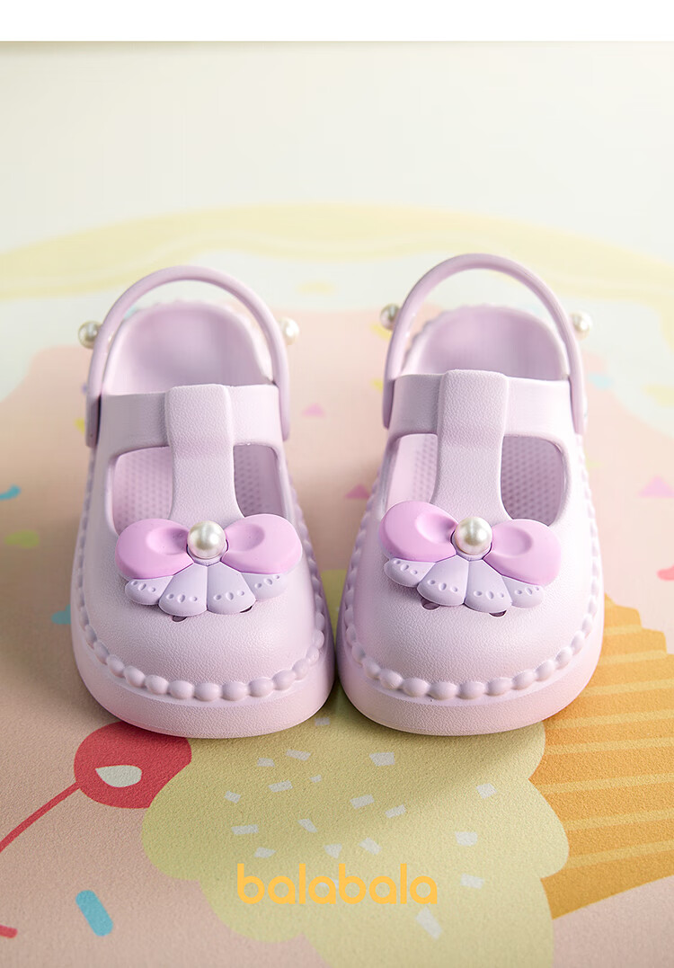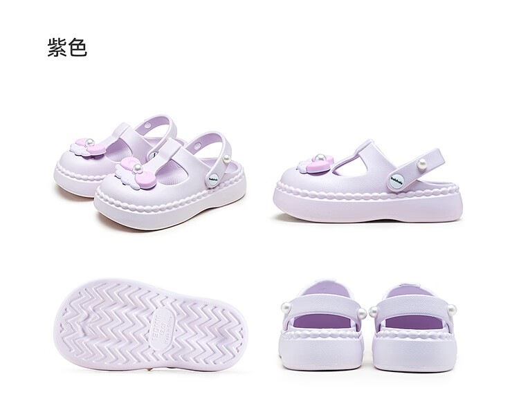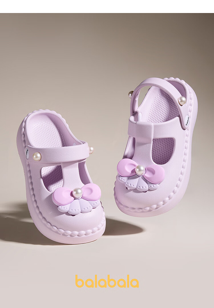 Balabala Children's Shoes Children's Croc Shoes Girls Sandals Thick Soled Outerwear 2025 Summer New Shoes Sweet Purple 28