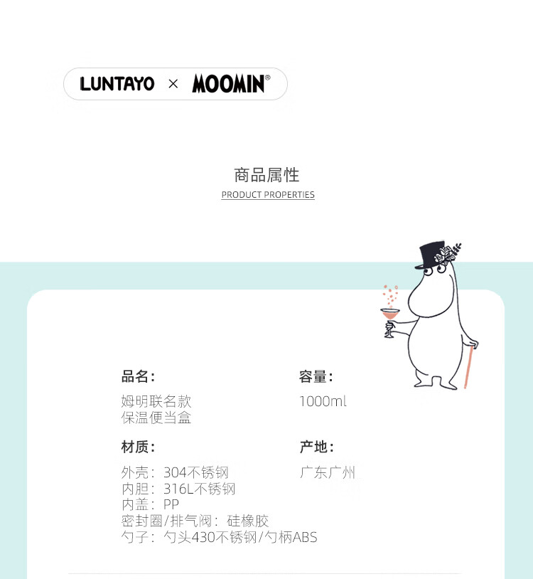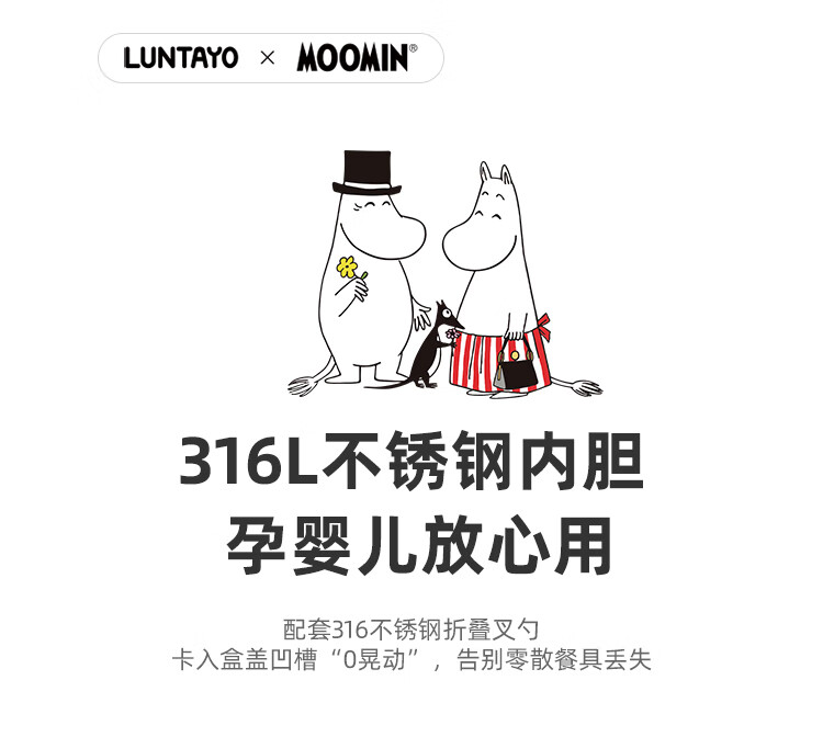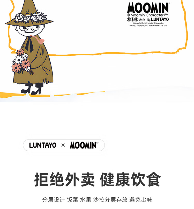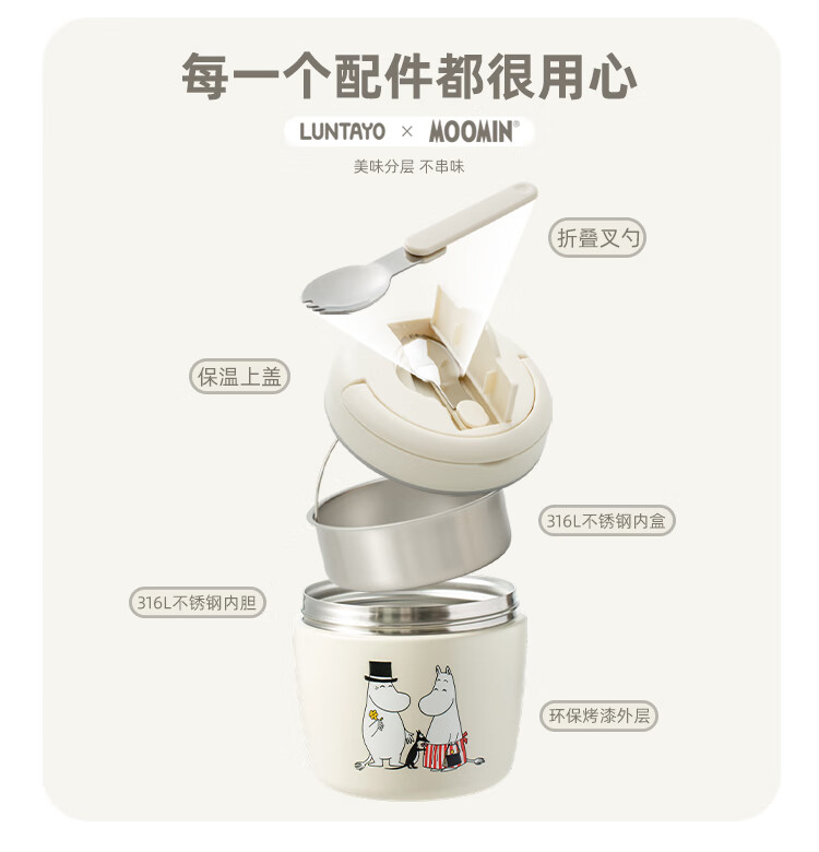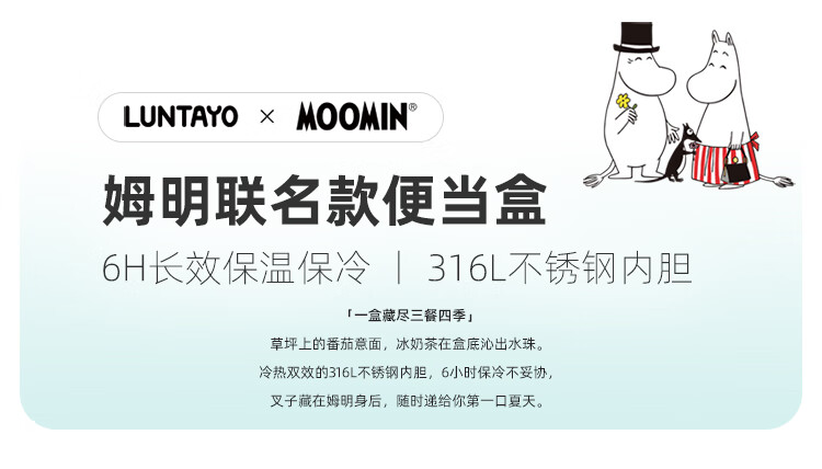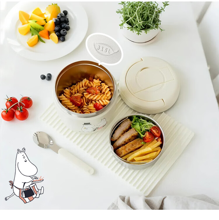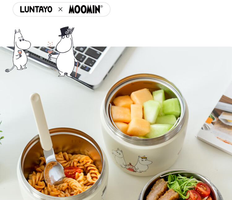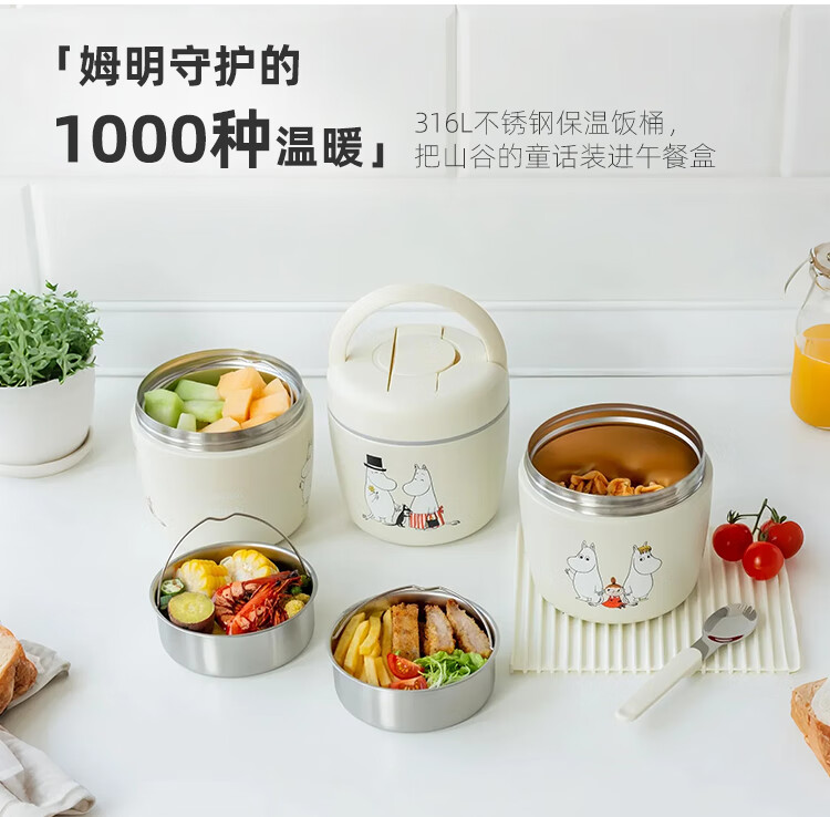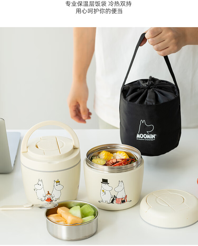 LUNTAYO Insulated Lunch Box Moomin Co-branded Limited Large Capacity Extra Long Insulated Bucket Office Worker Multi-Layer Lunch Box Moomin Co-branded/1000ml Comes with Insulated Bag
