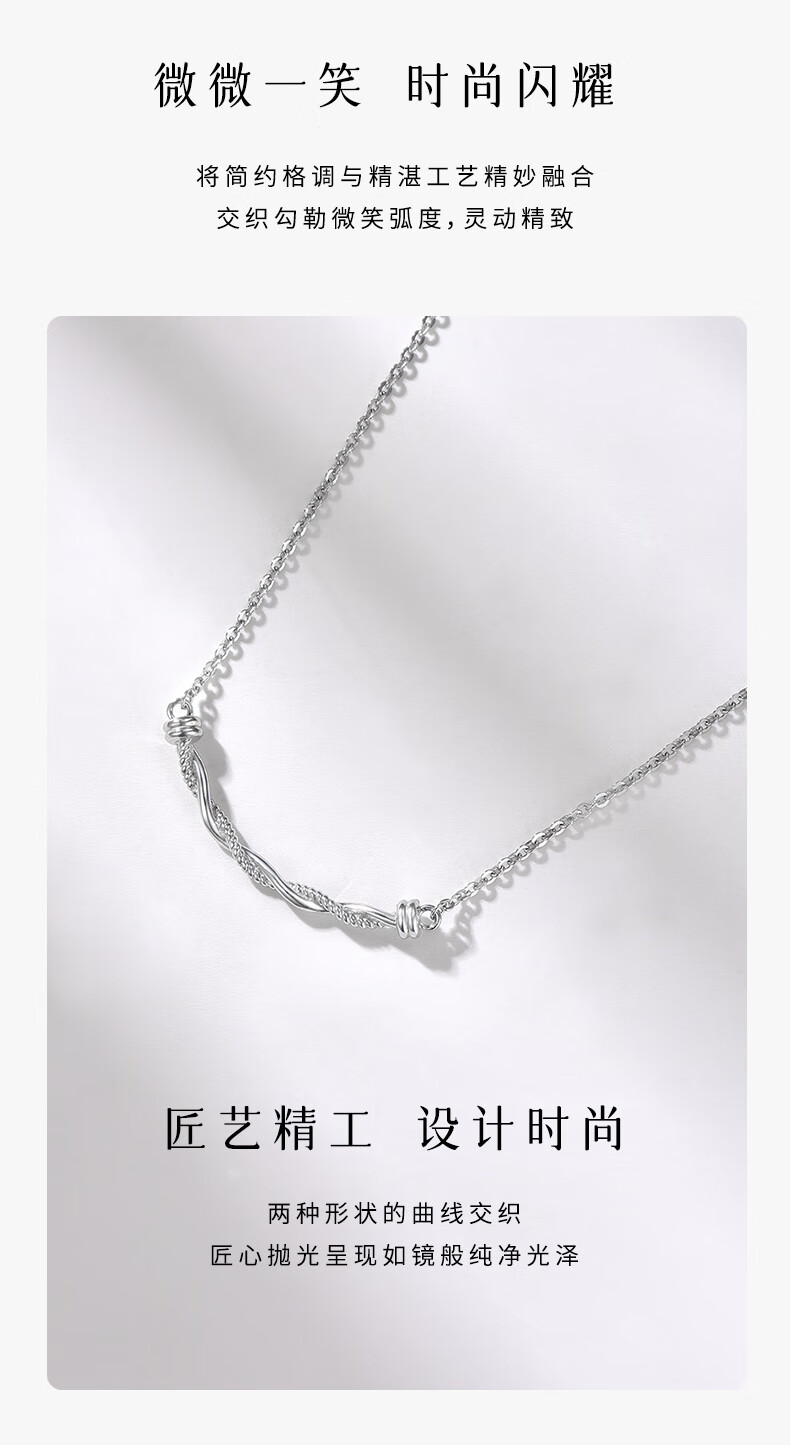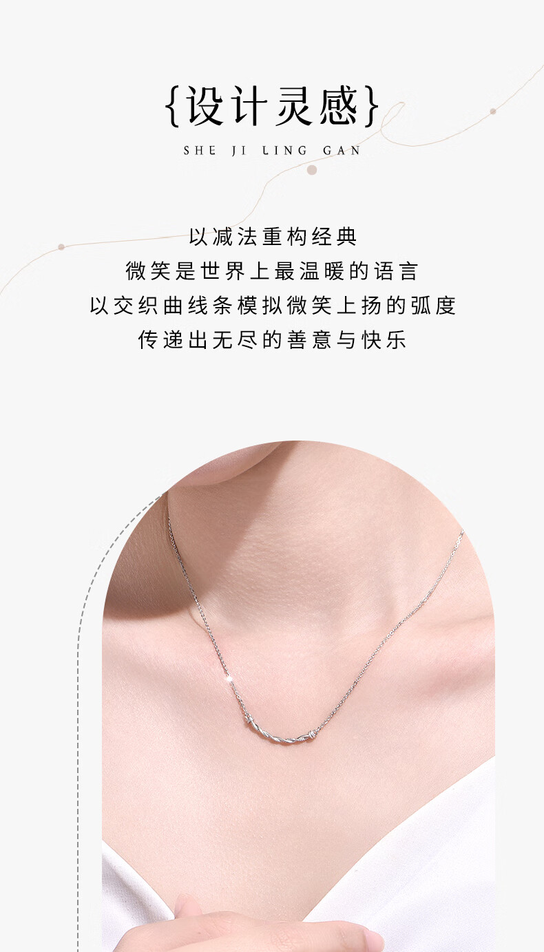 Cuihua pt950 smile curved platinum chain set, simple and versatile necklace, clavicle chain, birthday gift for girlfriend and wife, smile platinum chain set, about 4g