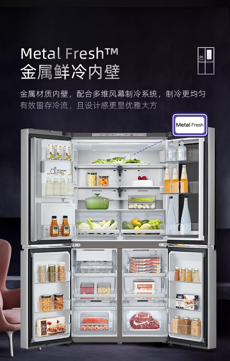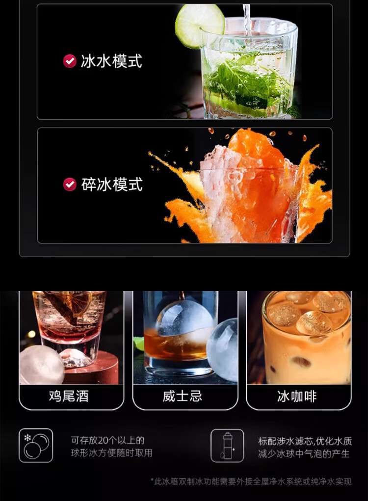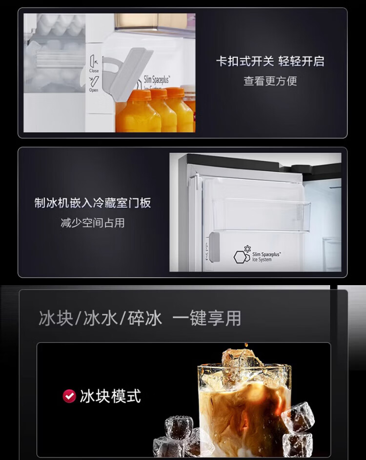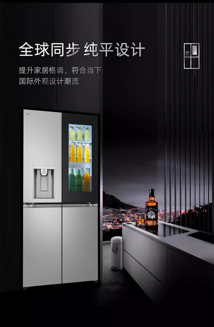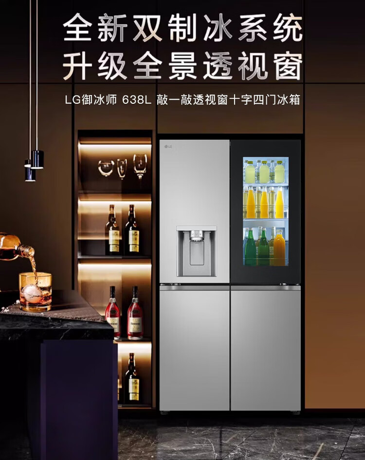 LG638L cross four-door ice machine refrigerator fully automatic ice machine spherical ice variable frequency air-cooled frost-free knock-knock see-through window household built-in ice bar F664MPY88D cross four-door 638L ice machine F664MPY88D
