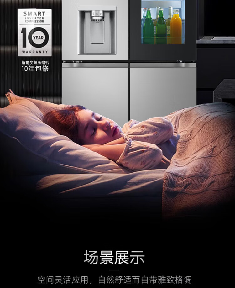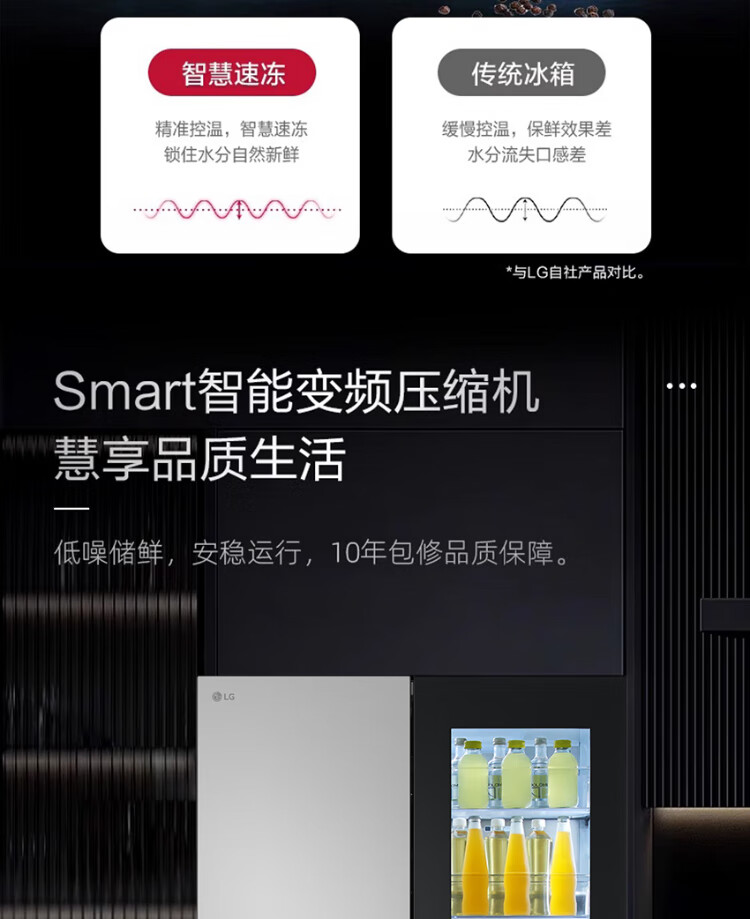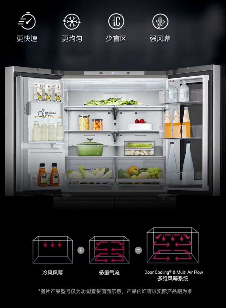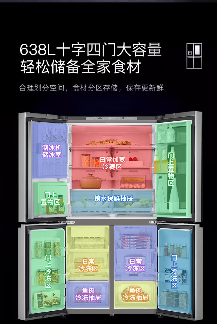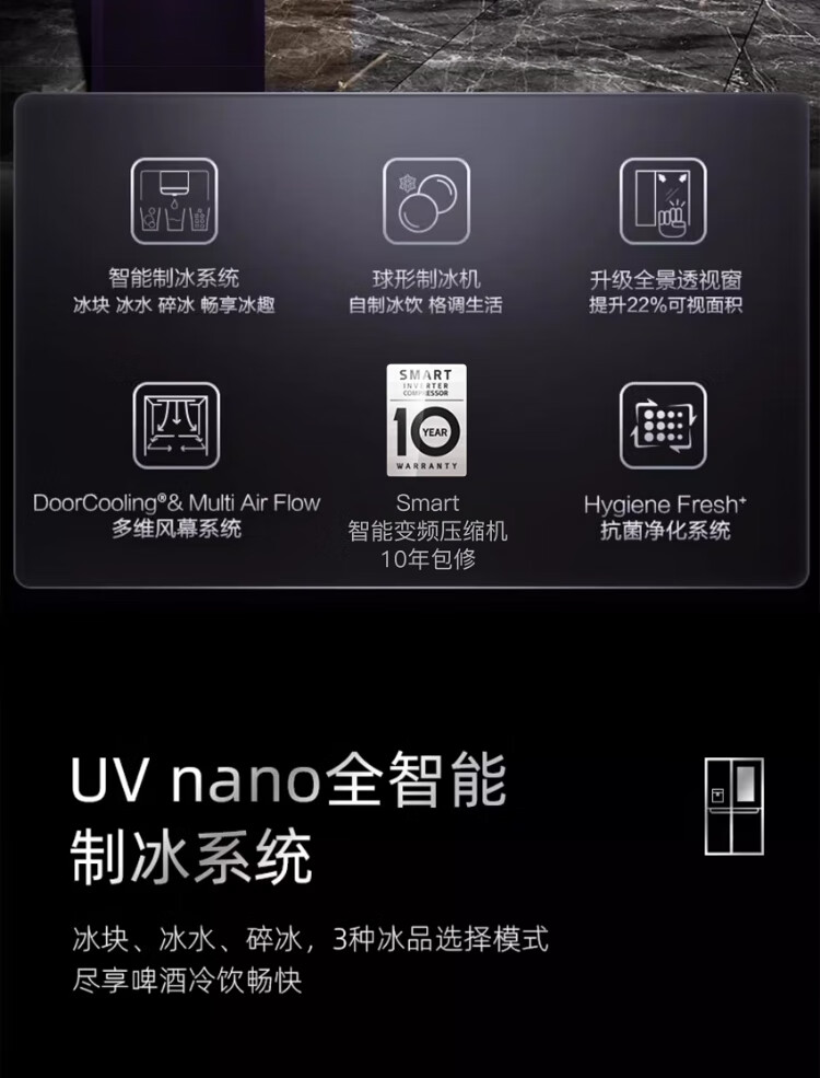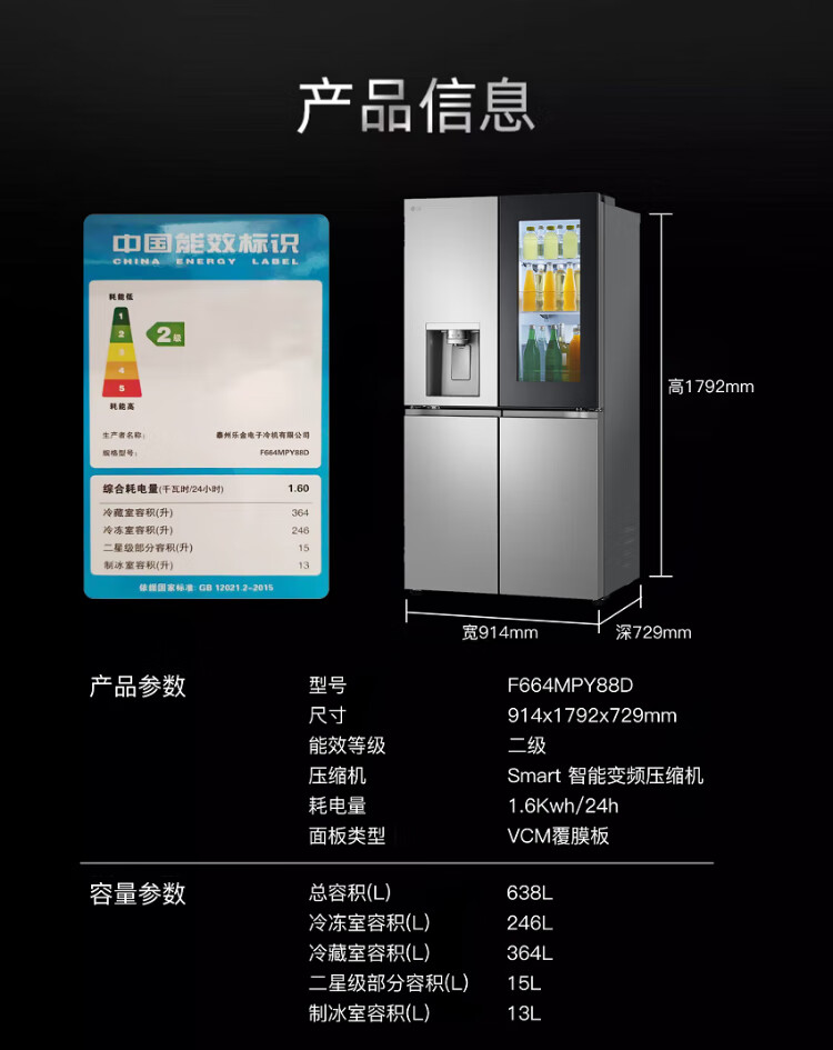 LG638L cross four-door ice machine refrigerator fully automatic ice machine spherical ice variable frequency air-cooled frost-free knock-knock see-through window household built-in ice bar F664MPY88D cross four-door 638L ice machine F664MPY88D