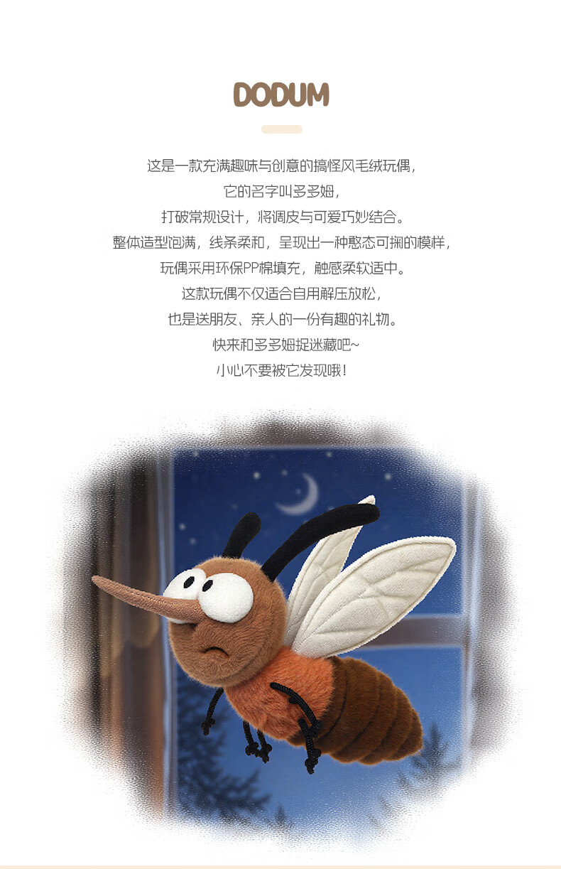 Funny Mosquito Dodom Plush Toy Cute Doll Doll Sleeping Pillow Accompanying Sleeping Rag Doll Girl Birthday Gift Mosquito Dodom Total Length Approximately 25cm