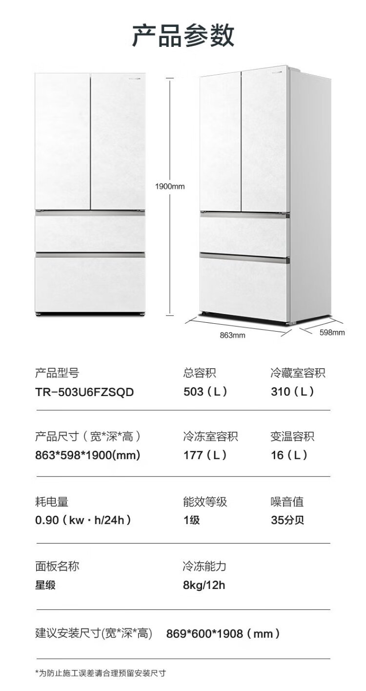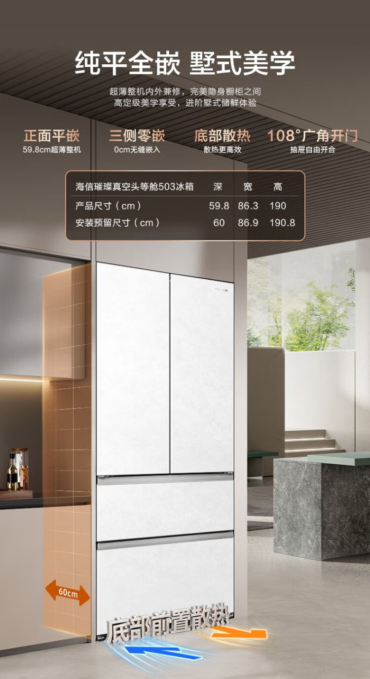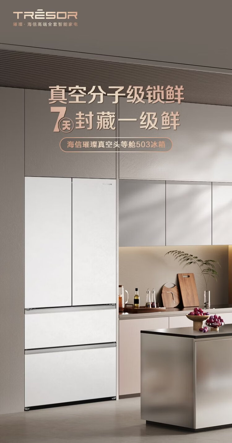 Hisense Brilliant World Cup Customized Refrigerator Vacuum First Class 503 Refrigerator Ultra-Thin Zero-embedded French Multi-Door Refrigerator Automatic Ice Making Level 1 Energy Efficiency TR-503U6FZSQD Vacuum First Class Brilliant 503U6 Machine King