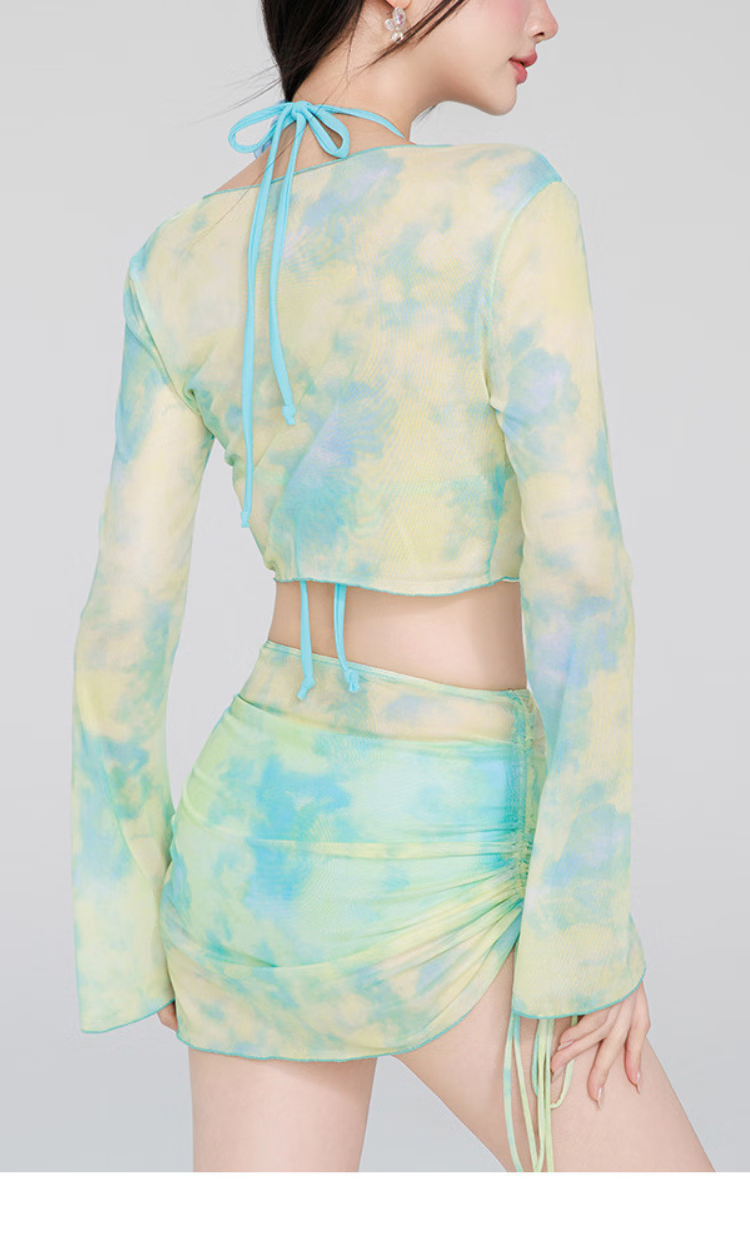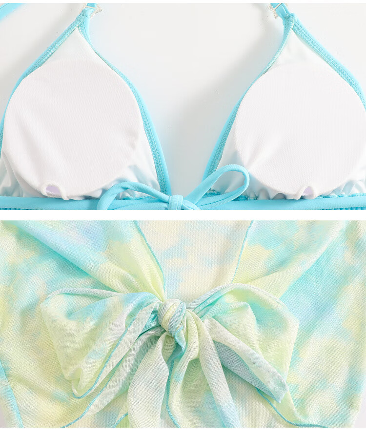 Bai Qixin bikini swimsuit for women in hot springs, high-end four-piece set, small fresh and sexy split beach vacation swimsuit, bikini four-piece set, tie-dye green 80-120Jin Jin equals 0.5 kg