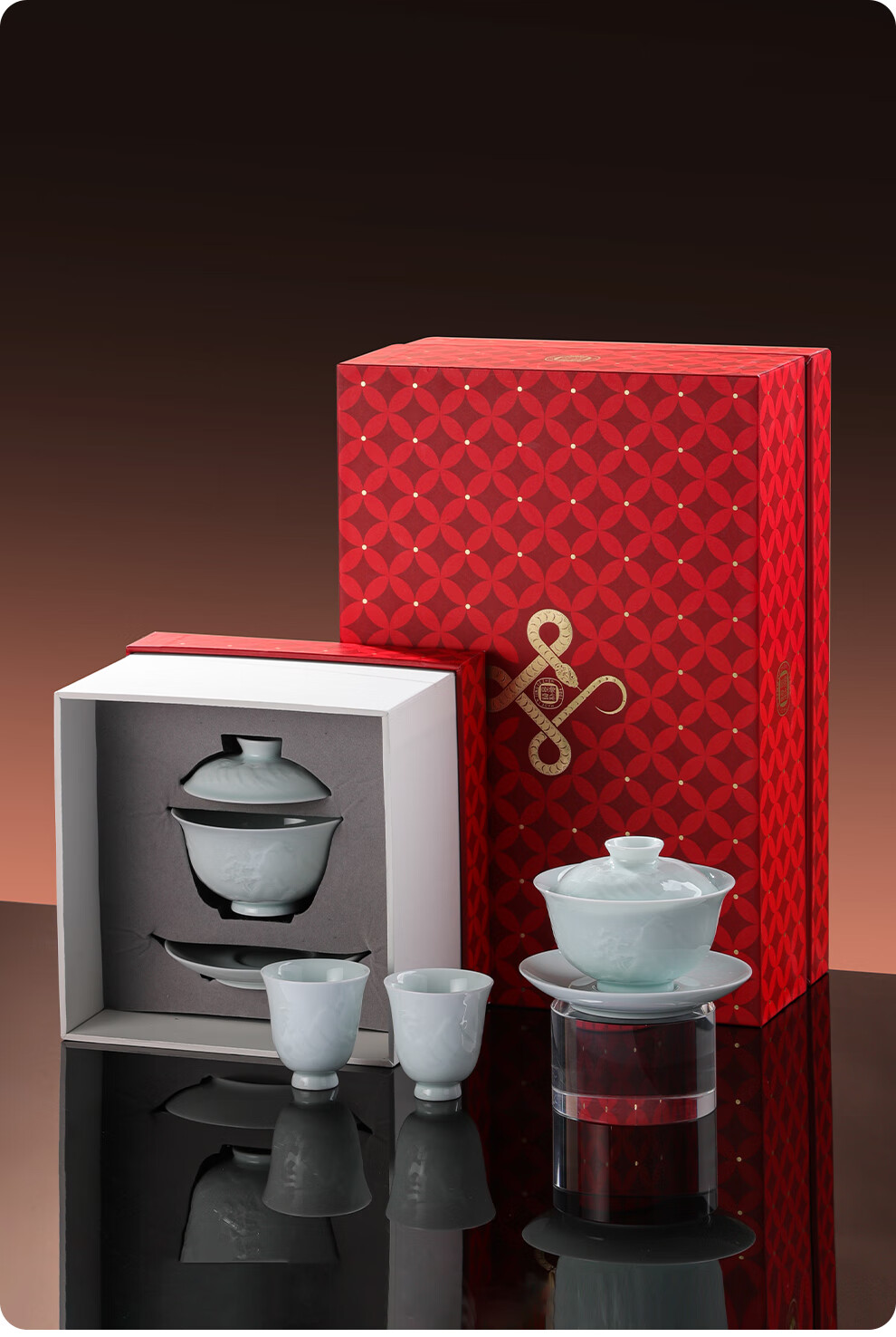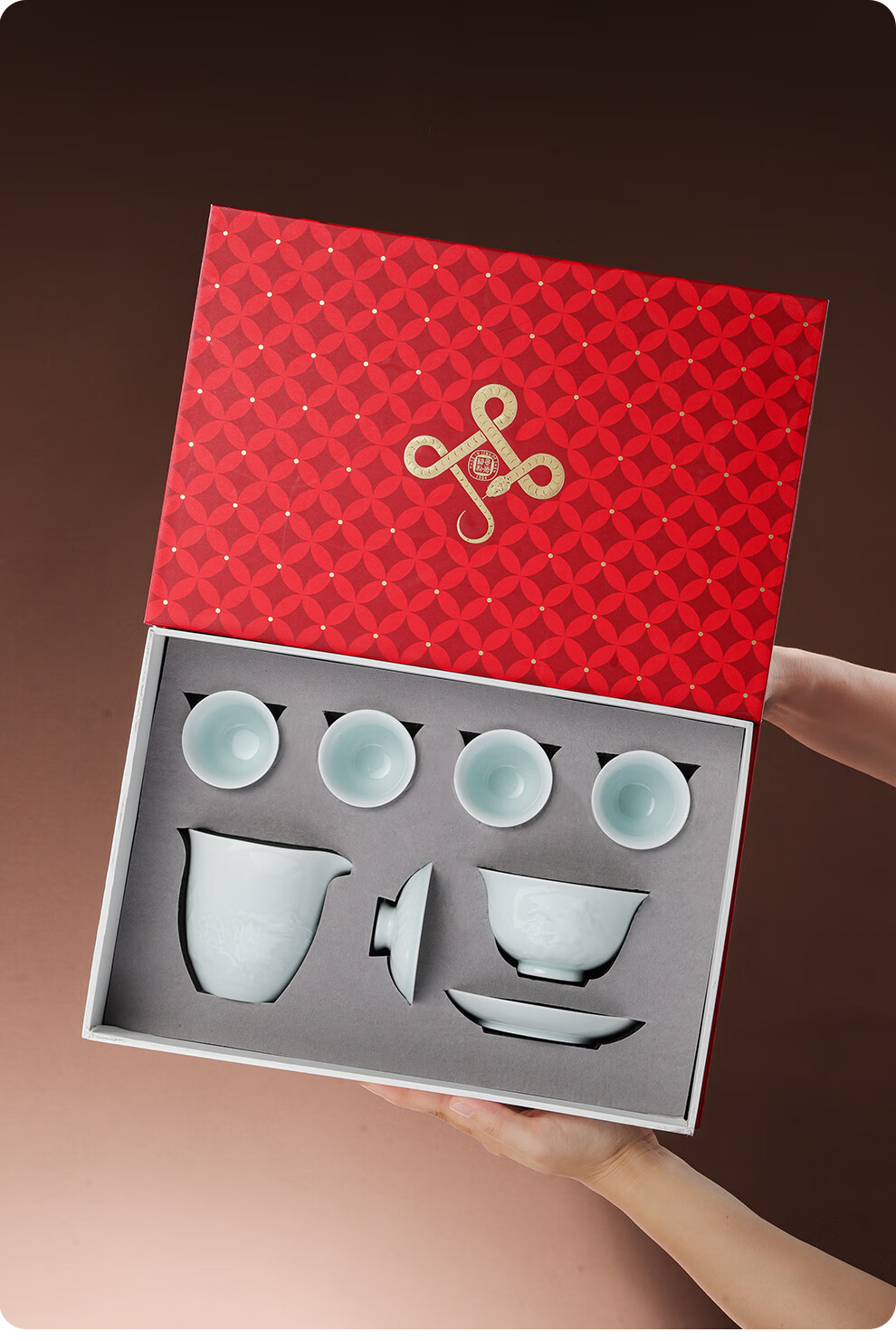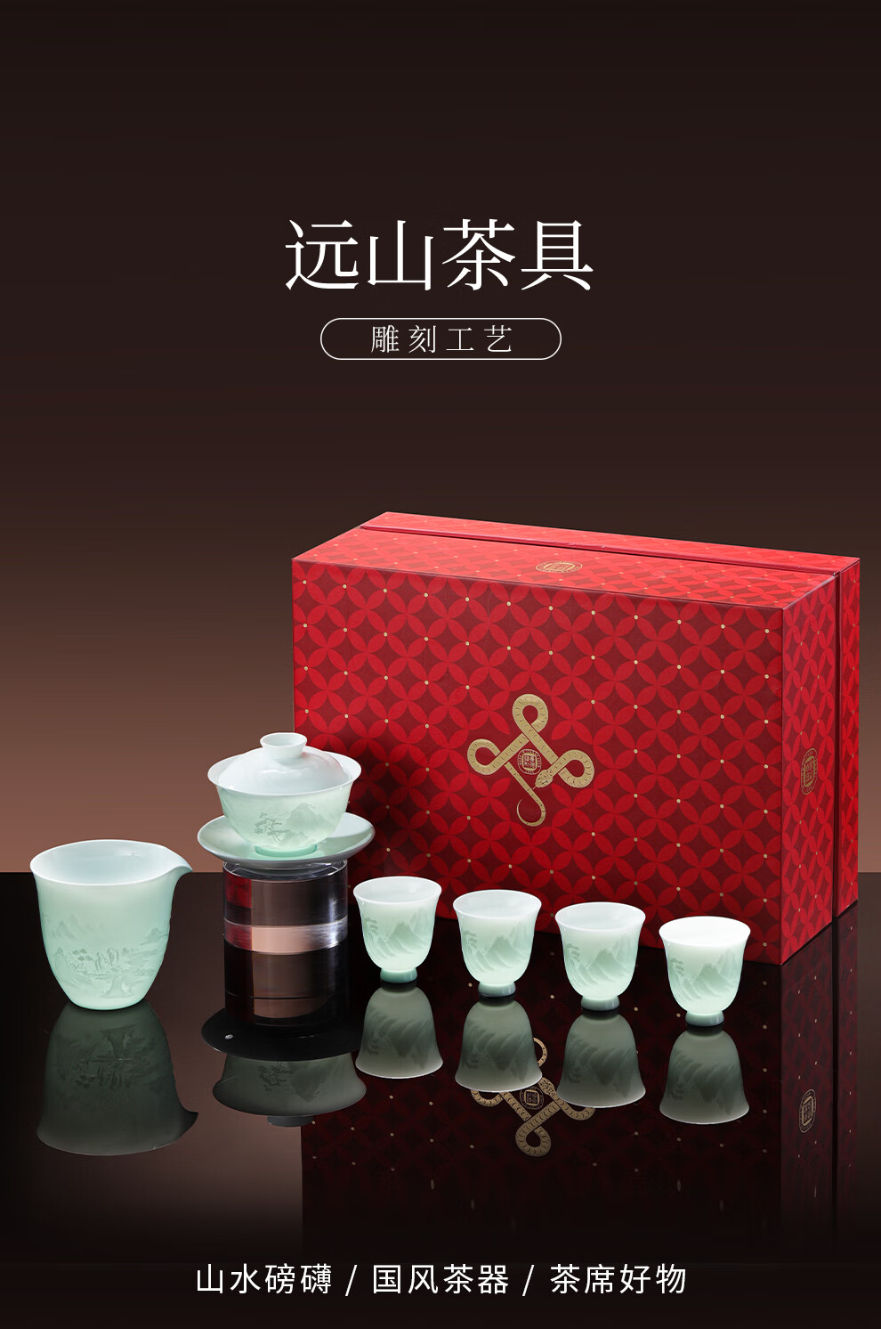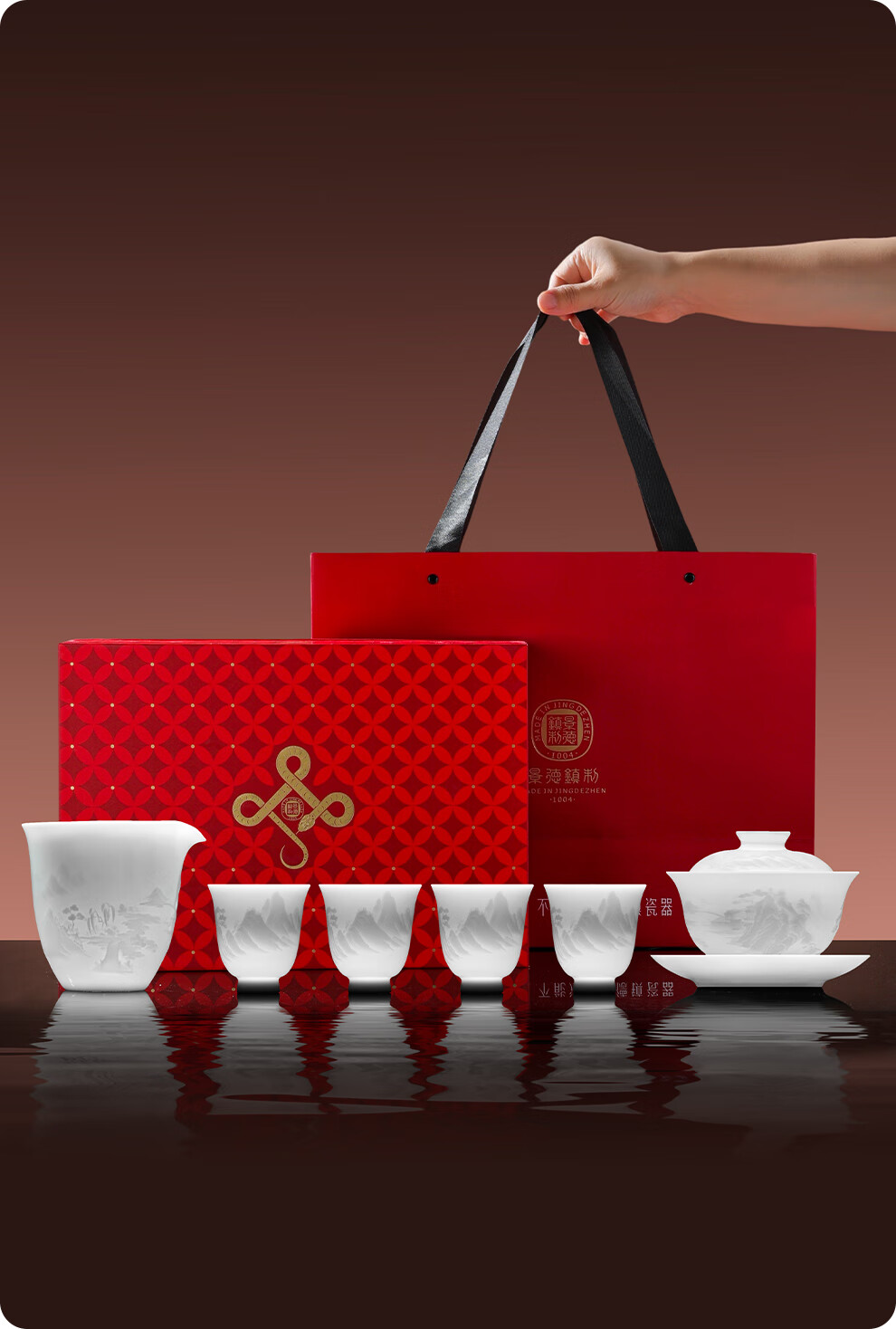Jingdezhen ceramic Yingqing tea set high-end gift Chinese Kung Fu white porcelain tea bowl complete set gift for elders high-end tea gift Yuanshan tea set-Yingqing 8 pieces