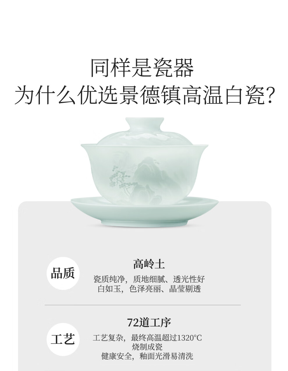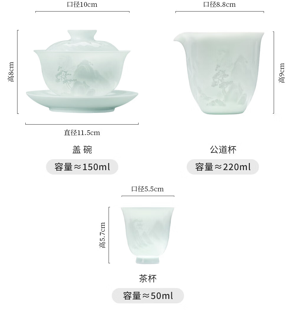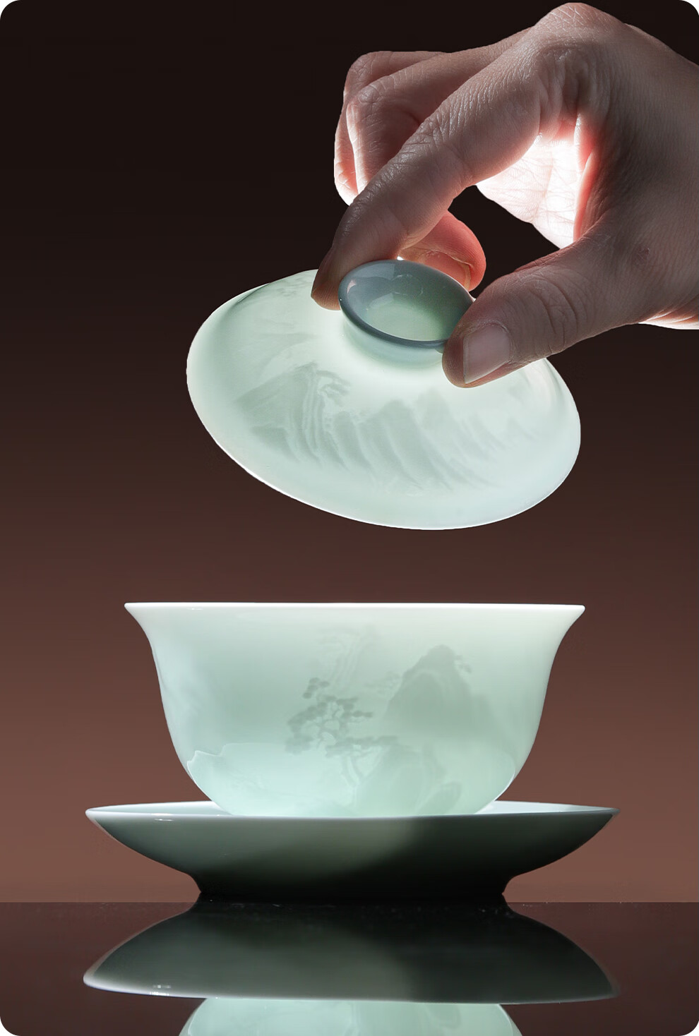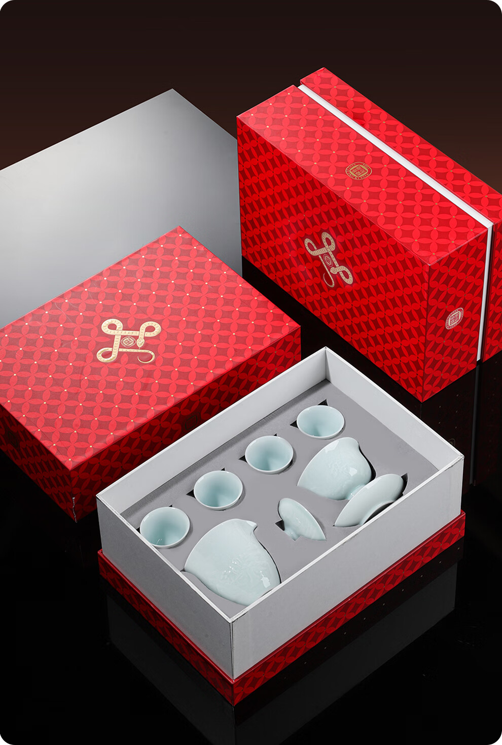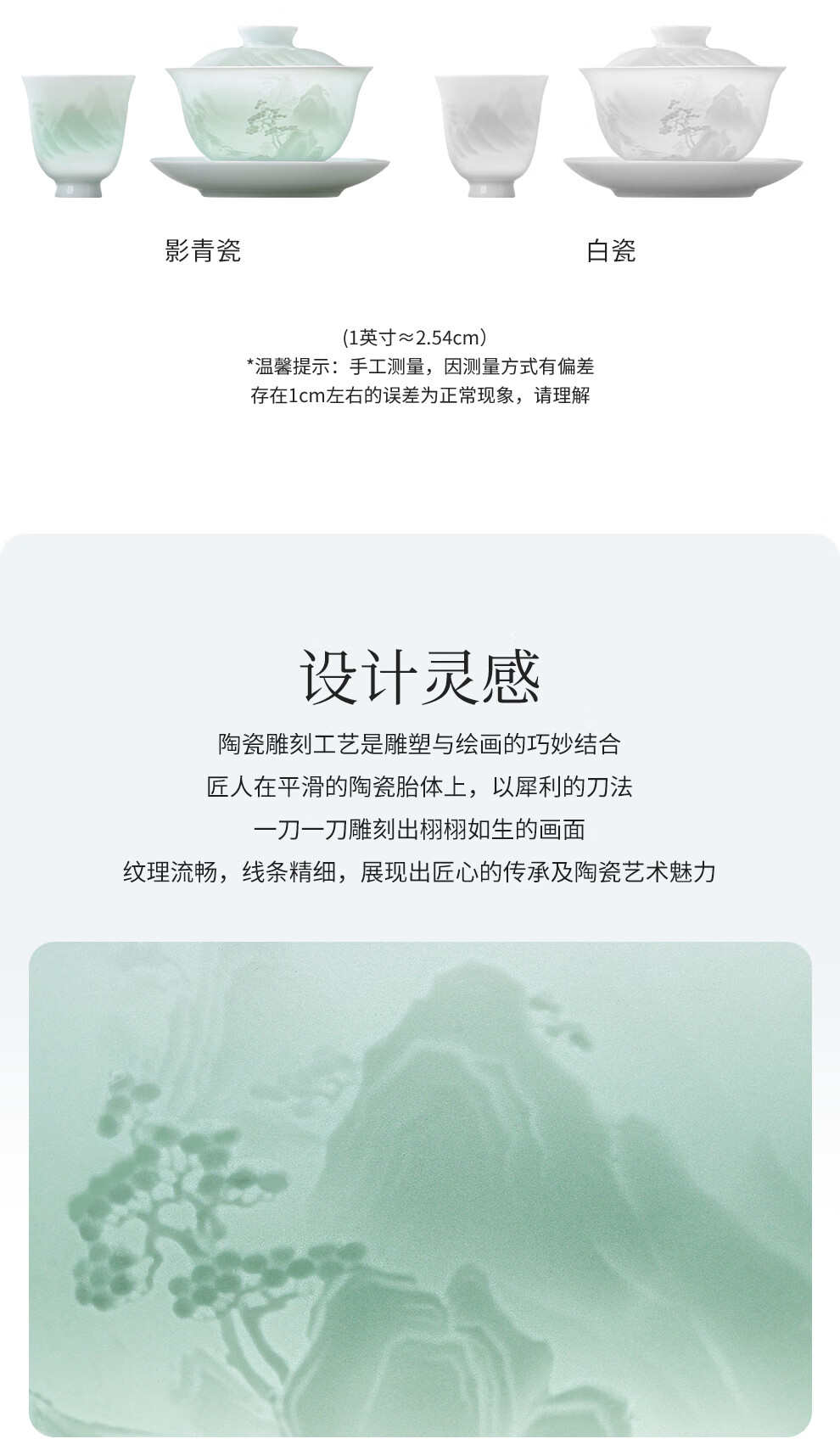Jingdezhen ceramic Yingqing tea set high-end gift Chinese Kung Fu white porcelain tea bowl complete set gift for elders high-end tea gift Yuanshan tea set-Yingqing 8 pieces