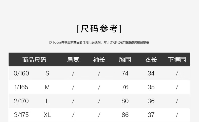 China (cm) 160-165/84-86 165-170 / 88-90 167-172 / 92-96 168-173 / 98-102 170-176 / 106-110