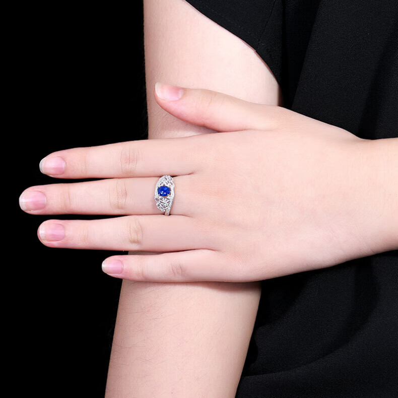 HEEKAIYI Royal Sapphire Ring Women's 18K Diamond Ring Luxurious Chinese Valentine's Day Birthday Gift for Wife and Girlfriend 0.9 carat The ring can be changed, please contact customer service