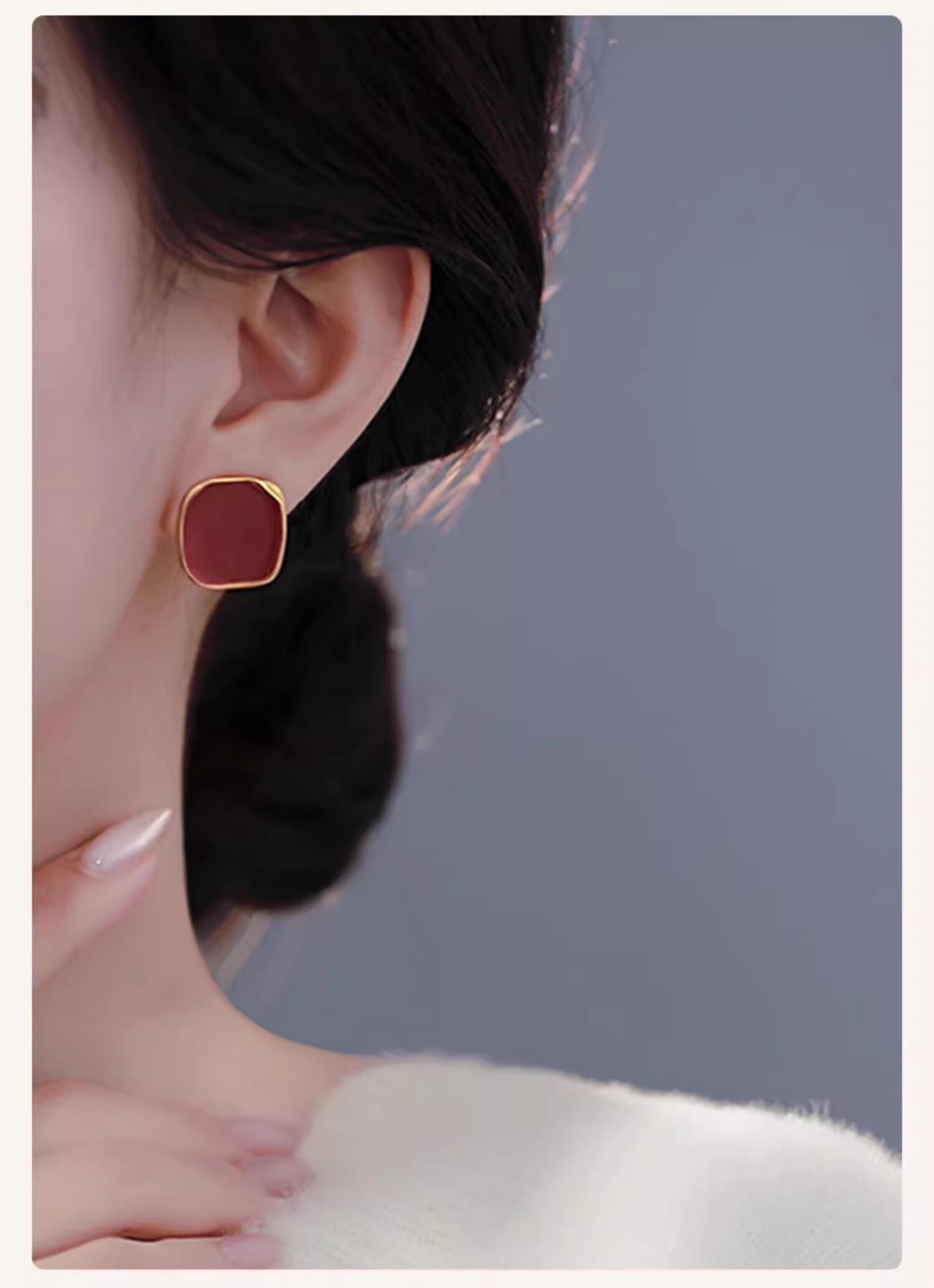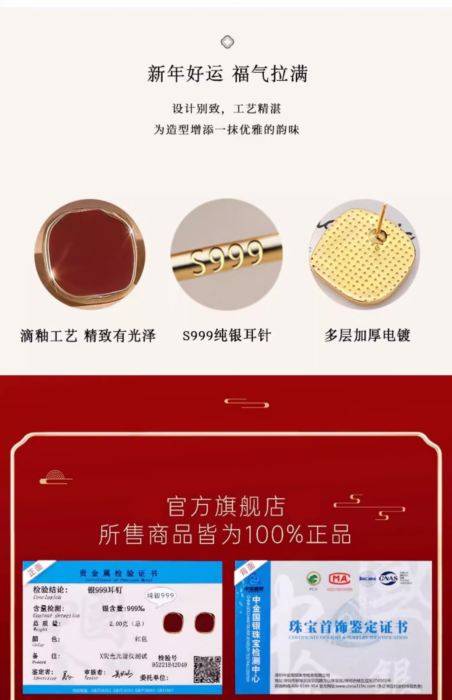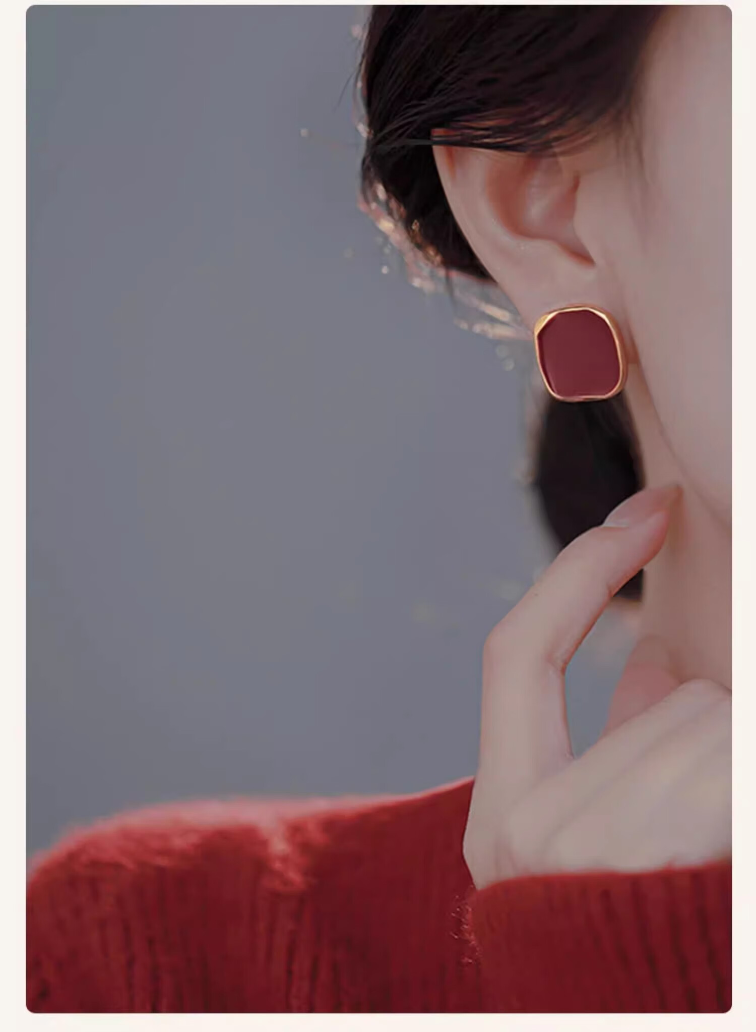 Ruihongxiang 999 sterling silver earrings, red square earrings, female ancora red earrings, light luxury, high-end, temperament, autumn and winter earrings, 999 sterling silver earrings - a pair of red square earrings.