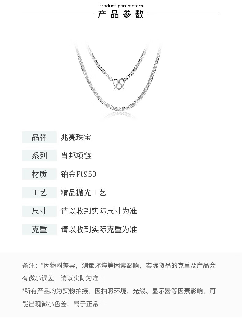 Zhaoliang platinum necklace women's model Pt950 women's platinum necklace Chopin chain simple and versatile platinum chain gift 5.31 grams long 18 inches