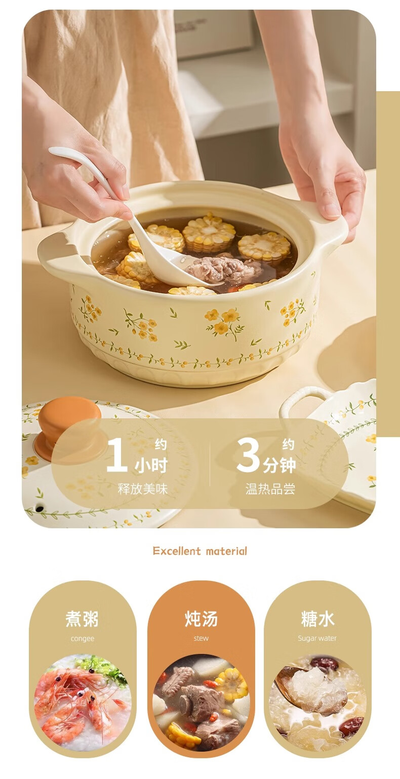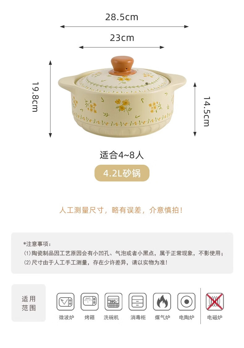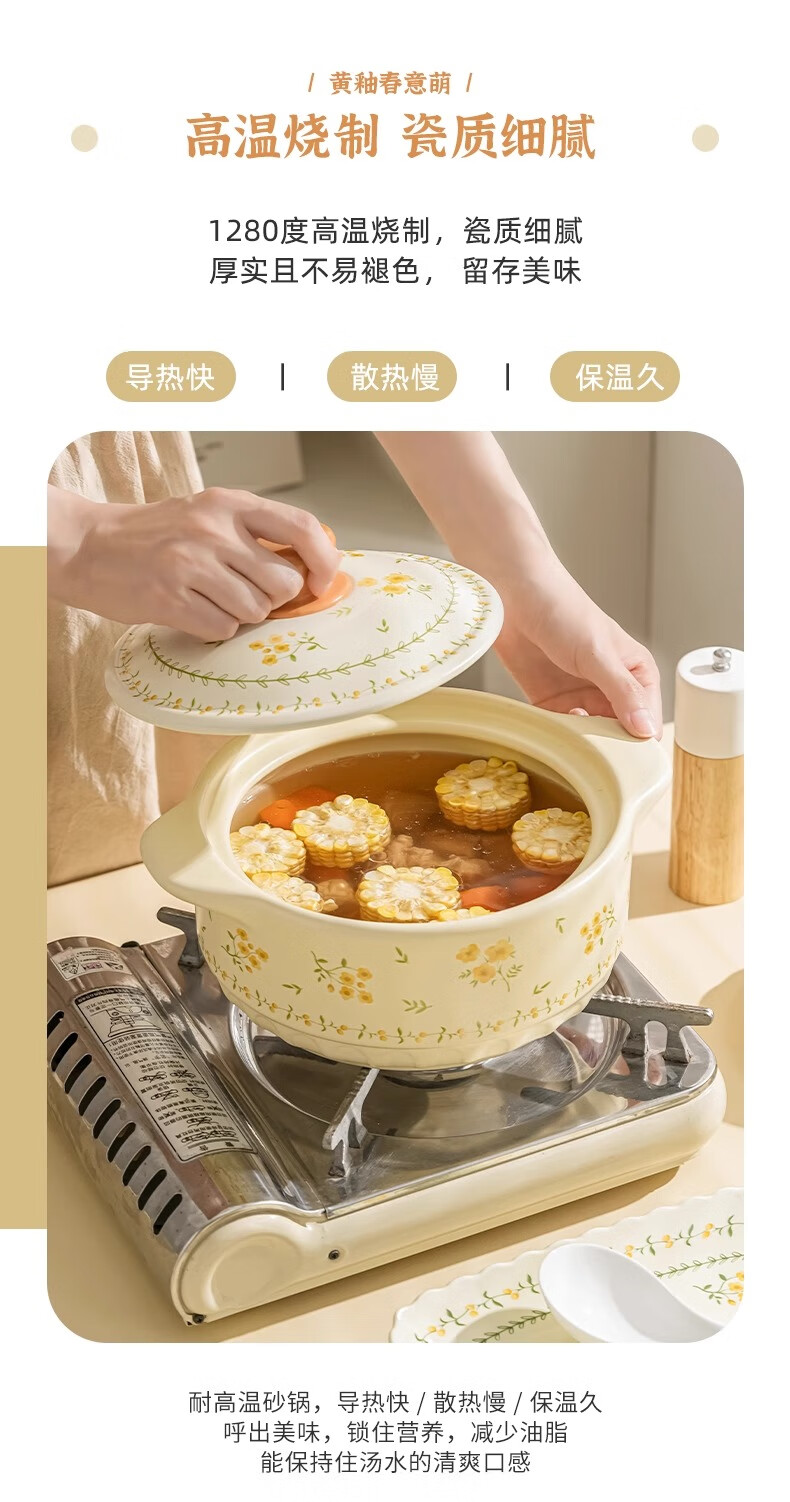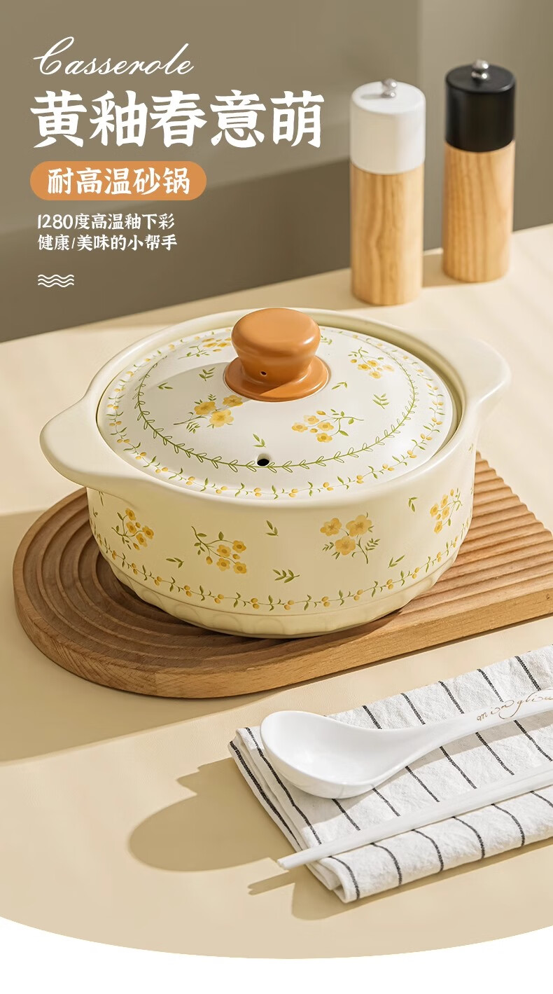 Persson Ceramic Casserole Home 2025 New Casserole, High Temperature Resistant, Dry Burning Resistant, Not Easy to Crack, Soup Pot, Special for Gas Stove, Mysterious Garden Casserole (Suitable for 3-4 People) 2.5L