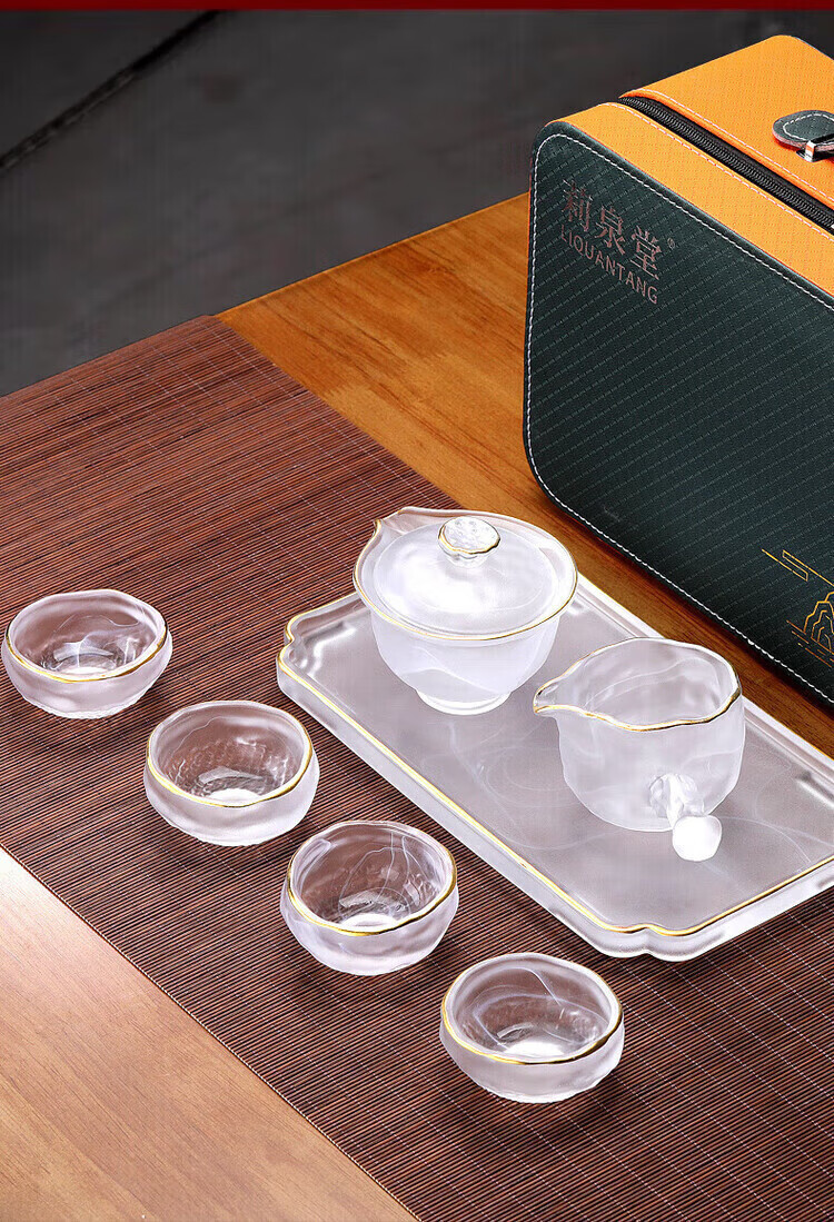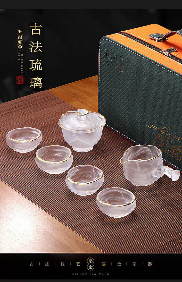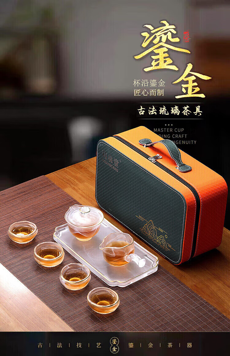 Xianjuren high-end gilt glazed cloud and mist travel kung fu tea set simple complete set of tureens and fair cups teacup gift box Phnom Penh Bingyun hand-grabbed tureen set dry brewing table 7 pieces