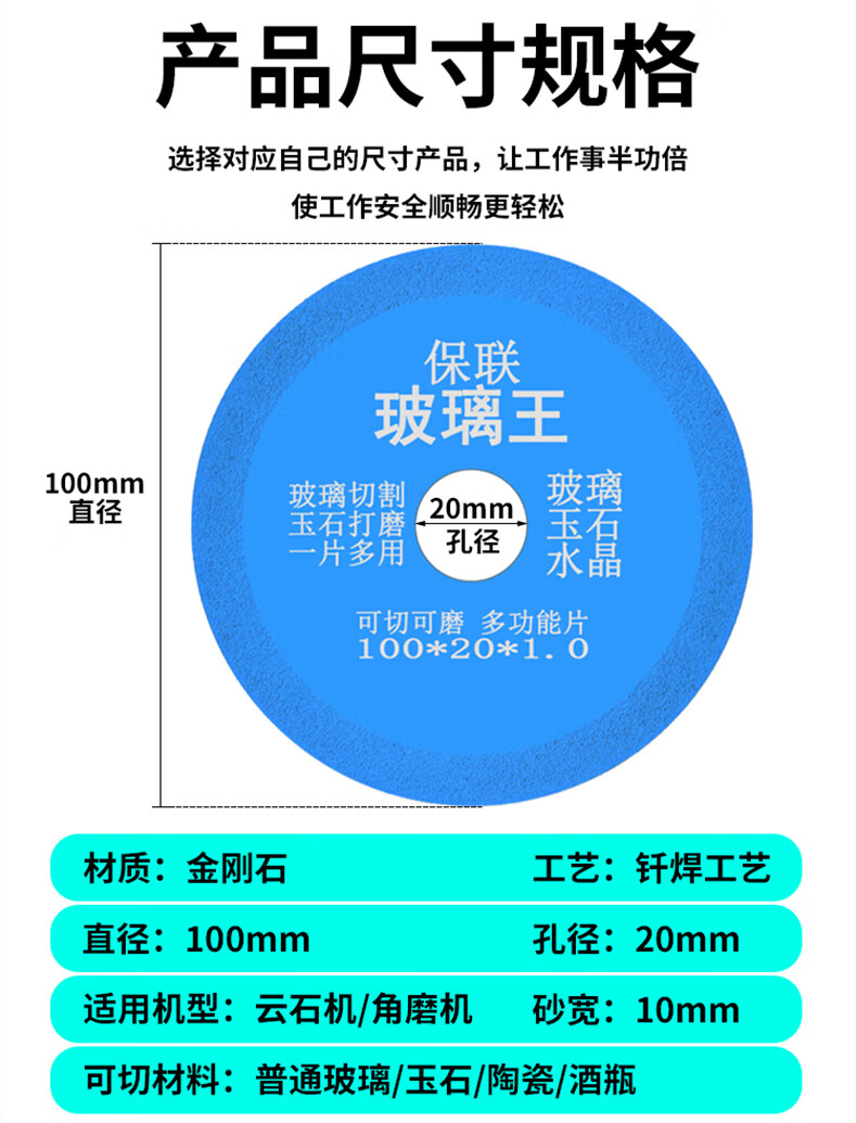 Baolian Glass King special cutting blade angle grinder tile ceramic stone block wine bottle rock plate grinding saw blade grinding blade affordable model factory price 100*10 sand width-12