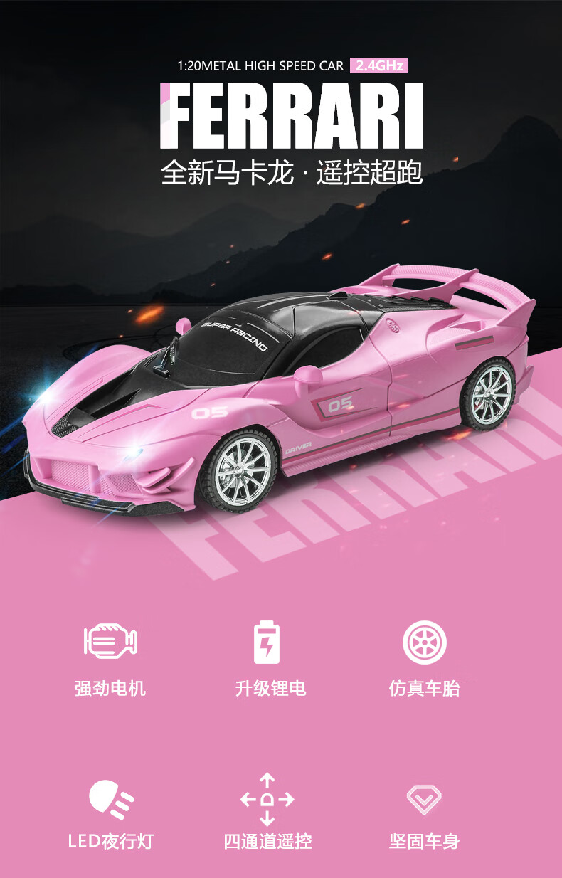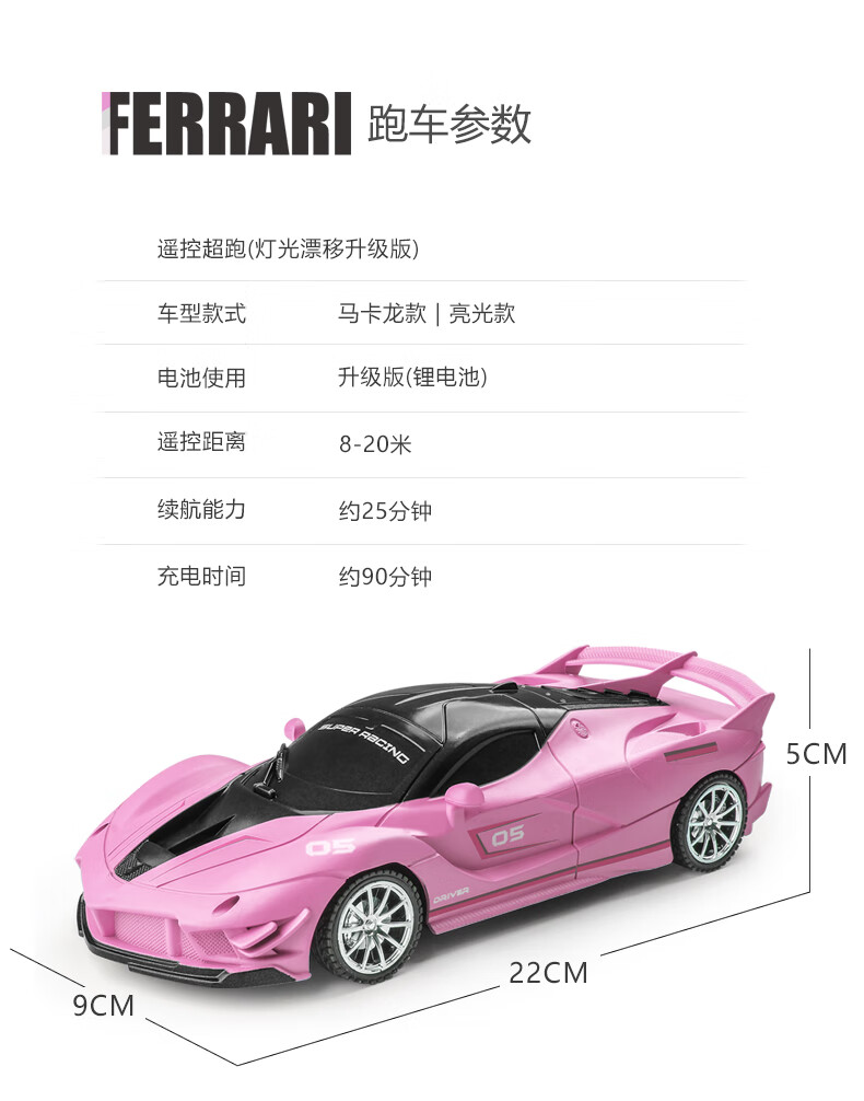 Shanbei remote control car car toy race car mini electric sports car 3 years old 4 years old children's toy car 6 boys and girls 7 blue pink Ferrari racing car free remote control battery single battery version 1 set of lithium battery + charging cable