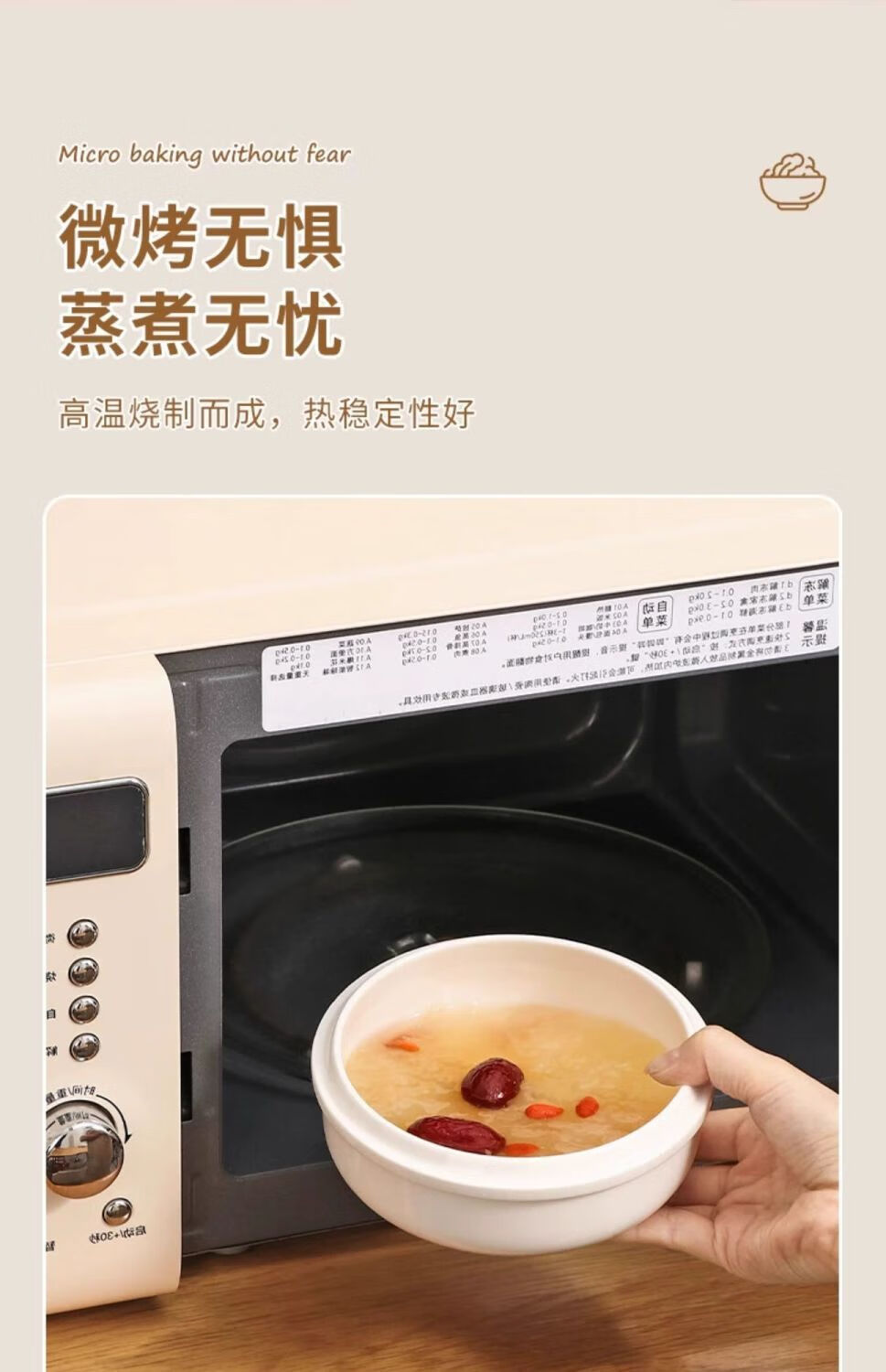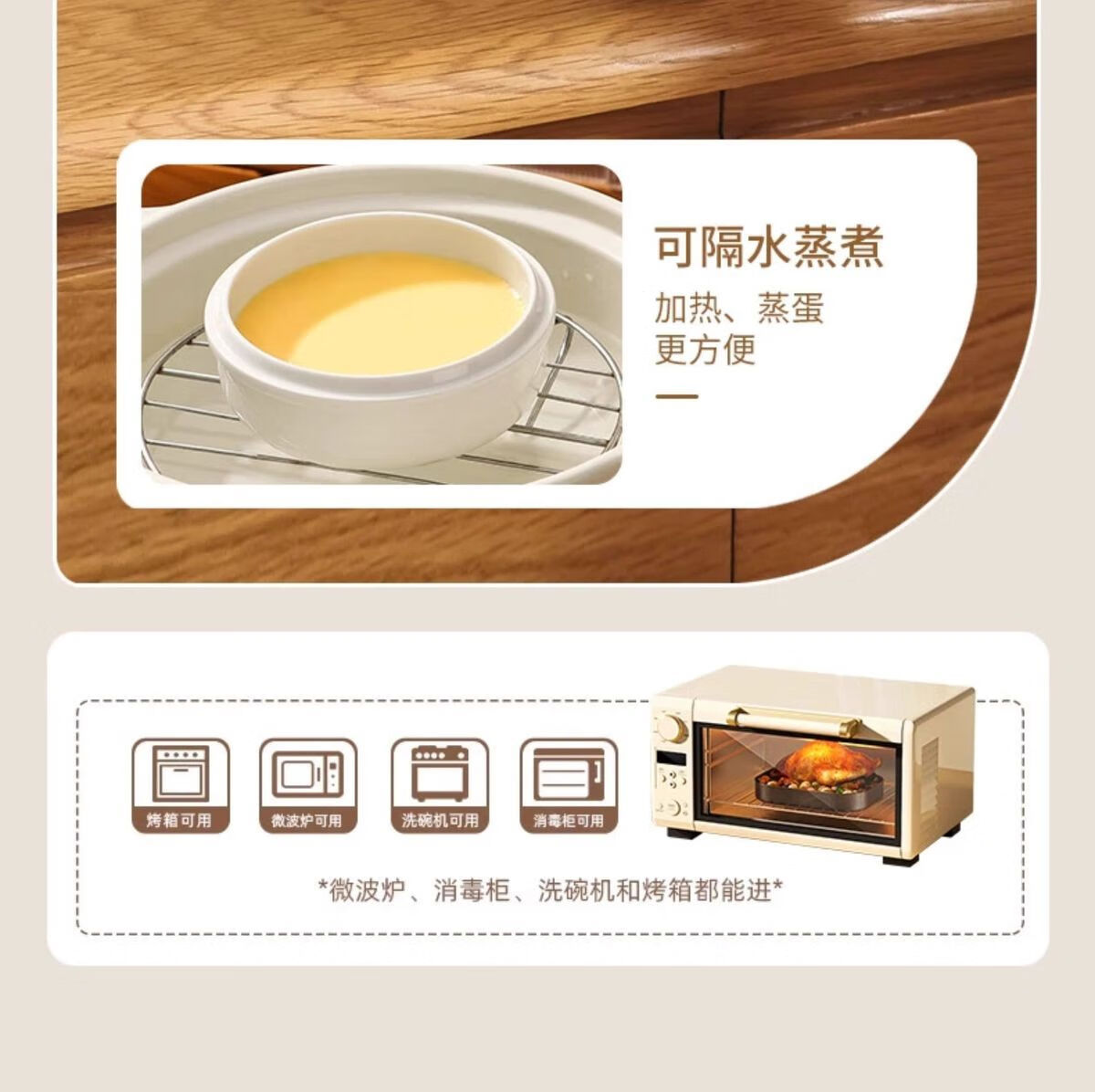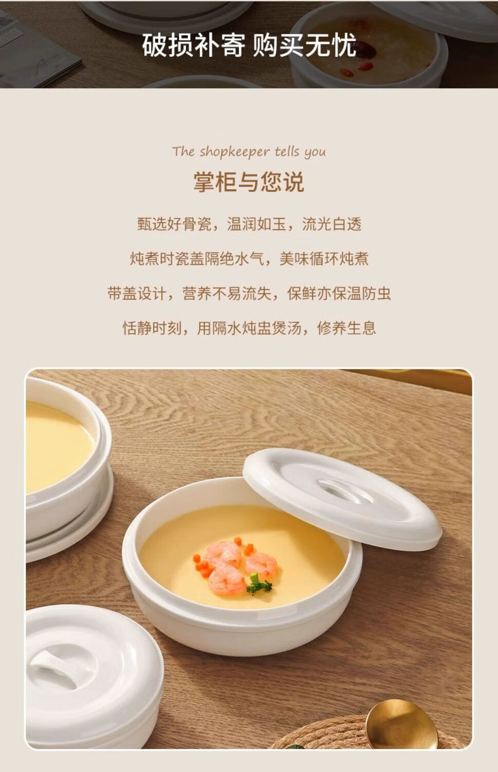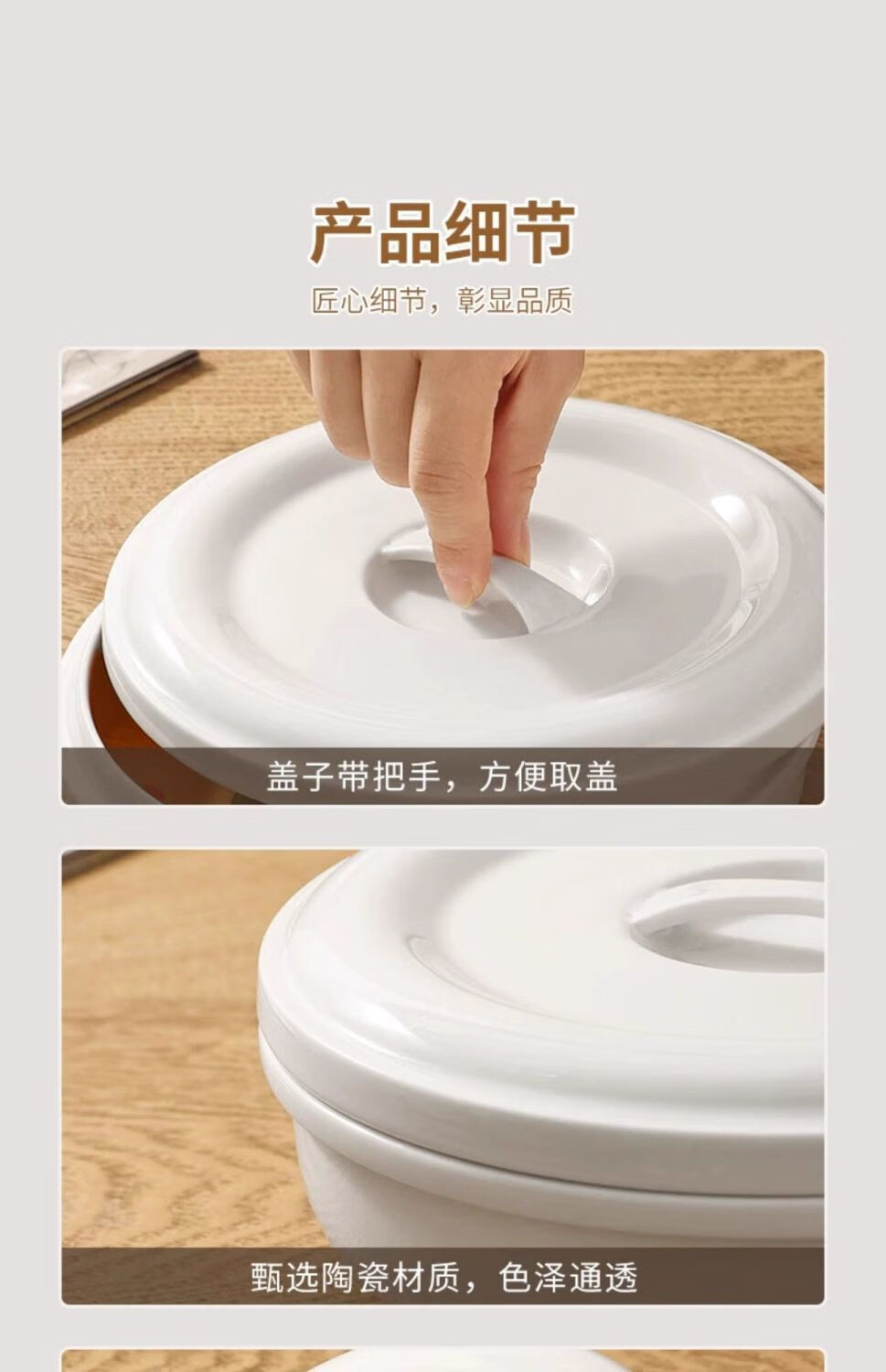 Baijie ceramic steamed egg bowl, household steaming bowl with lid for stewed eggs and egg custard, 2025 new water-proof stewed steaming dish, stew pot, 5-inch steamed egg/steaming dish (500ML with lid)