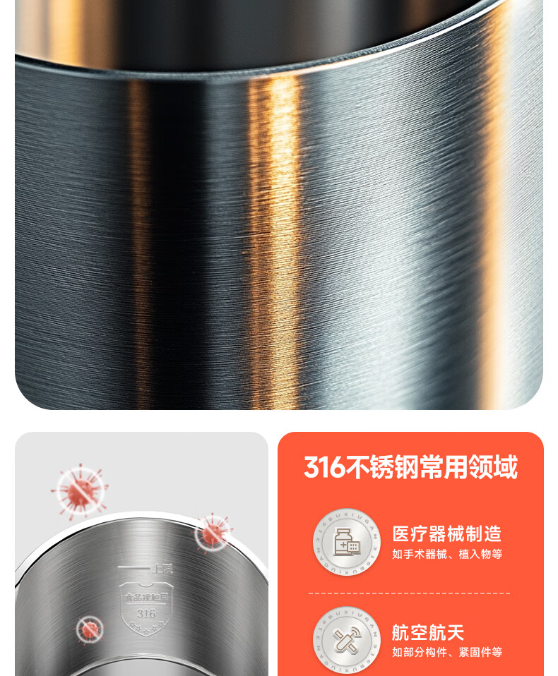 Japan imported health pot household multi-functional tea kettle kettle mini small stew cup portable hot water kettle 316 stainless steel 0.6L