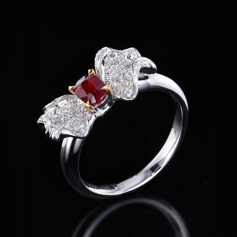 HEEKAIYI Pigeon Blood Ruby Ring Women's 18K Diamond Ring Luxury Chinese Valentine's Day Birthday Gift for Wife and Girlfriend 0.73ct The ring can be changed, contact customer service