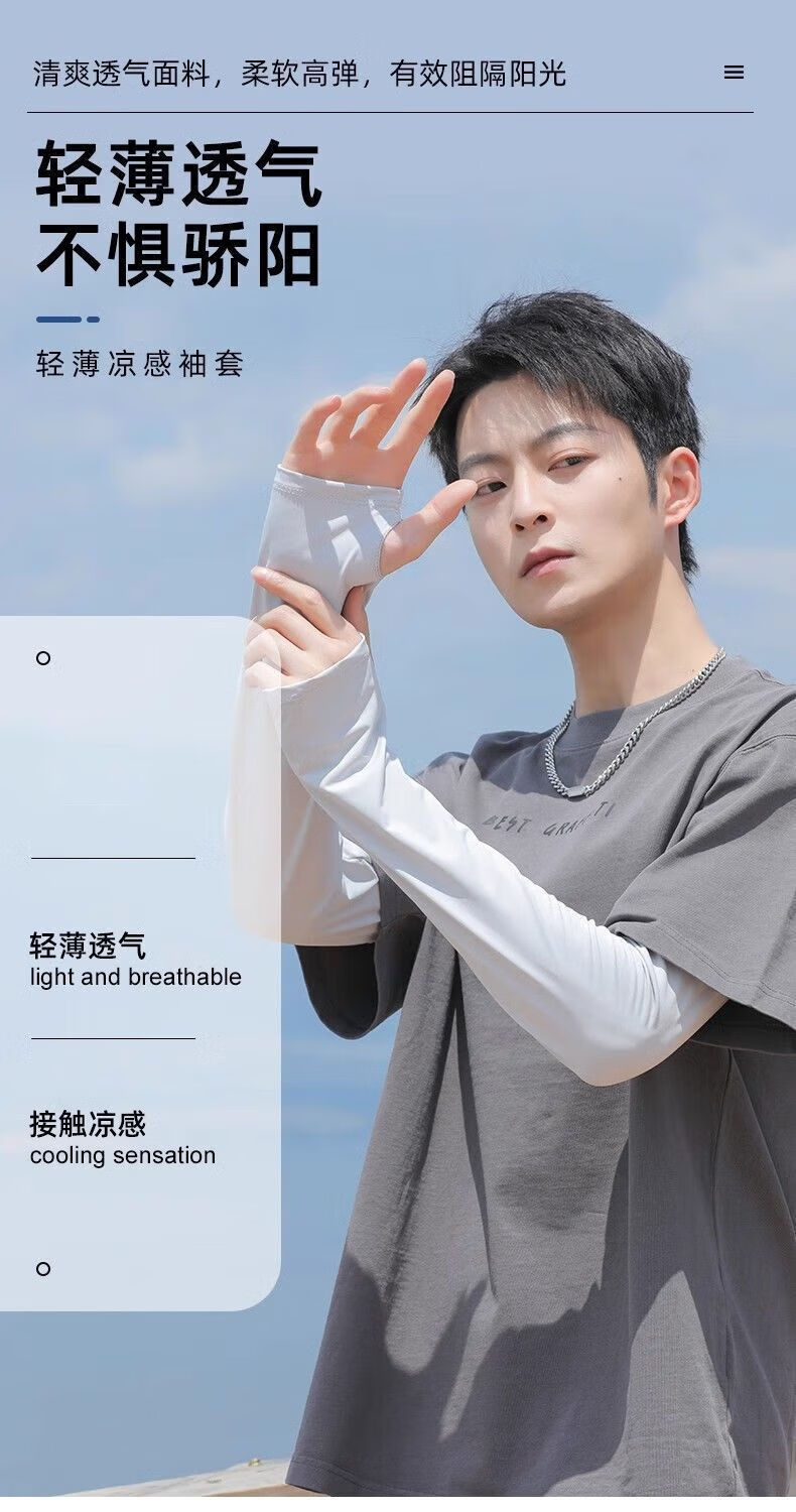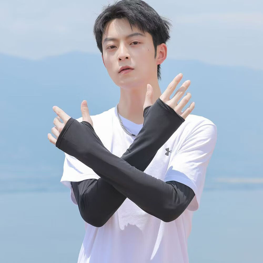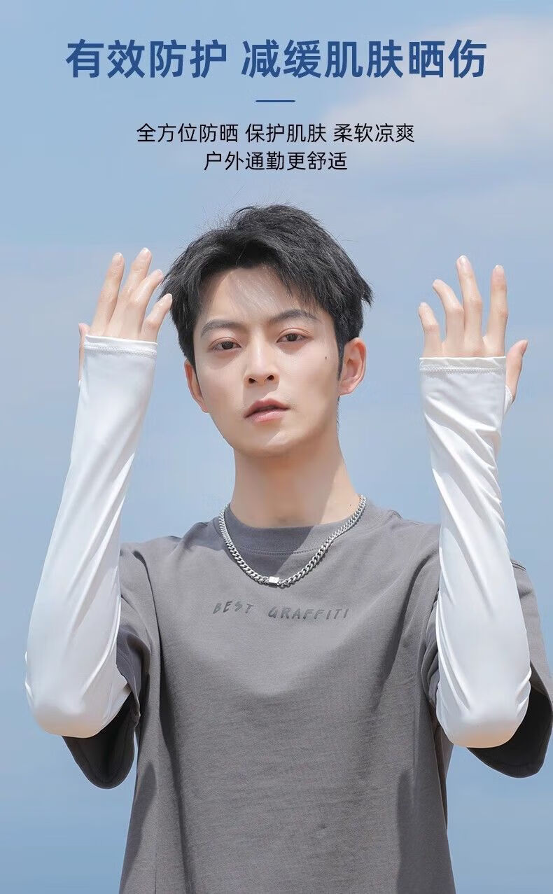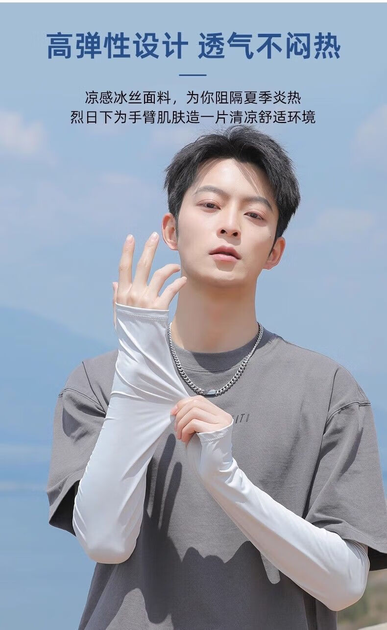 Men's Ice Sleeves Summer Sunscreen Sleeves Men's Fishing Ice Sleeves Ice Silk Loose Large Size Arm Gloves Arm Outdoor Cloud White