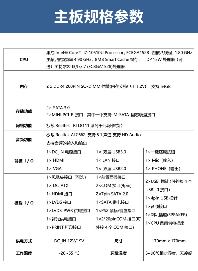 Yue Changsheng times control ITX standard 17cm industrial control motherboard 10th generation i3i5i7 all-in-one mini multi-COM port integration ITX motherboard I5-10210U single Gigabit six serial ports