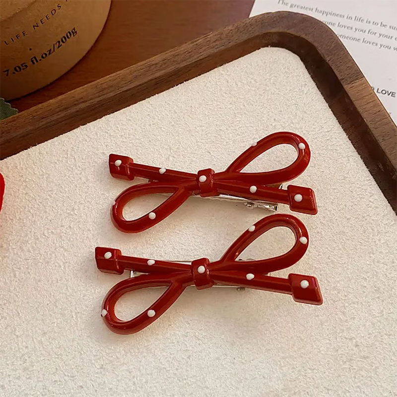 Anchor red polka dot bow hair clip, cute white bangs clip, sweet grabber clip, side clip hair accessories for women, red polka dot hollow butterfly 2 pieces