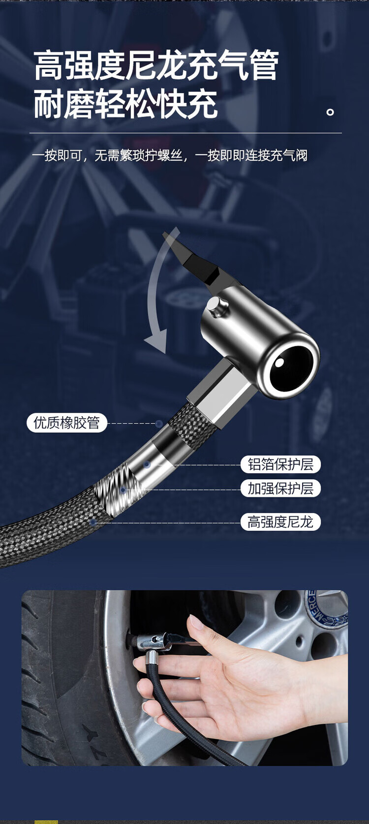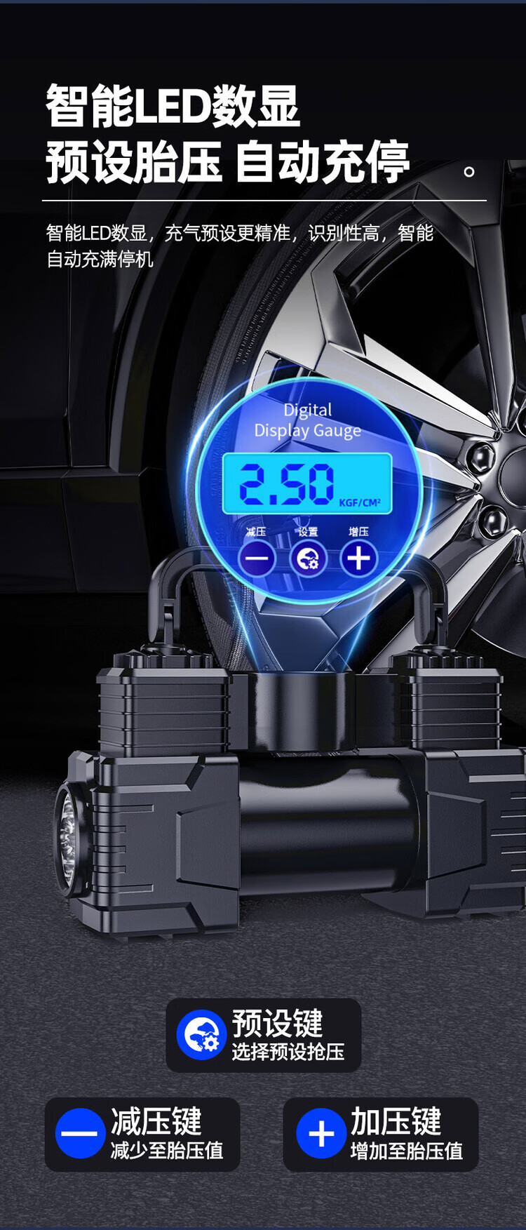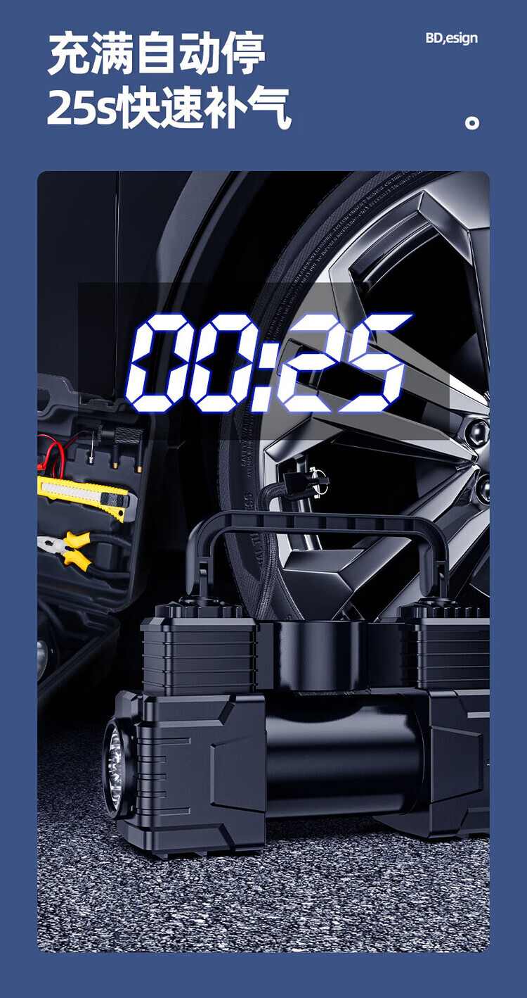 Vehicle-mounted air pump, portable car inflator, electric tire inflator for cars, high-power double-cylinder high-pressure double-cylinder 99800 high-pressure pointer type + tube + clamp + mouth